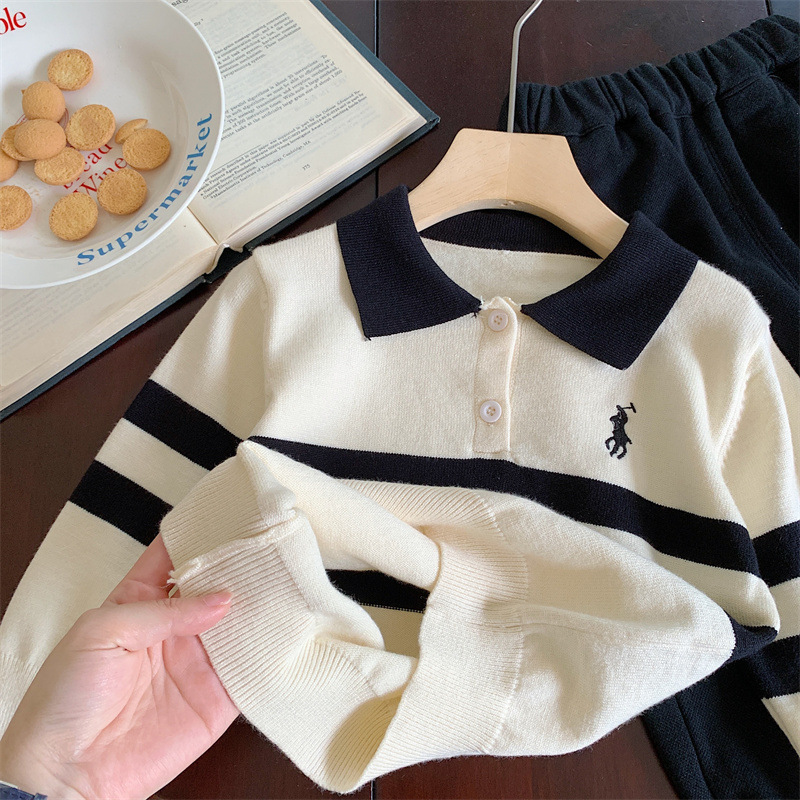 아동복 남아용 카라 스웨터 2025 신상 한국판 아동용 만화 자수 스웨터 줄무늬 긴팔