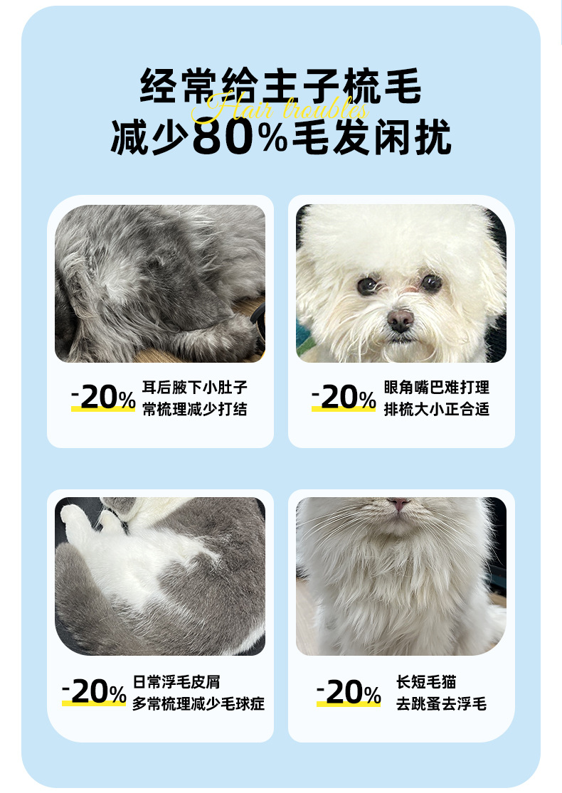 Wakytu 영국 애완 동물 고양이 긴 머리 핀 빗 개 오픈 매듭 청소 부동 머리 제거 빗 특수 치아스토어 가기