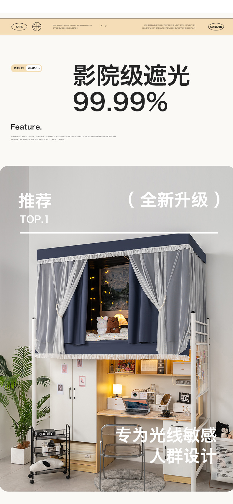 학생 기숙사 침대 커튼 상하 공 강한 음영 두꺼운 단색 기숙사 모기장 테이블 커튼 그늘 먼지 방지 천 최고 신제품스토어 가기
