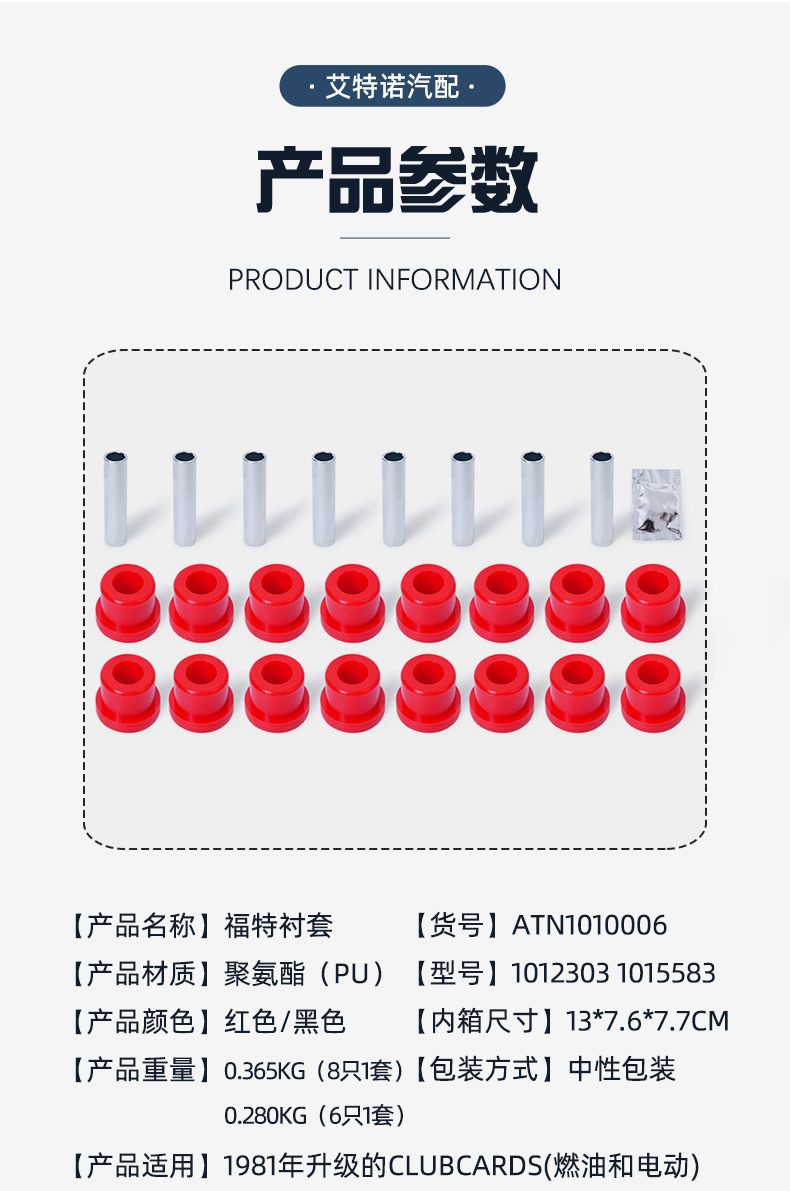골프 카트 리어 리프 스프링 폴리 우레탄 부싱 케이싱 1012303 1015583 국경 간 자동차 부품