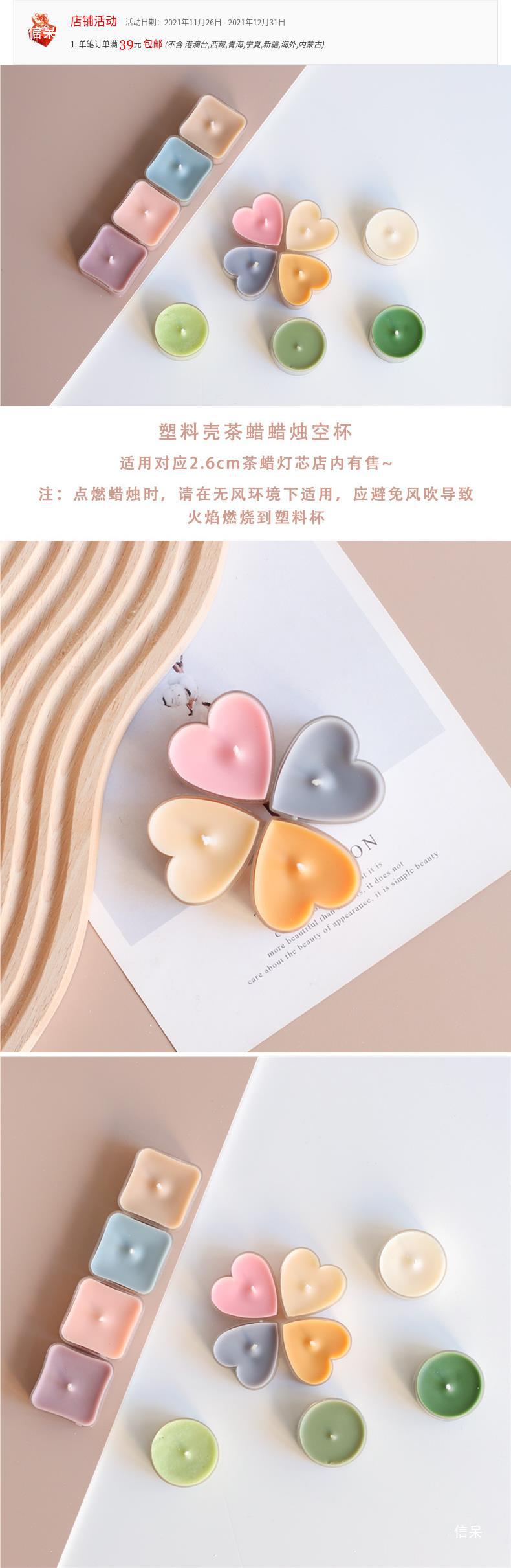창조적 인 작은 차 왁스 빈 컵 DIY 사랑 모양 원하는 촛불 플라스틱 컵 작은 용량 왁스 컵스토어 가기