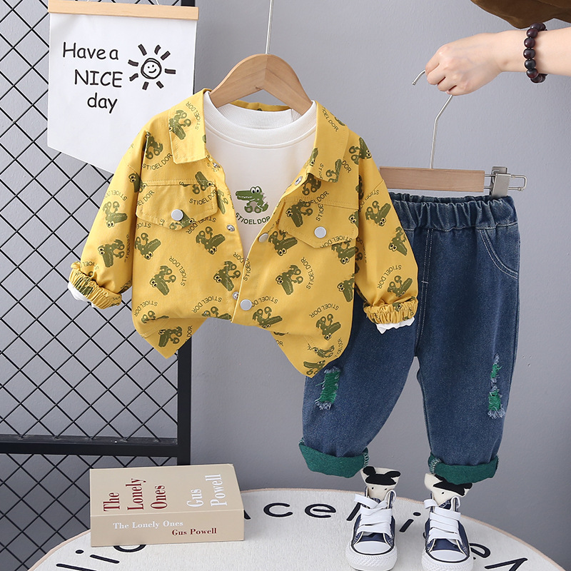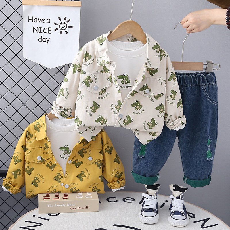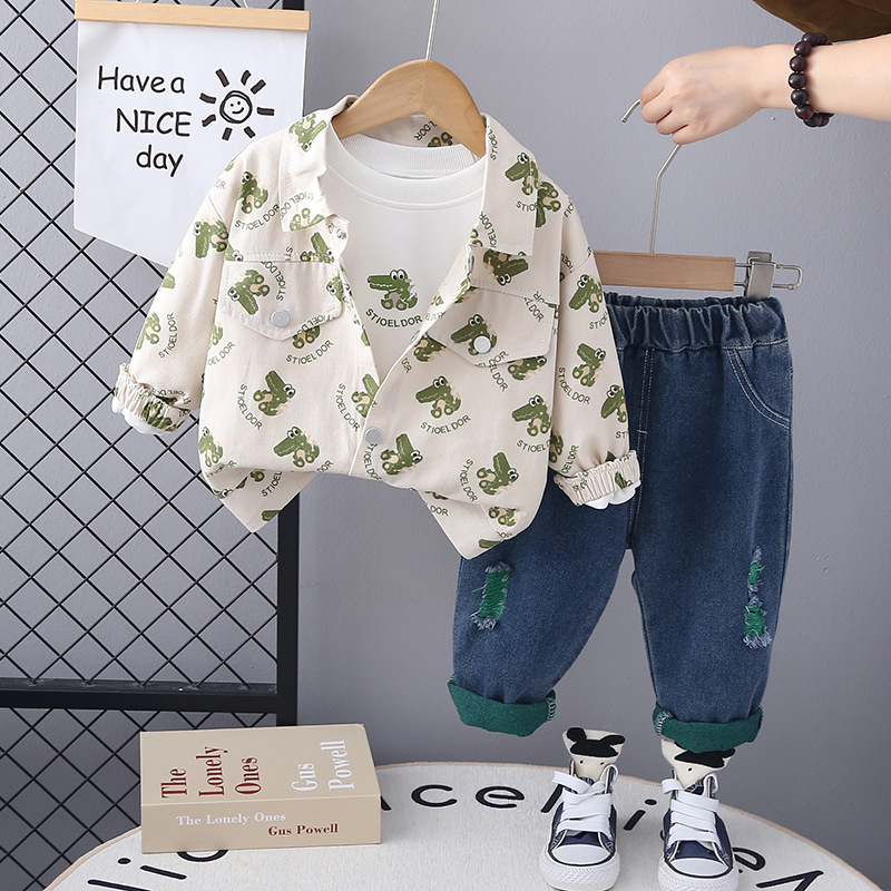봄과 가을 세트 어린이와 소년 아기를위한 가을 소녀 서양식 운동복 전체 인쇄 동물 긴팔 세 조각 유행 세트스토어 가기