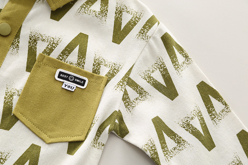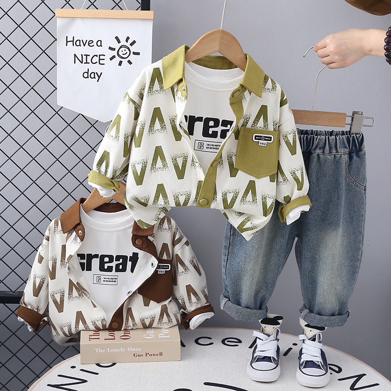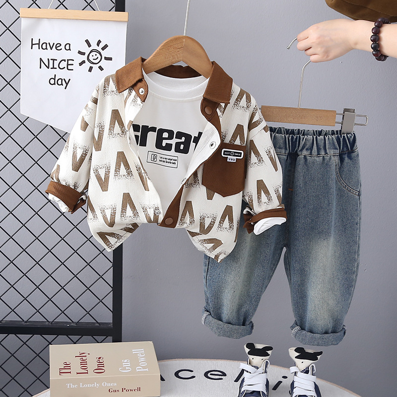 봄과 가을 세트 중소형 어린이 및 소년을위한 가을 소녀 서양식 스포츠웨어 풀 프린트 삼각형 긴팔 3 피스 유행 세트
