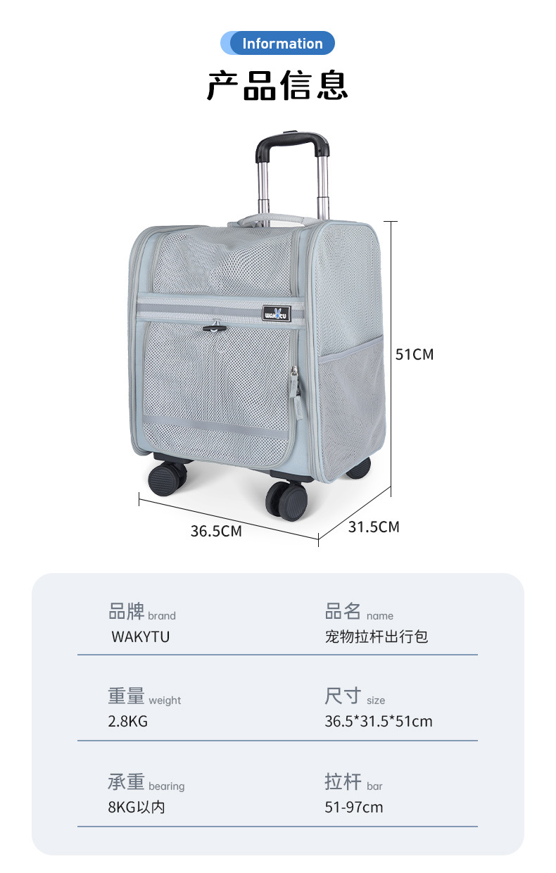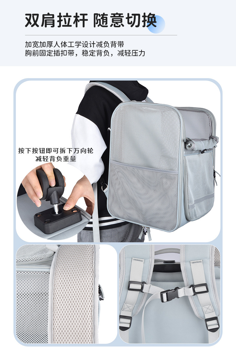 Wakytu UK 더블 숄더 크로스 보더 폭발 대용량 애완 동물 배낭 유니버설 휠 통기성 더블 숄더 풀 로드 고양이 가방