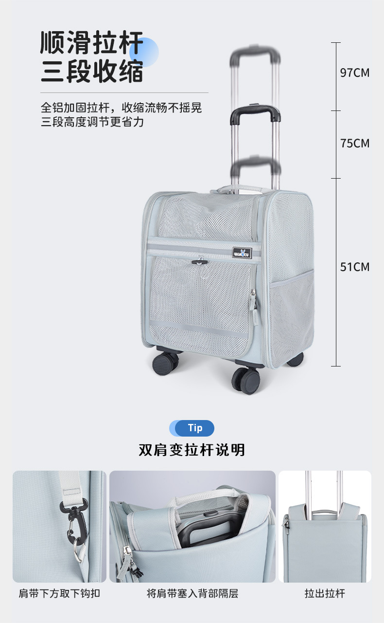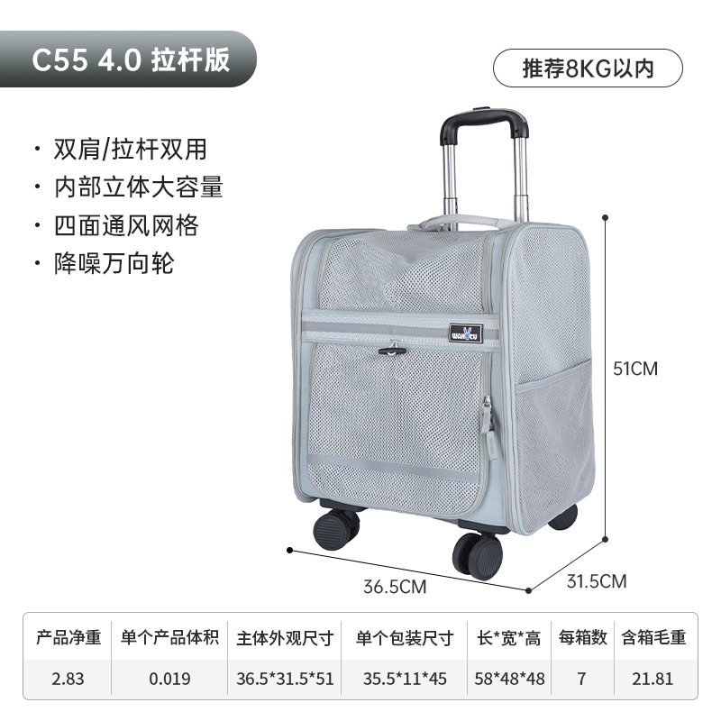 Wakytu UK 더블 숄더 크로스 보더 폭발 대용량 애완 동물 배낭 유니버설 휠 통기성 더블 숄더 풀 로드 고양이 가방스토어 가기