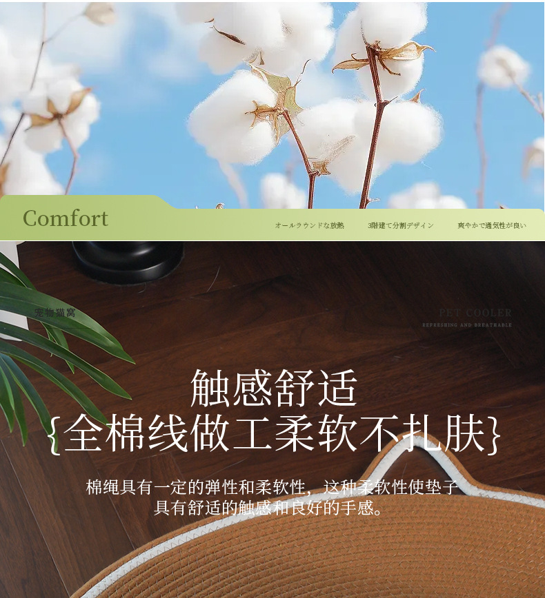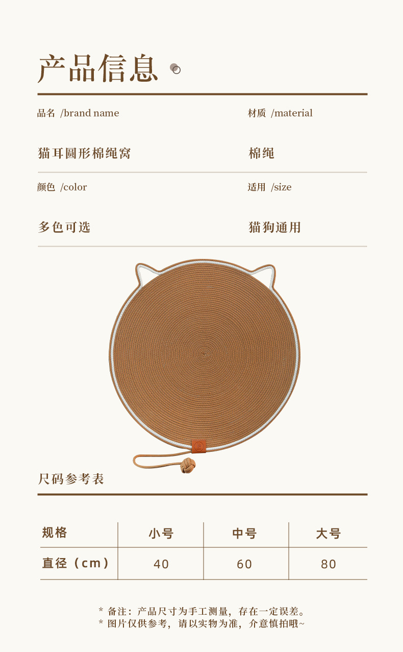 • 고양이 귀 라운드 면 로프 패드 60cm