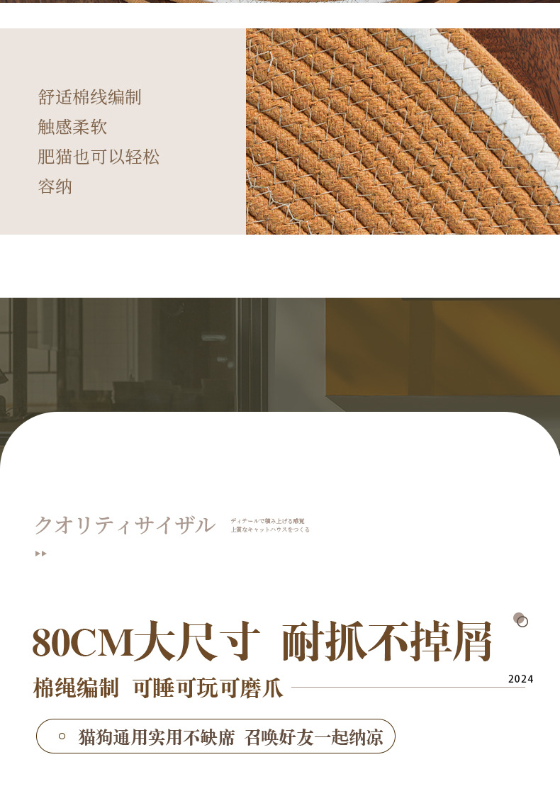 • 고양이 귀 라운드 면 로프 패드 80cm