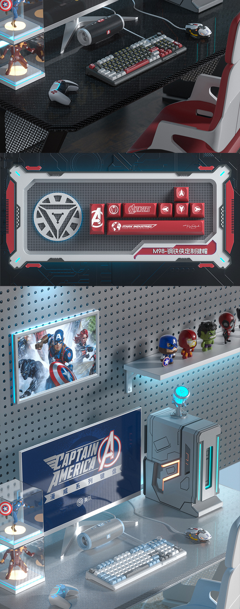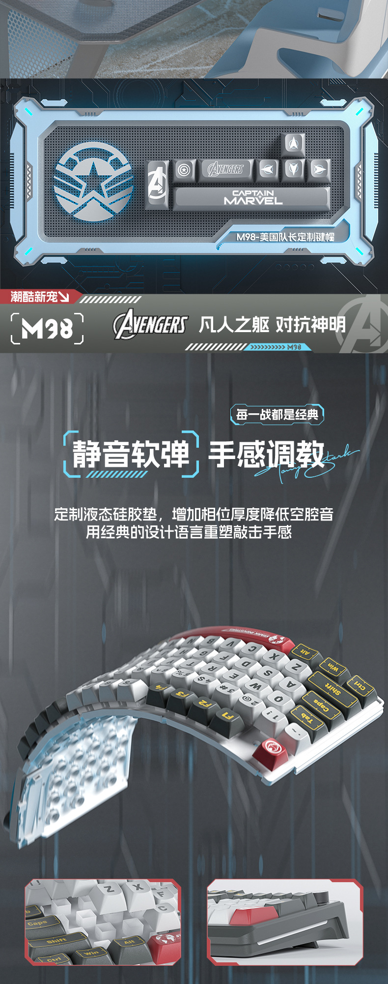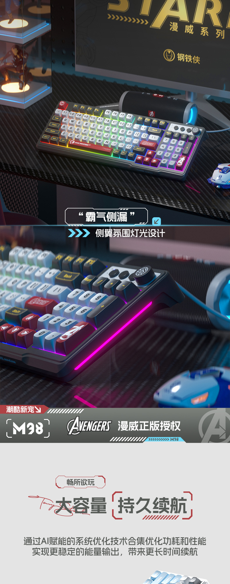 • 마블 정품-아이언 맨 (그레이-블랙 혼합 라이트)-무선 블루투스 듀얼 모드 키보드