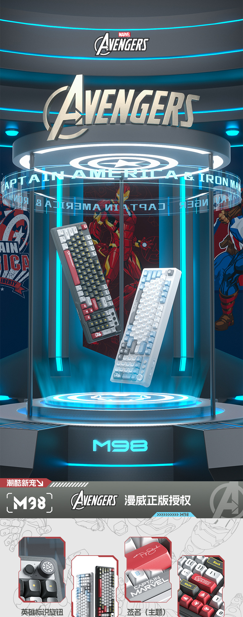 • 마블 정품-미국 팀 (파란색과 흰색 혼합 빛)-무선 블루투스 듀얼 모드 키보드