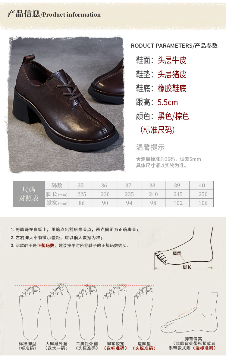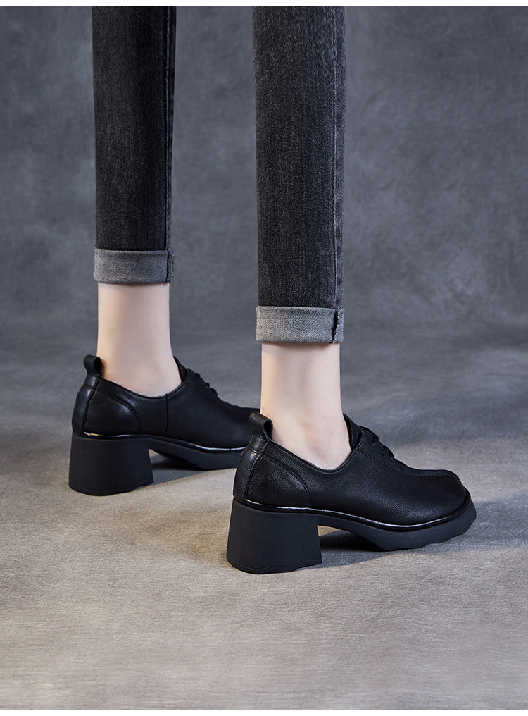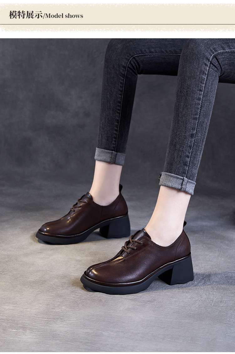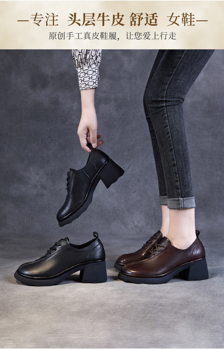 레이스 업 작은 가죽 신발 여성의 영국 스타일 2024 봄과 가을 새로운 복고풍 가죽 작은 하이힐 캐주얼 신발 청키 힐 싱글 레이어 신발스토어 가기