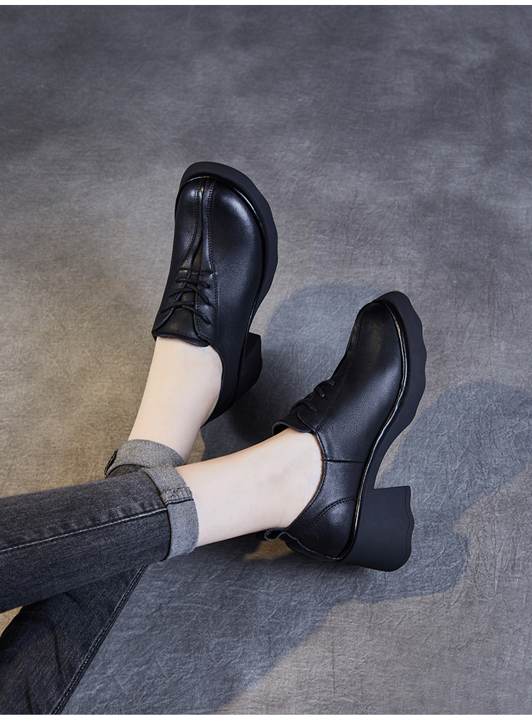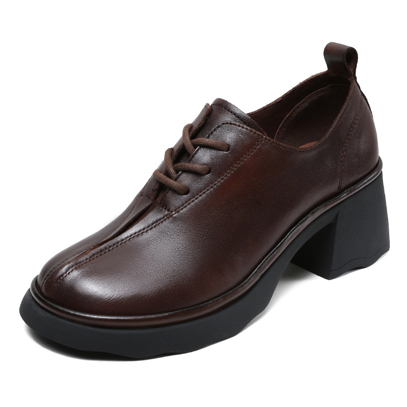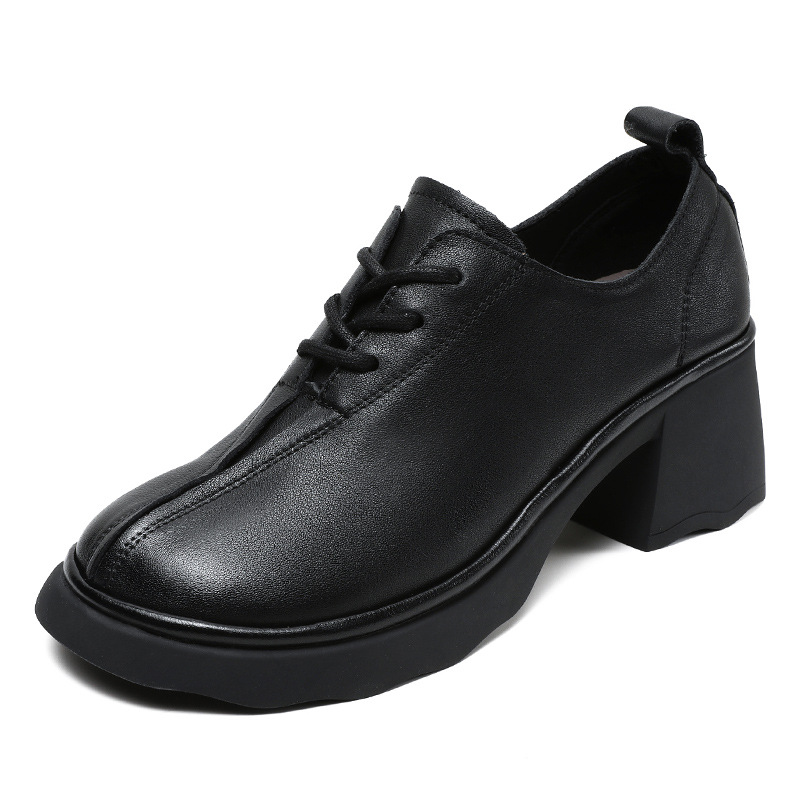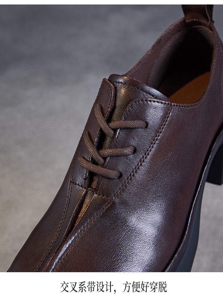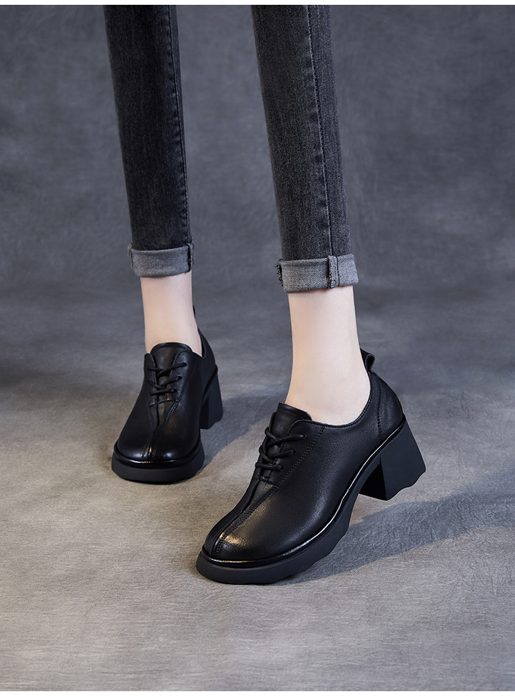 레이스 업 작은 가죽 신발 여성의 영국 스타일 2024 봄과 가을 새로운 복고풍 가죽 작은 하이힐 캐주얼 신발 청키 힐 싱글 레이어 신발스토어 가기