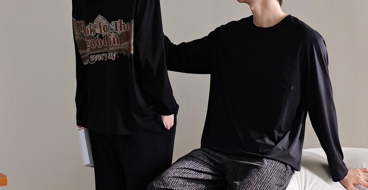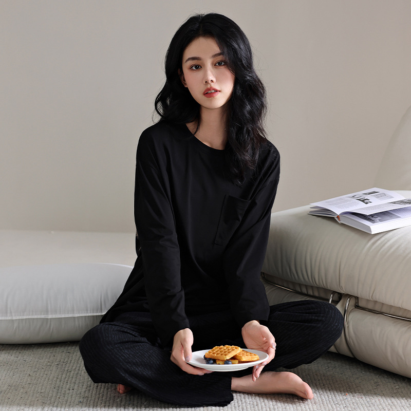【항균 및 매우 부드러움】커플 잠옷 봄 가을 남녀용 심플 모달 긴팔 홈웨어 세트스토어 가기