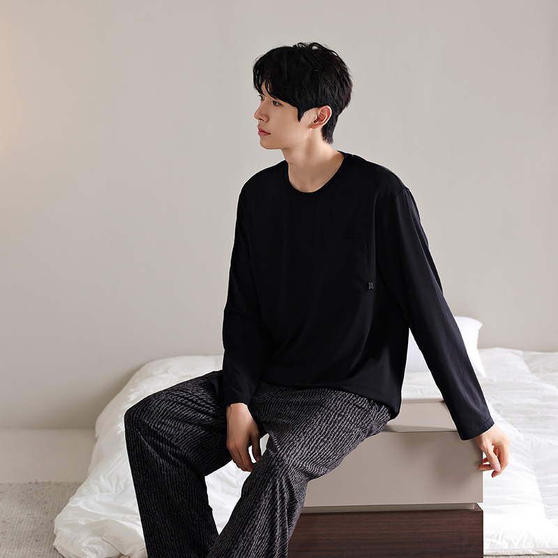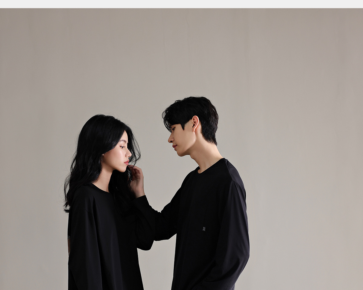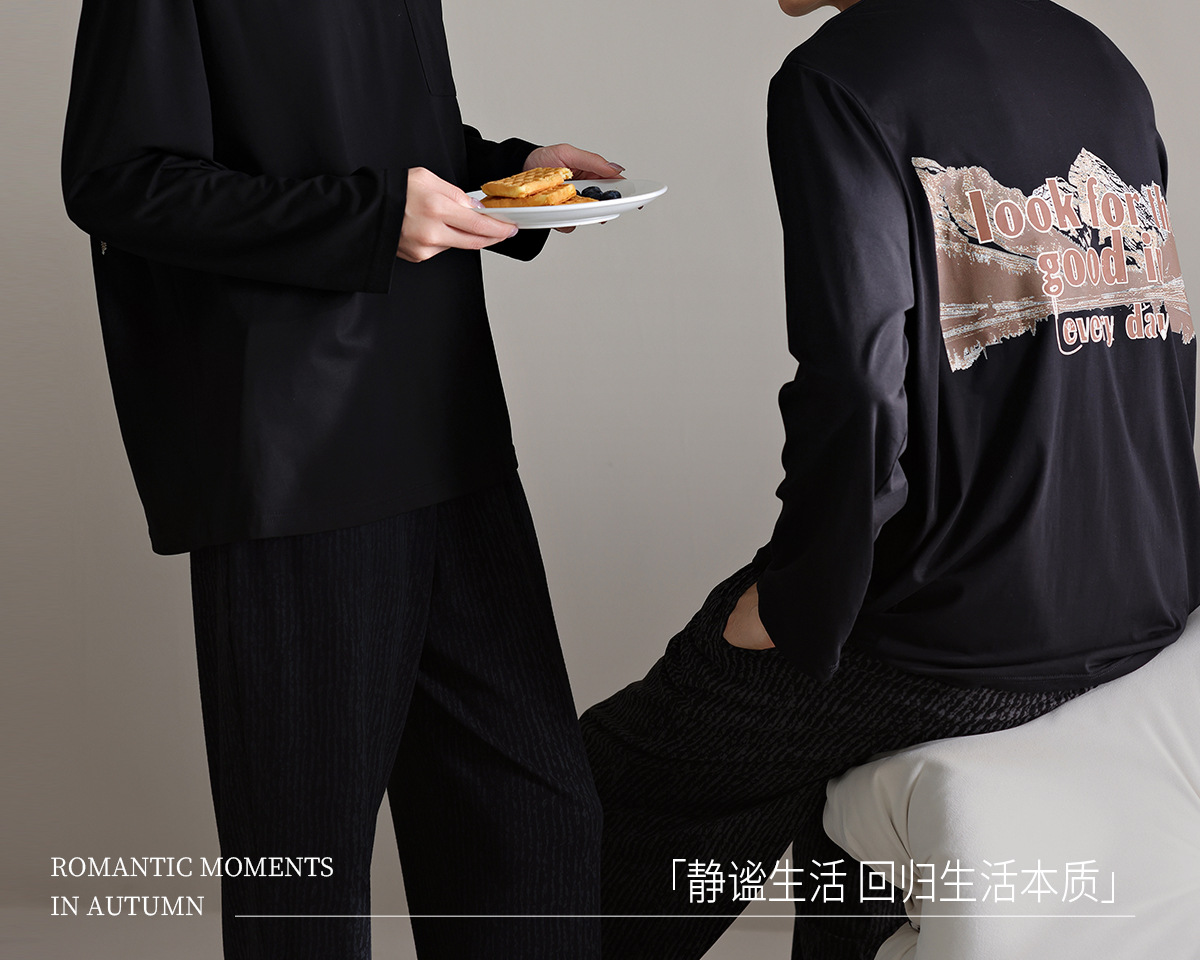 【항균 및 매우 부드러움】커플 잠옷 봄 가을 남녀용 심플 모달 긴팔 홈웨어 세트