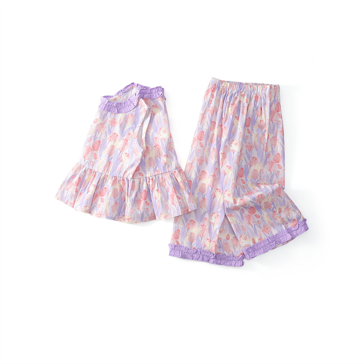 MDD 여자 여름 세트 2024 여름 인터넷 연예인 튀김 거리 소녀 아기 유행 서양 스타일 민소매 어린이 여름 원피스