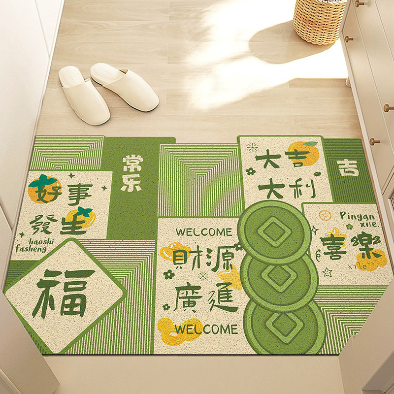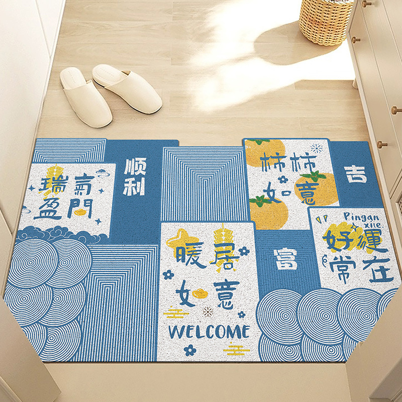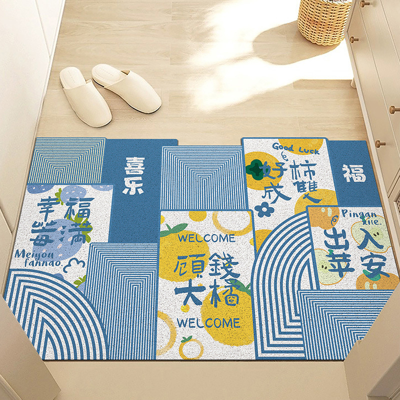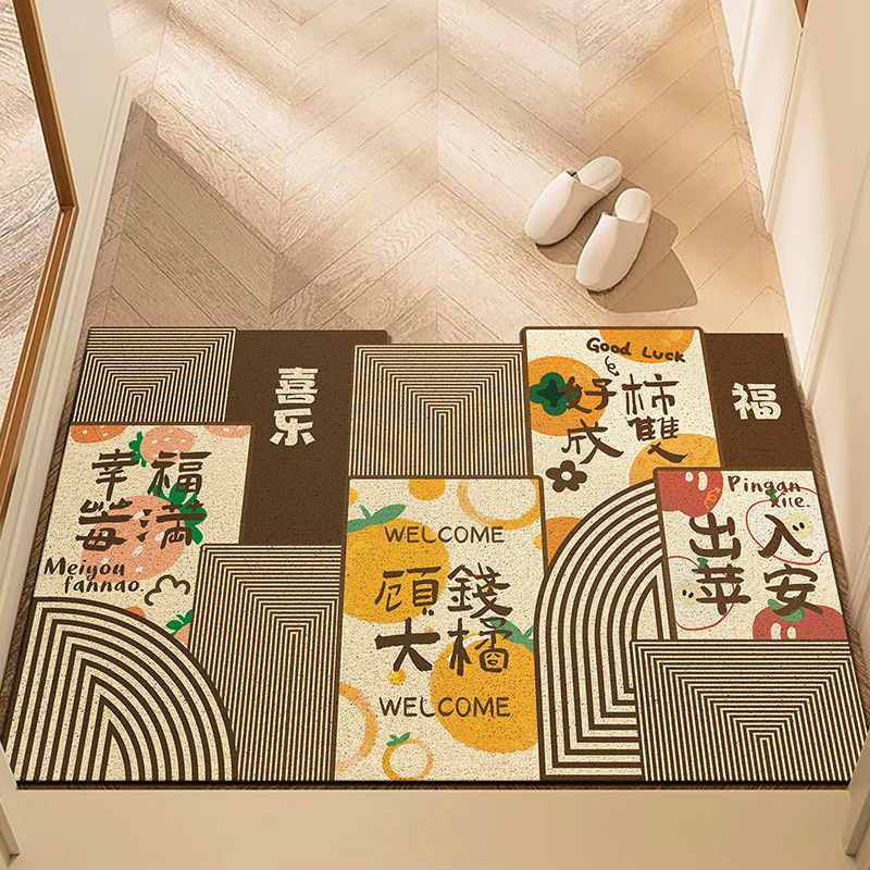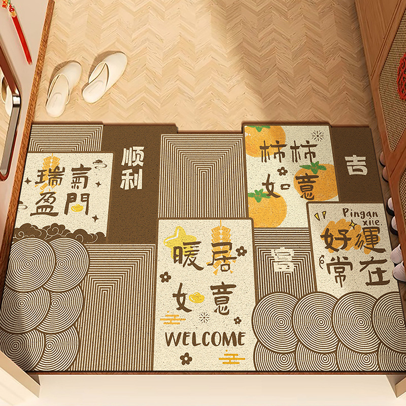 중국풍 현관 매트, 가정용 입구 매트, 실크 링 매트, 오염 방지, 내마모성, 미끄럼 방지, 절단 가능 현관 매트