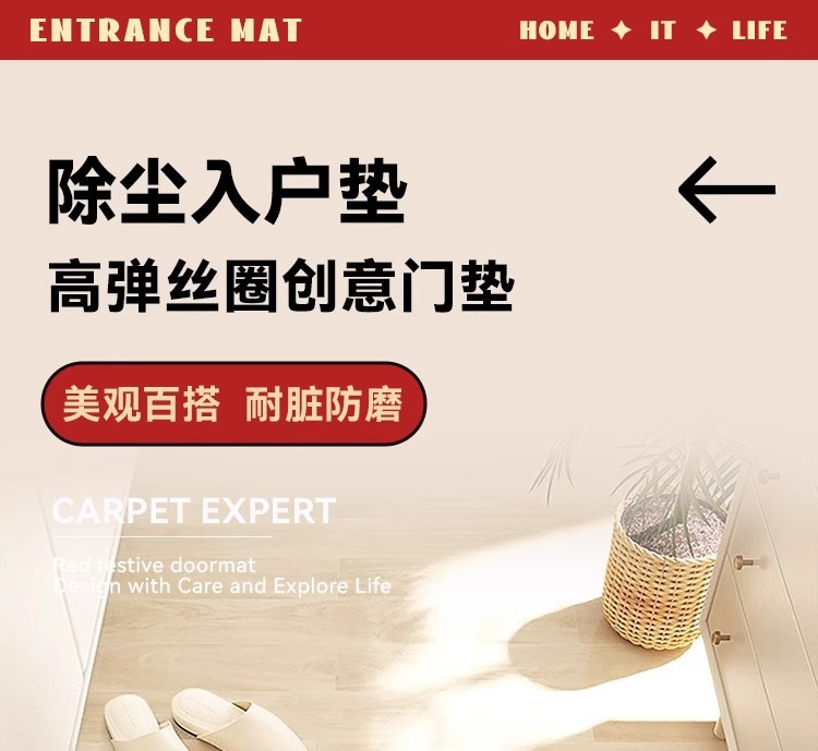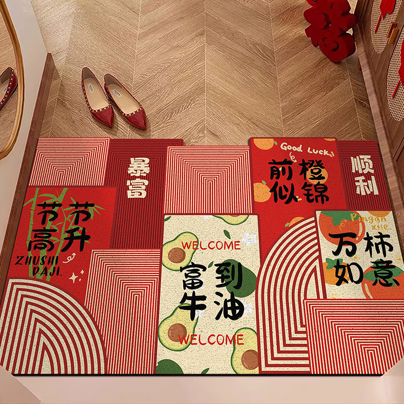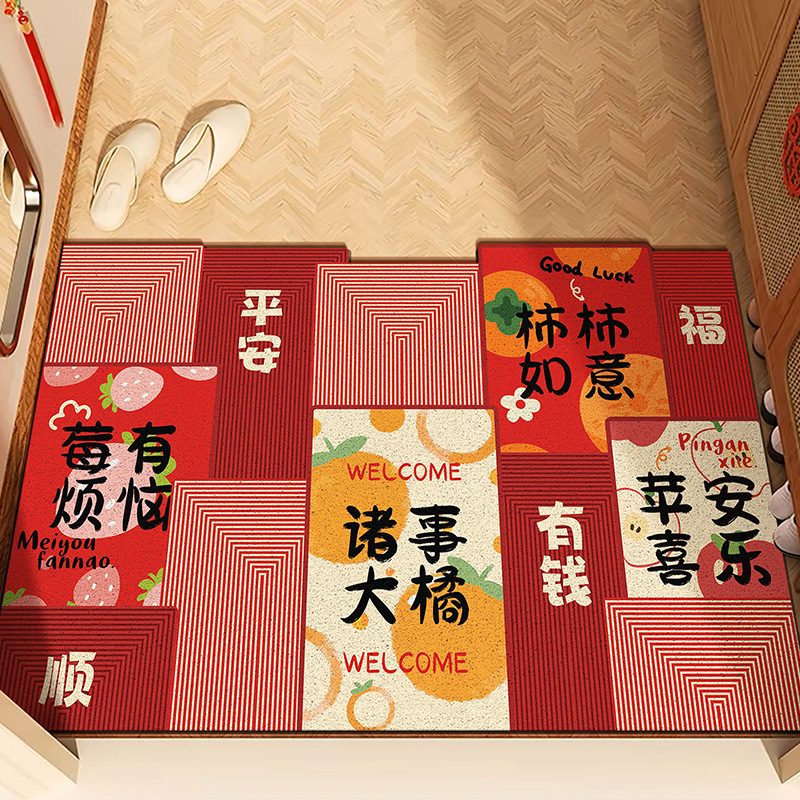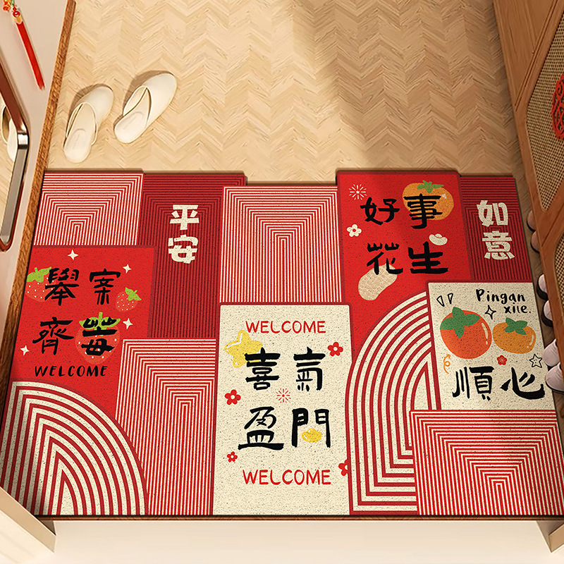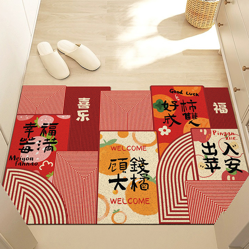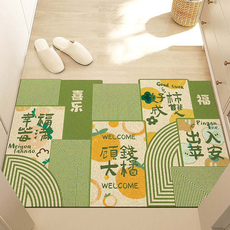 중국풍 현관 매트, 가정용 입구 매트, 실크 링 매트, 오염 방지, 내마모성, 미끄럼 방지, 절단 가능 현관 매트