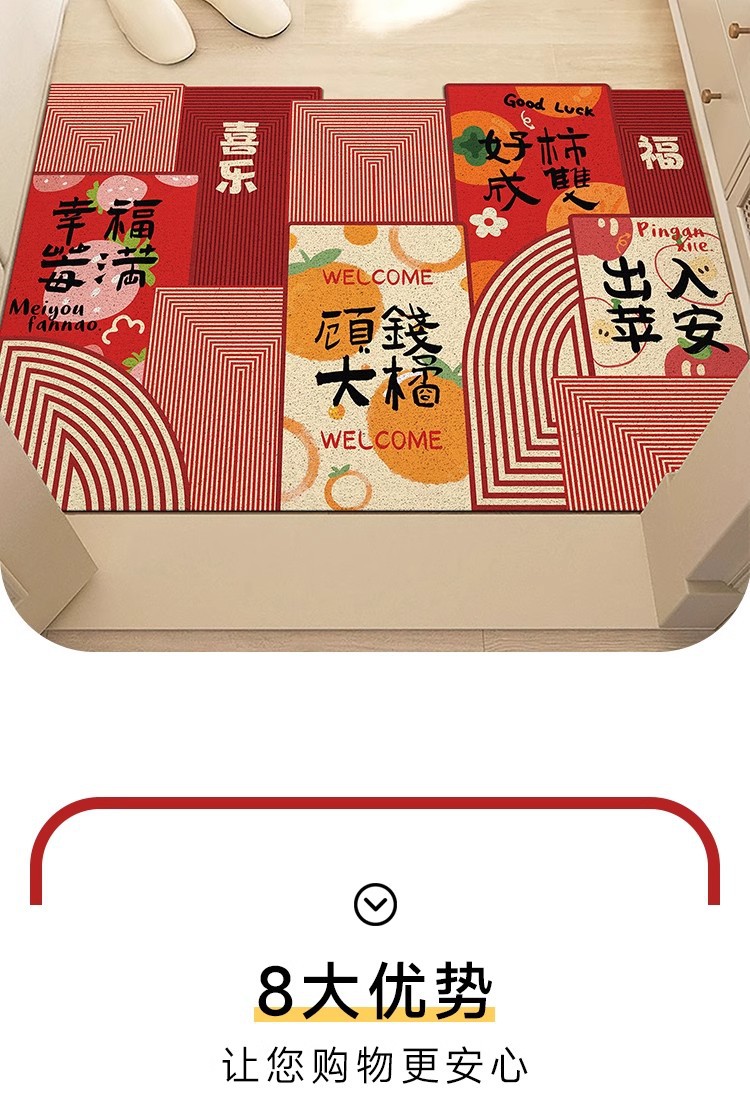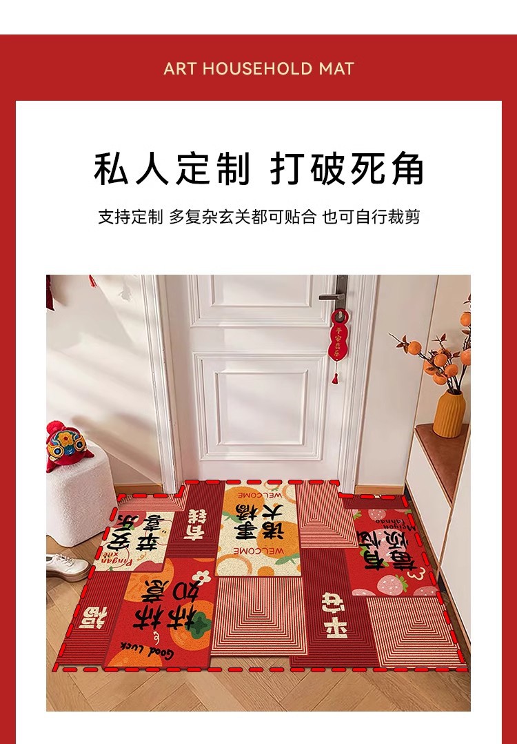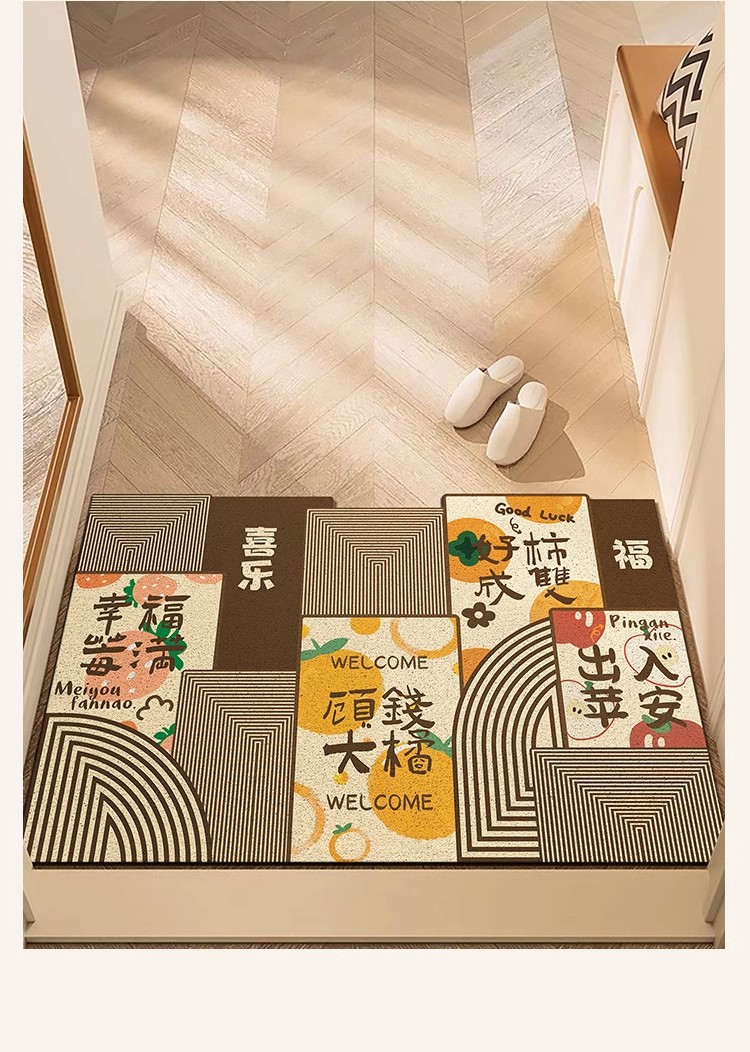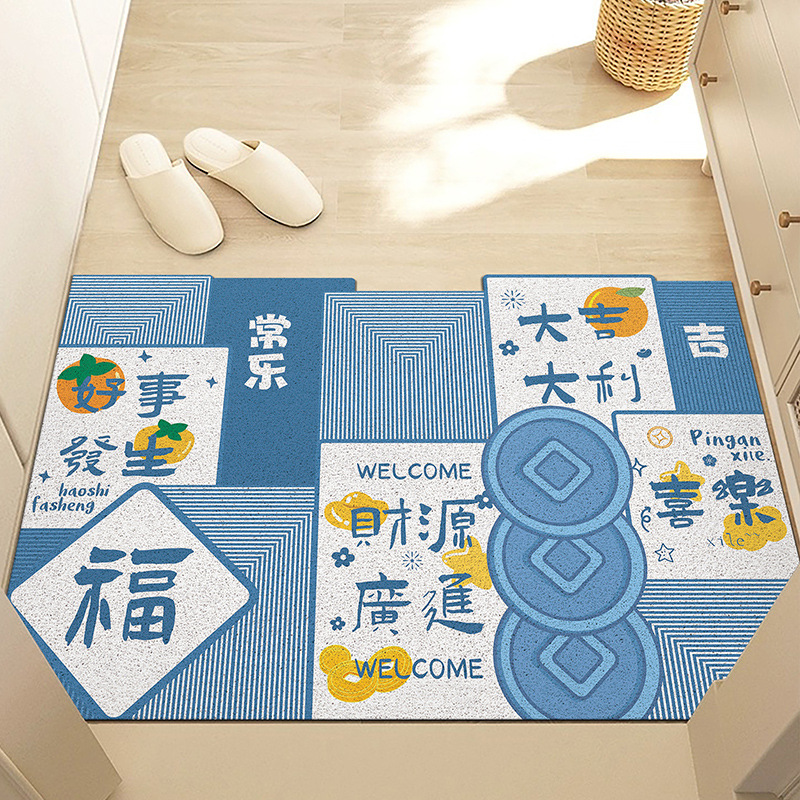 중국풍 현관 매트, 가정용 입구 매트, 실크 링 매트, 오염 방지, 내마모성, 미끄럼 방지, 절단 가능 현관 매트스토어 가기