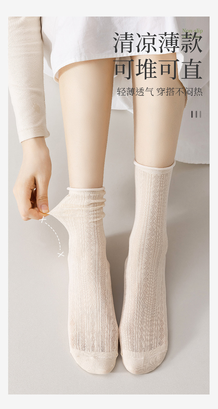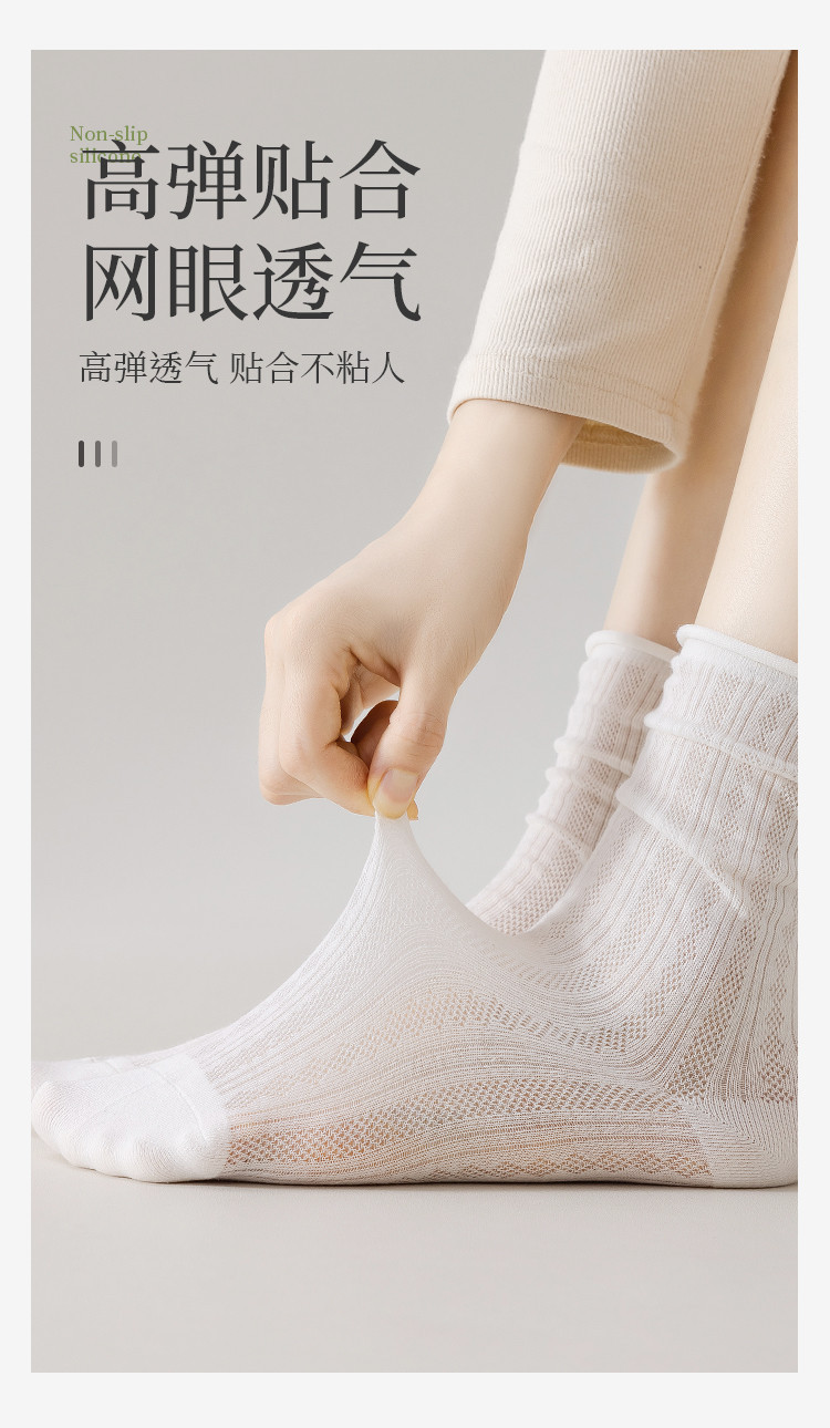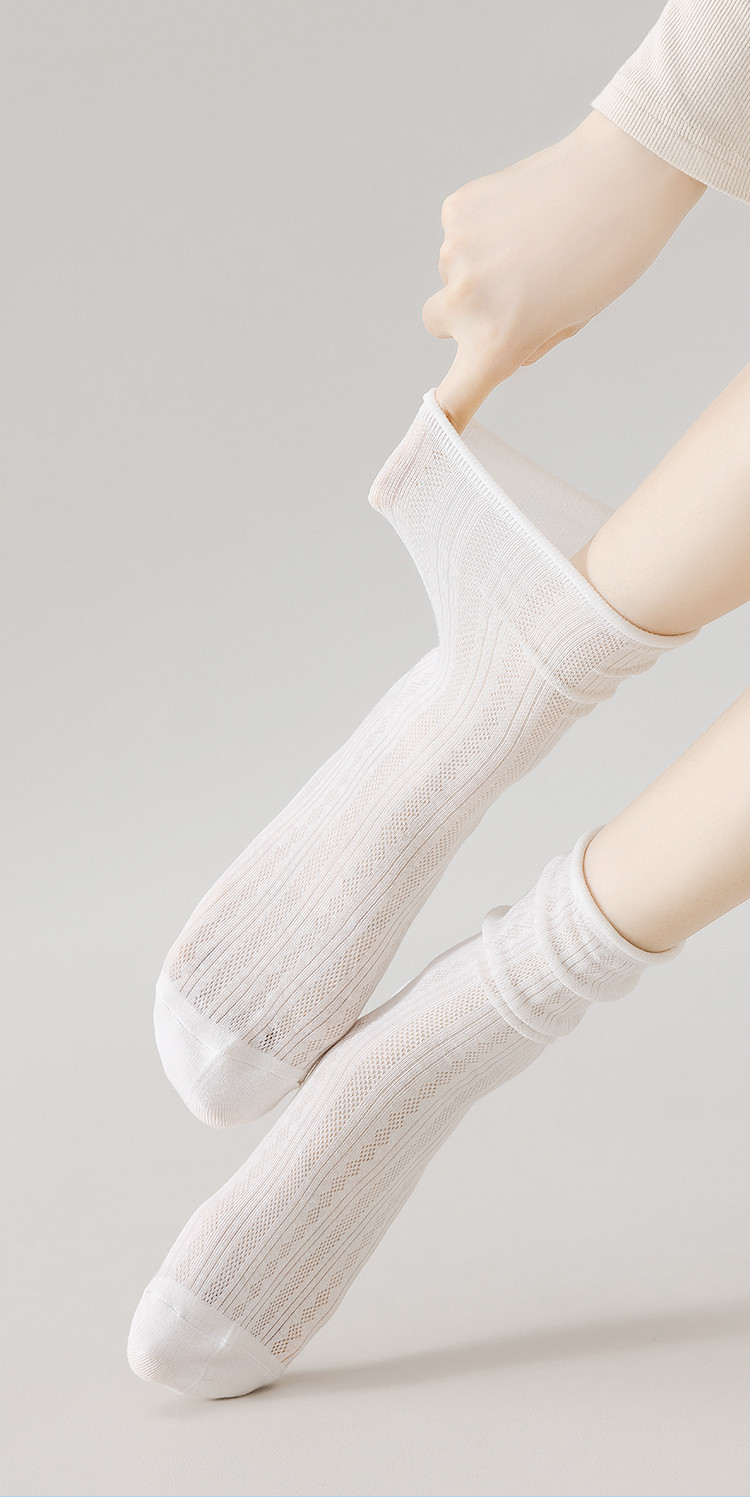 Guanxuan 메쉬 양말 여성 여름 얇은 더미 양말 흰색 얼음 양말 통기성 봄, 가을 순수 코튼 중반 송아지 양말 여성