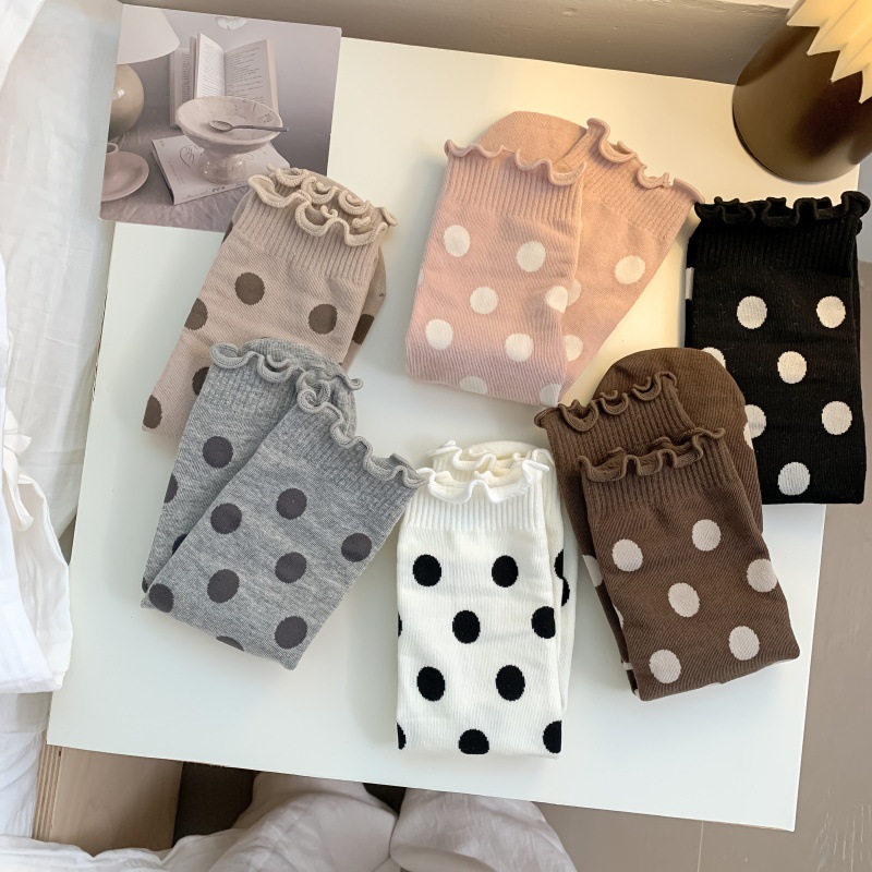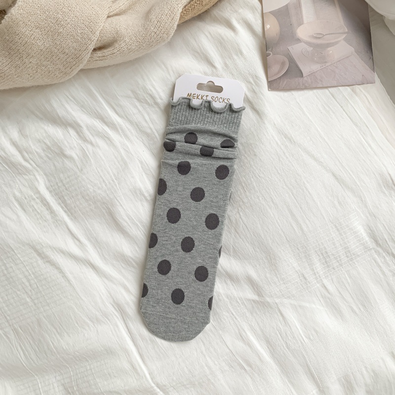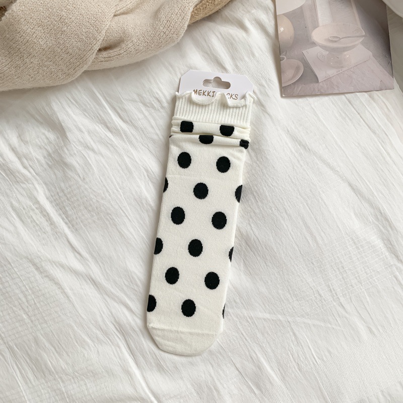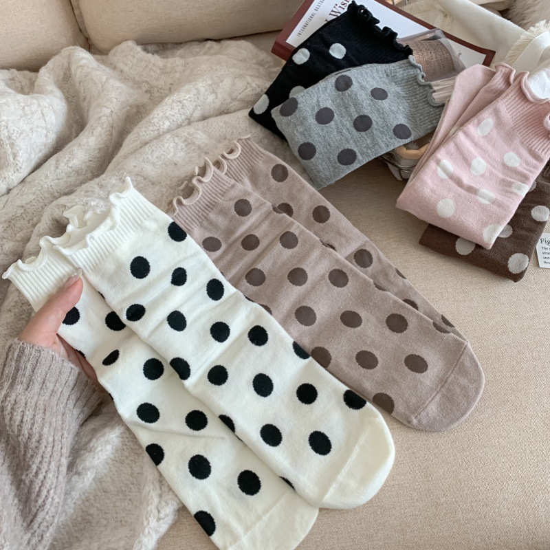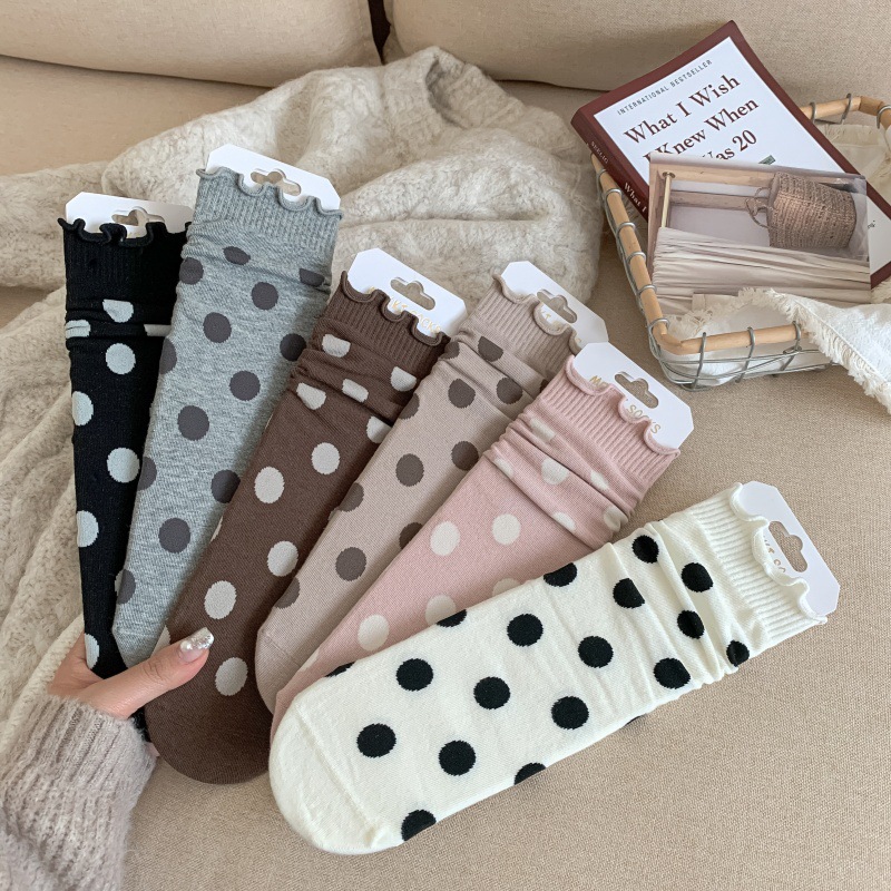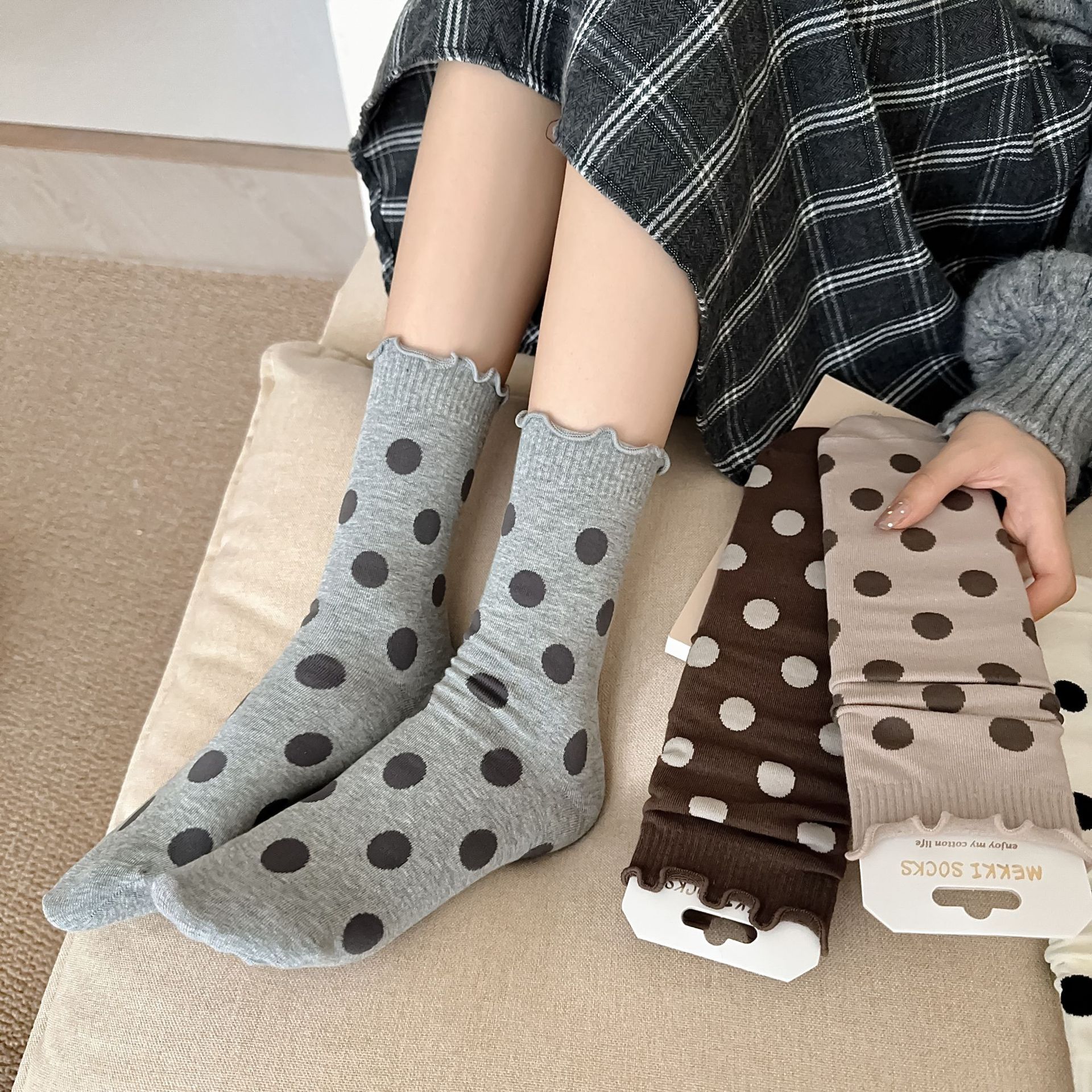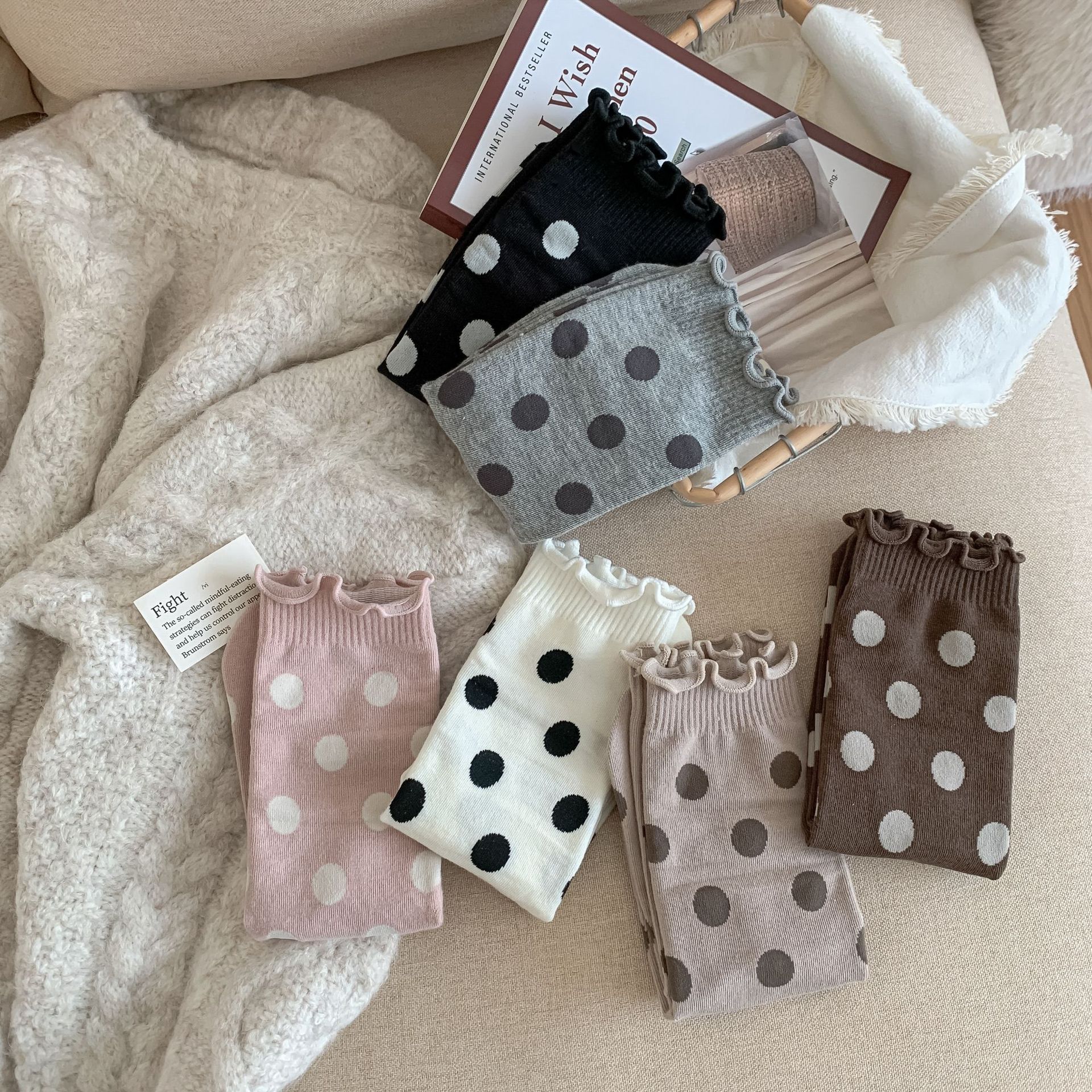 양말 여성 폴카 도트 곰팡이 더미 양말 가을, 겨울 ins 유행 한국 스타일 빗질면 캐주얼 여성 중반 송아지 양말