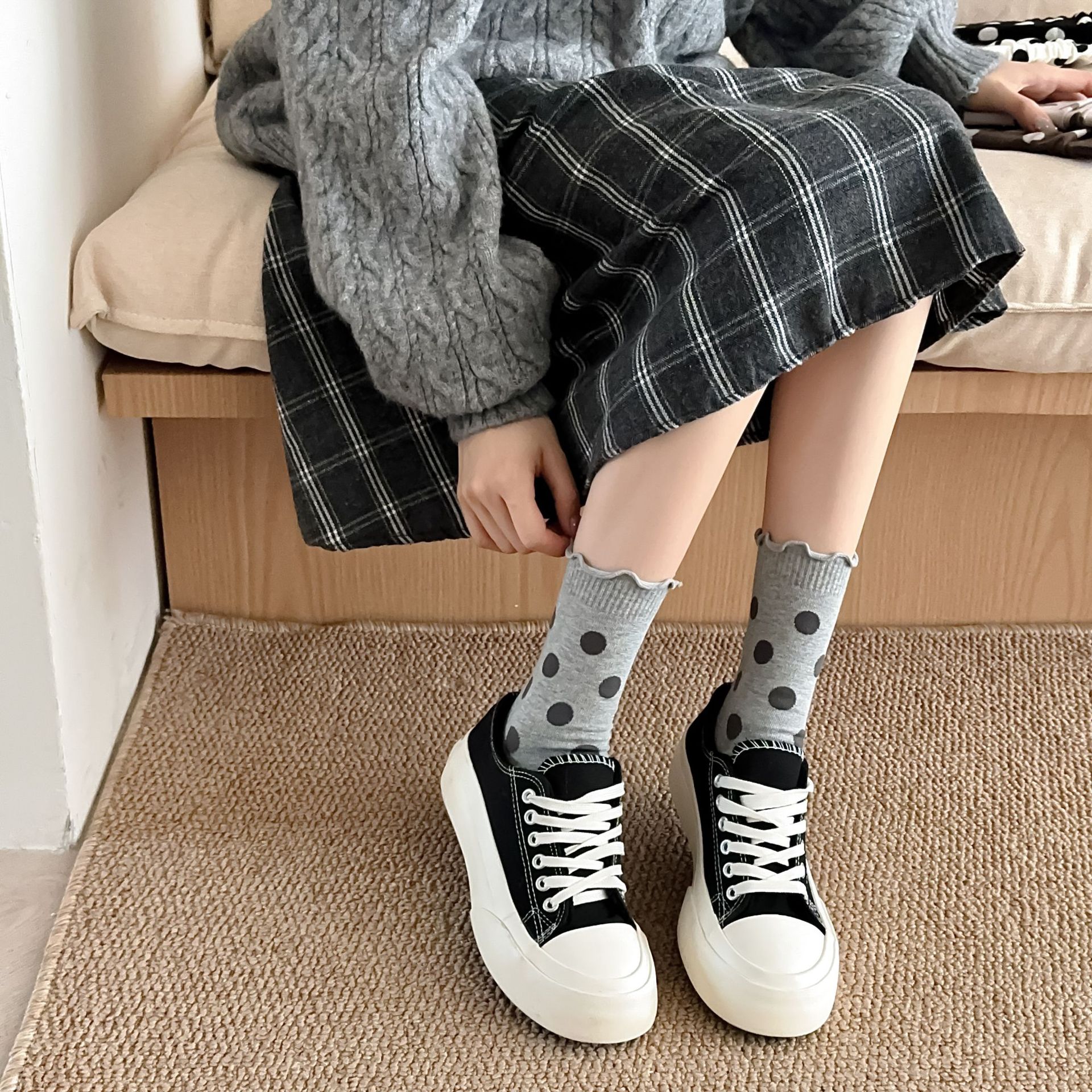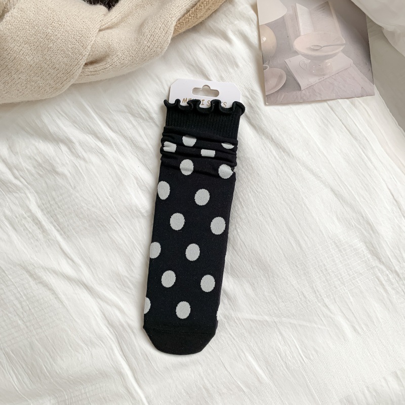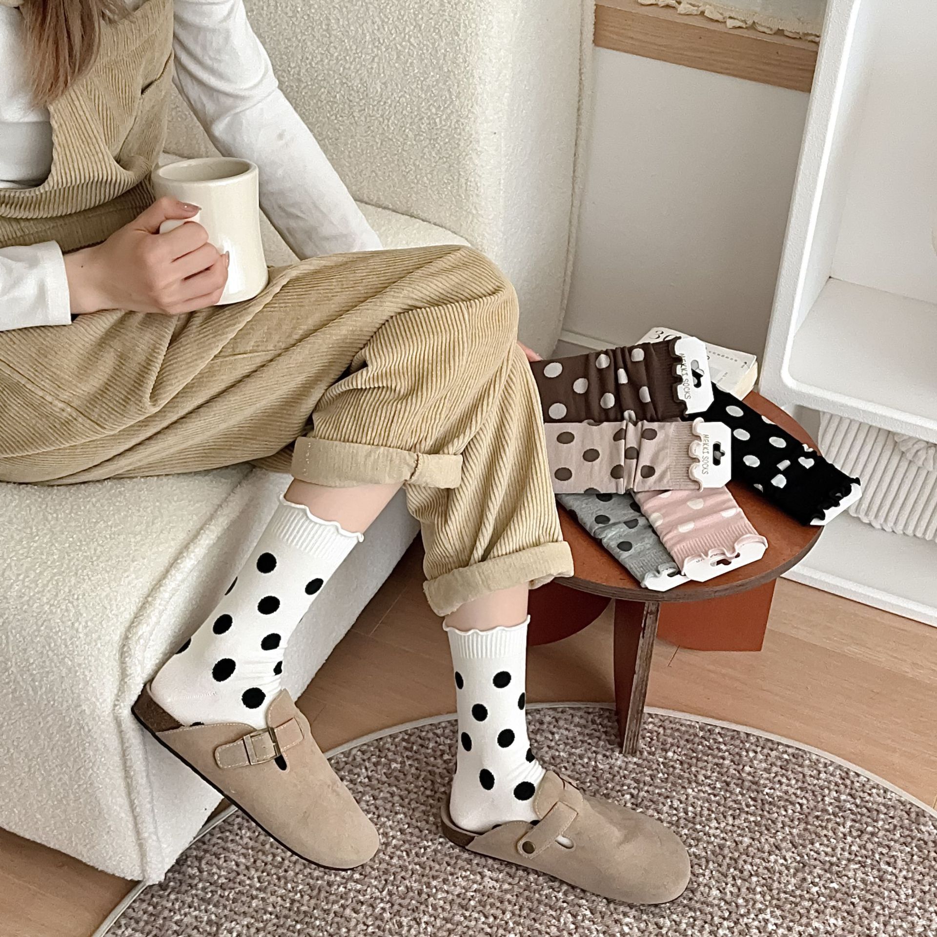 양말 여성 폴카 도트 곰팡이 더미 양말 가을, 겨울 ins 유행 한국 스타일 빗질면 캐주얼 여성 중반 송아지 양말스토어 가기
