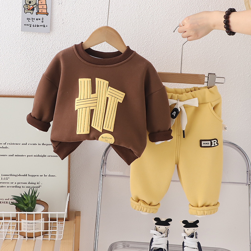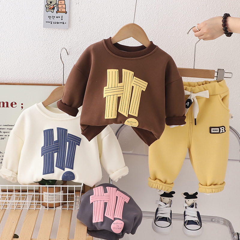 2024 가을 아동복 편지 잘 생긴 한국 버전의 조끼 단색 소년과 아동복 세트 조커스토어 가기