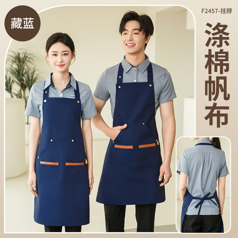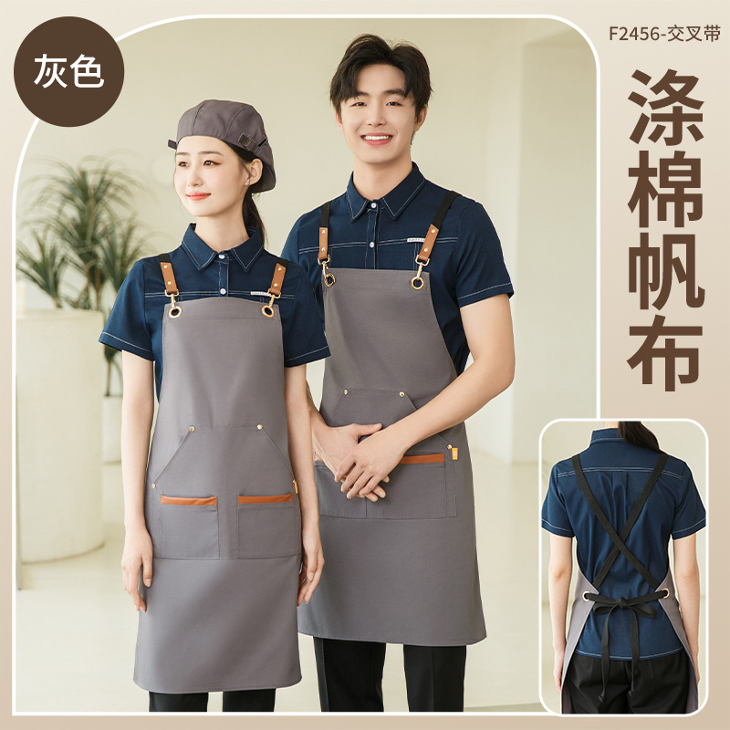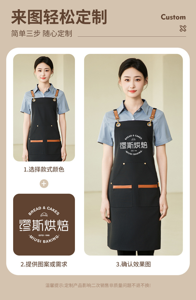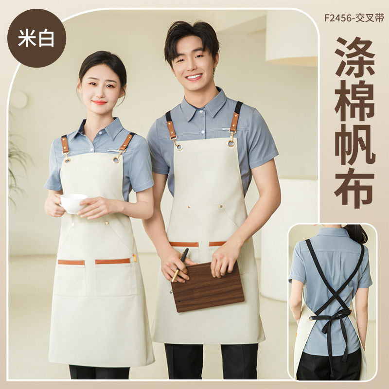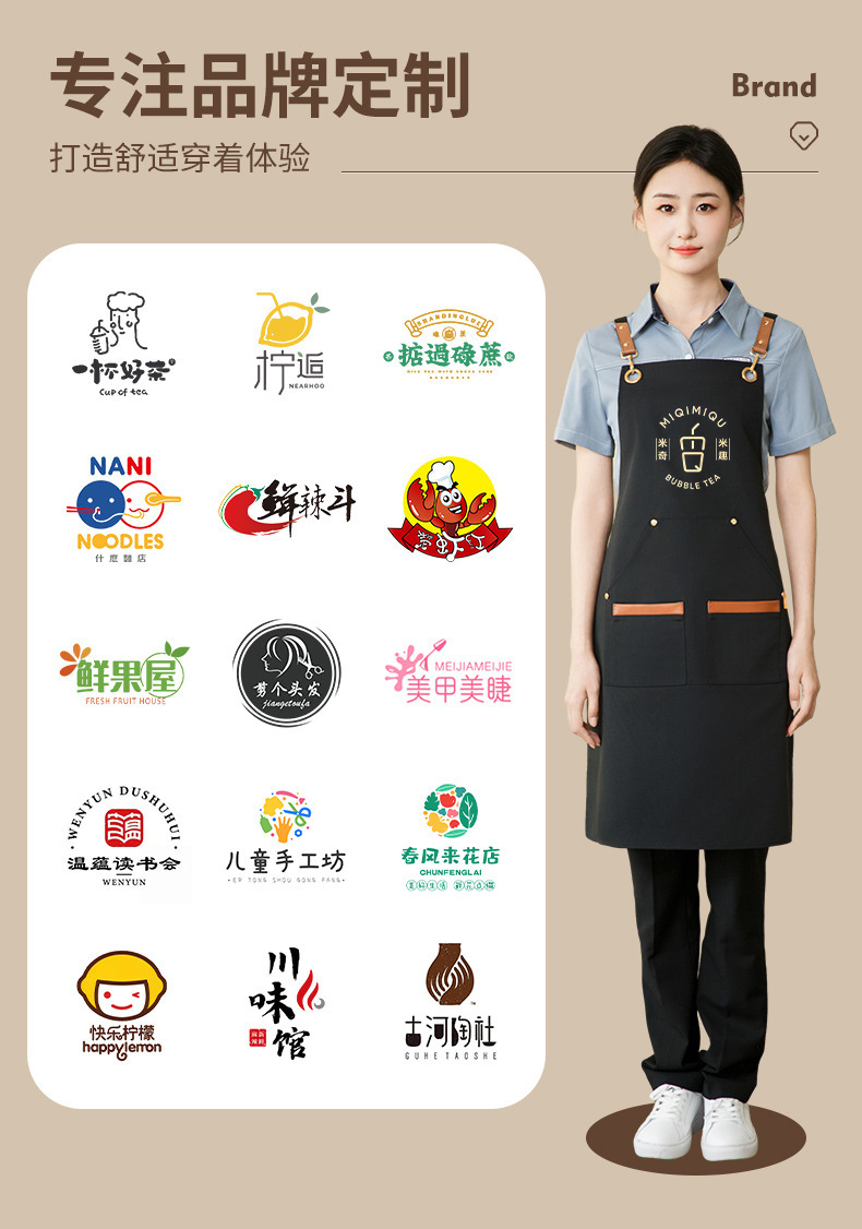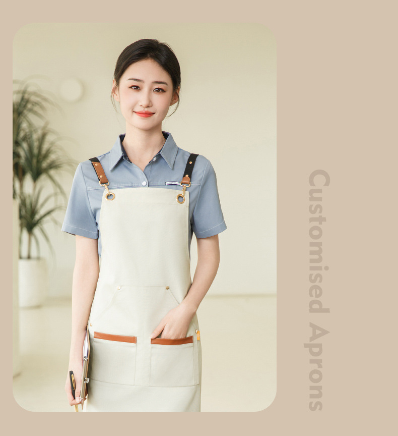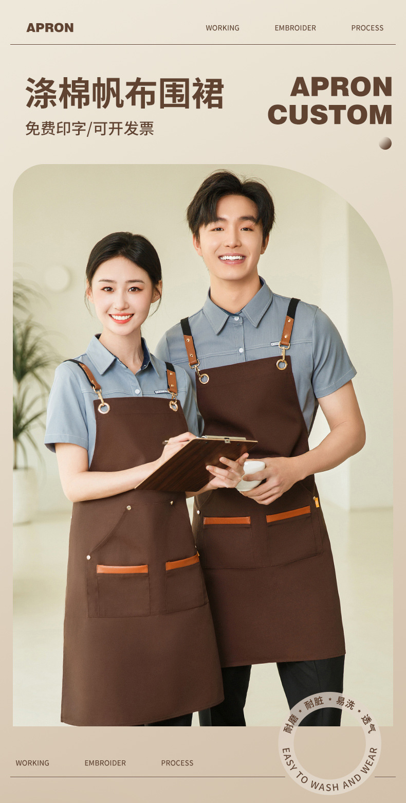앞치마 케이터링 특수 로고 인쇄 방수 및 오일-증거 작업 옷 여성 우유 차 가게 슈퍼마켓 허리스토어 가기