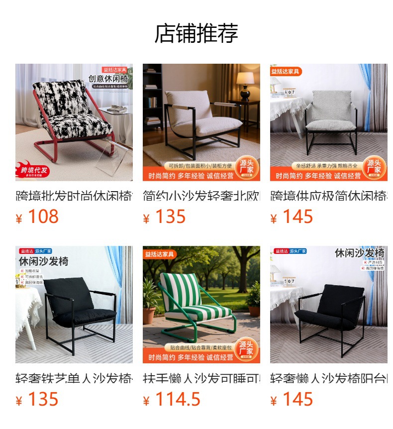국경 도매 패션 레저 의자 간단한 홈 침실 발코니 게으른 소파 높은 반등 스폰지 편안한 Recliner스토어 가기