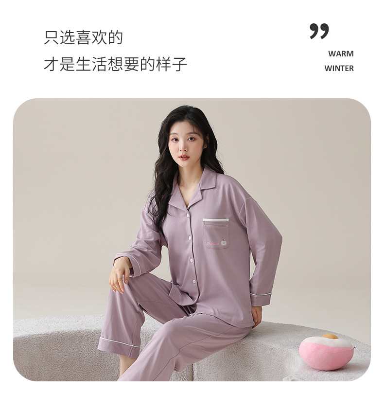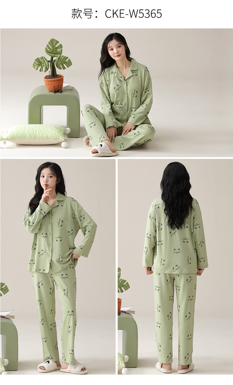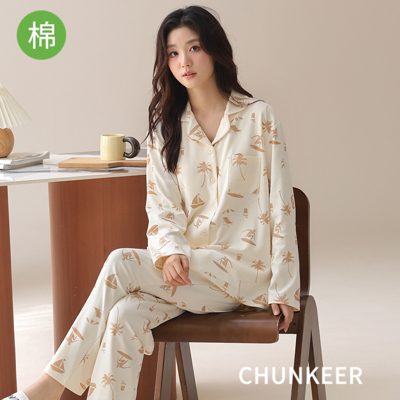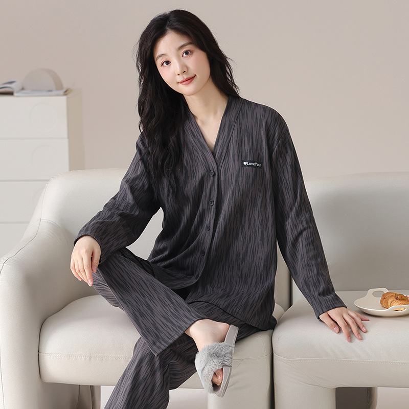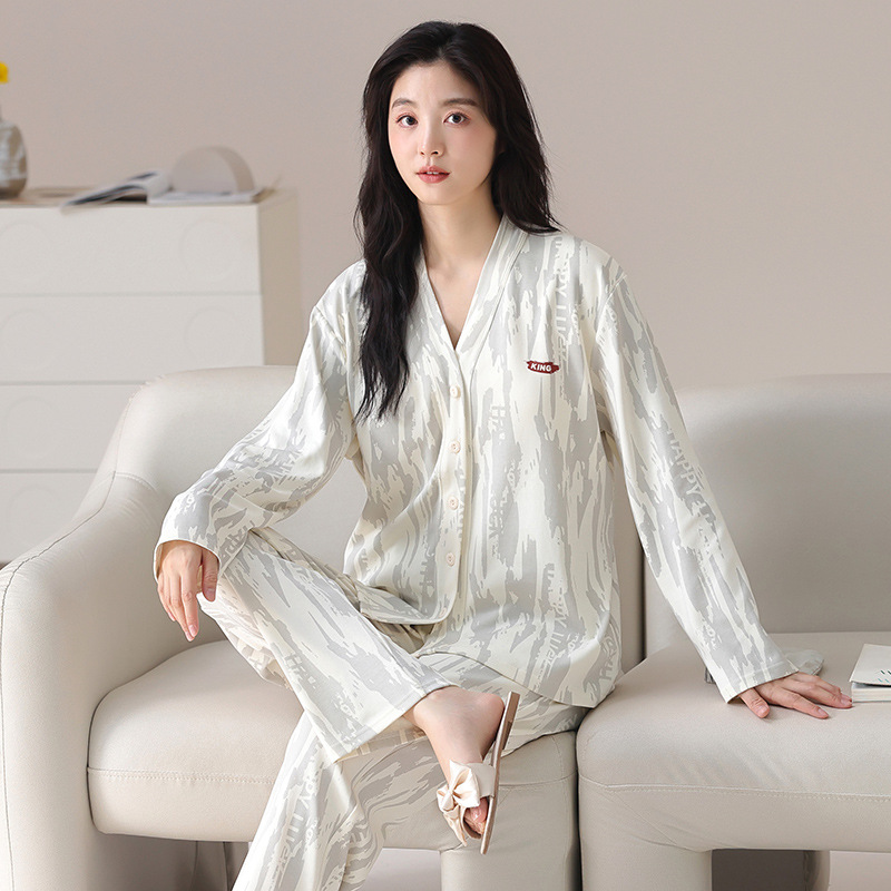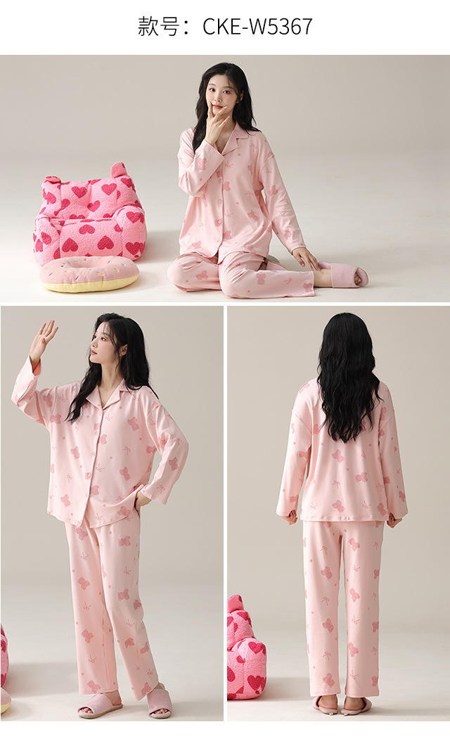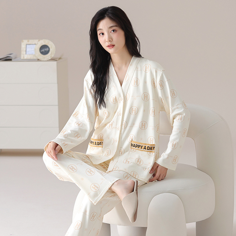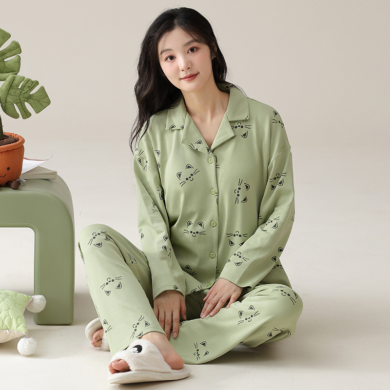 여성용 긴팔 순면 잠옷, 가을 겨울용 달콤한 카디건 스타일, 편안한 홈웨어, 외출복으로도 가능한 캐주얼 세트