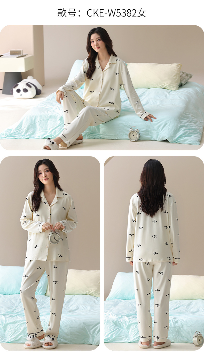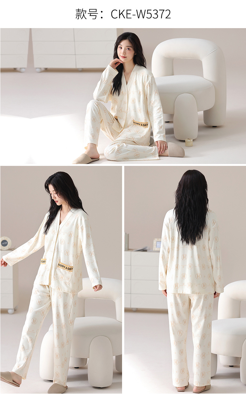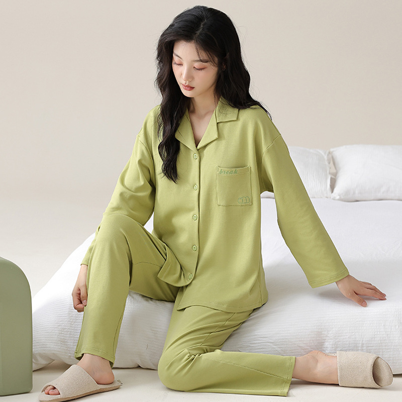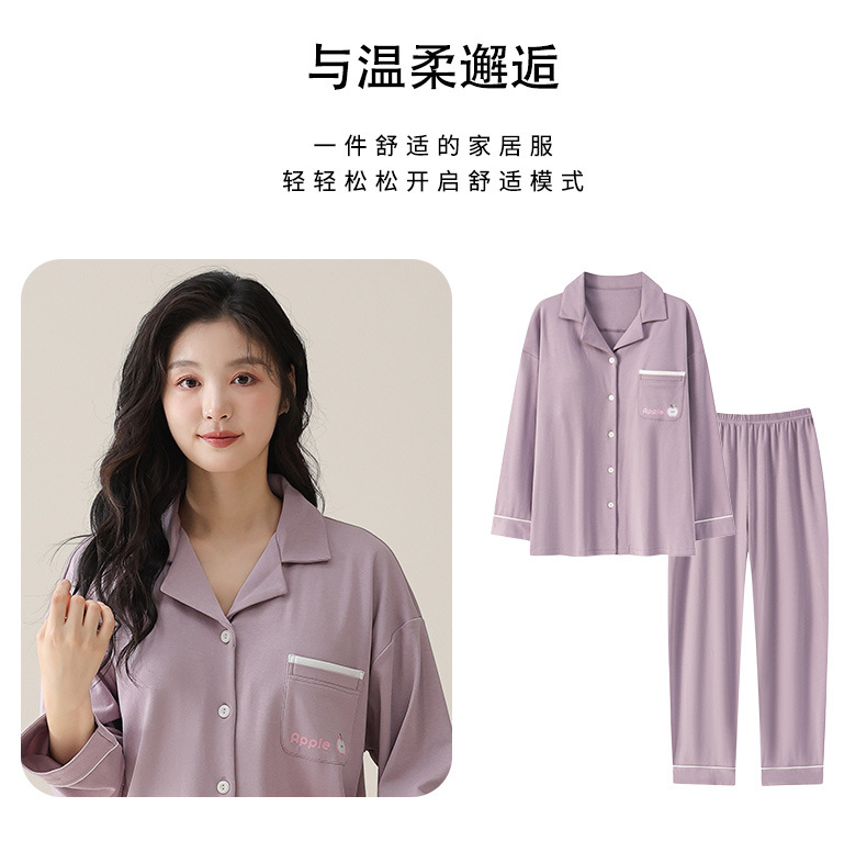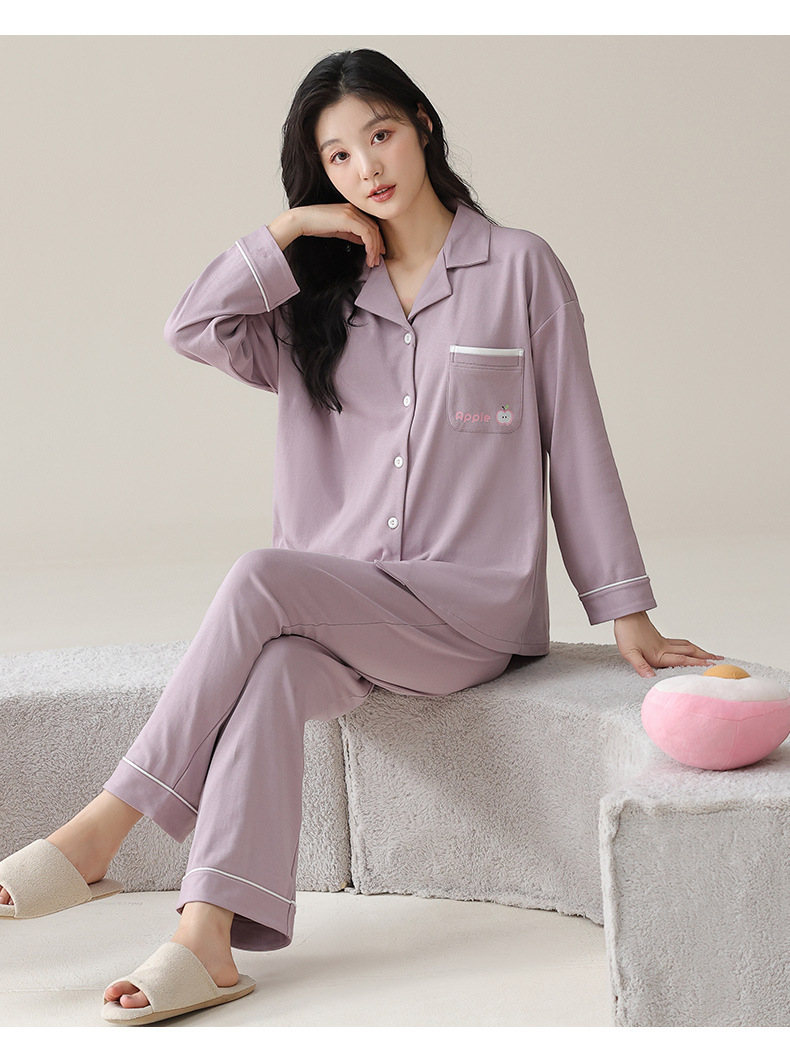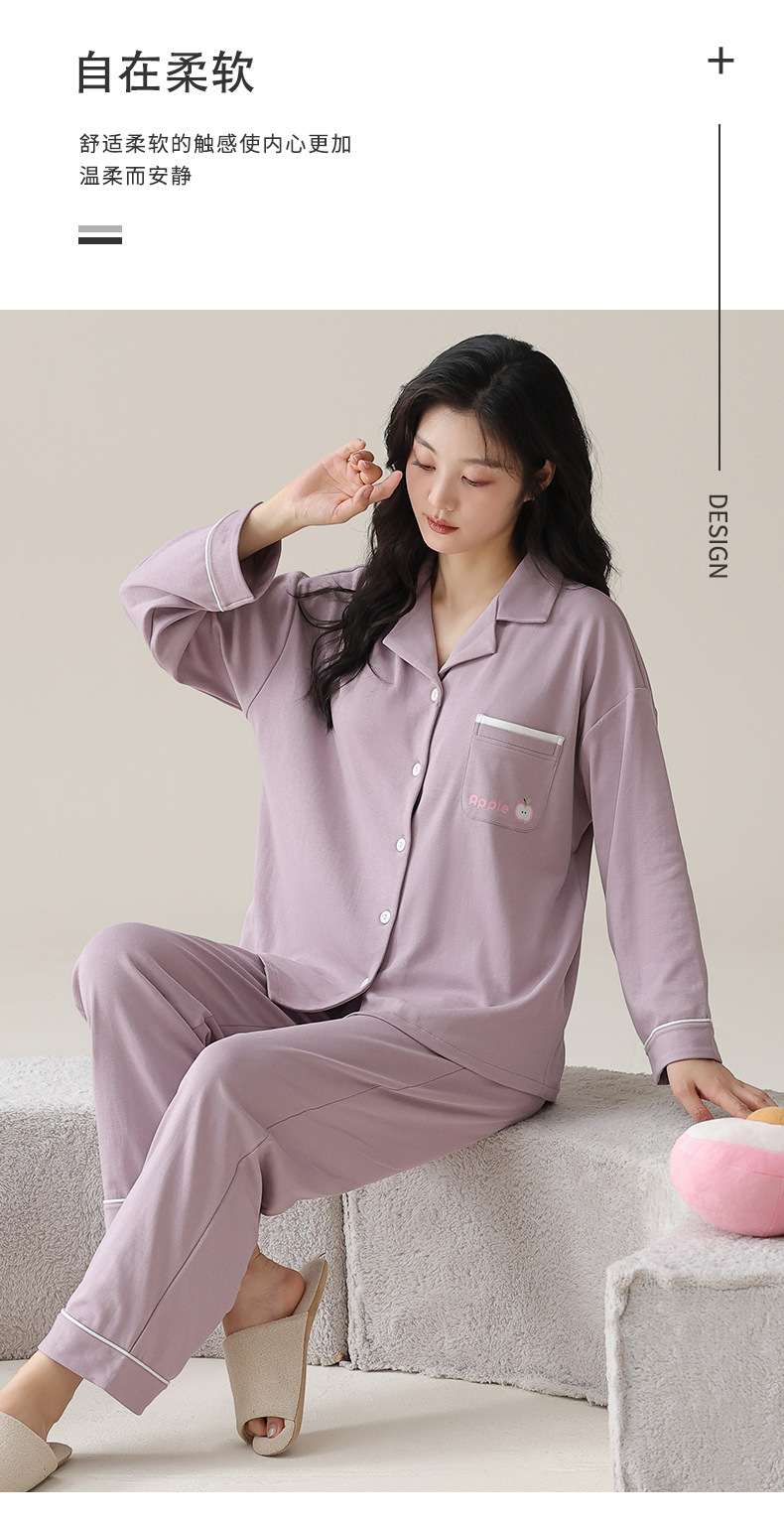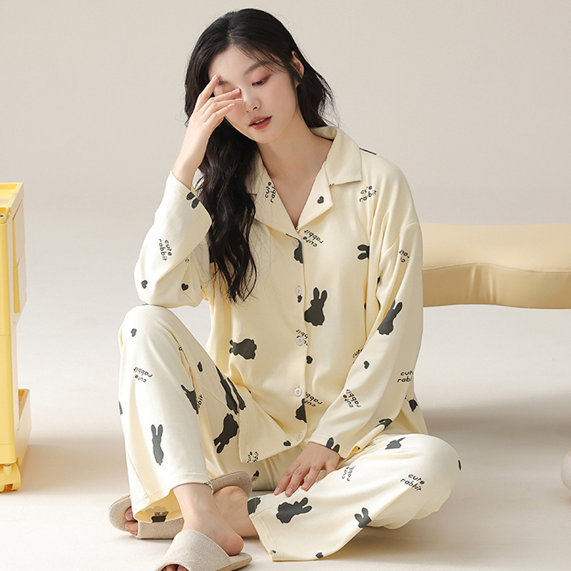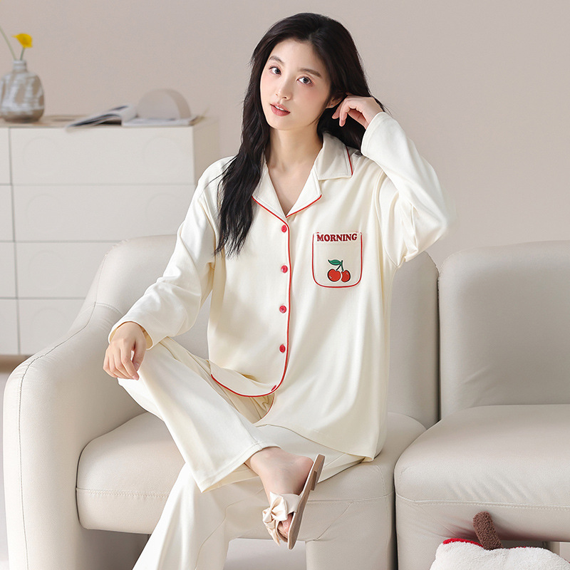 여성용 긴팔 순면 잠옷, 가을 겨울용 달콤한 카디건 스타일, 편안한 홈웨어, 외출복으로도 가능한 캐주얼 세트