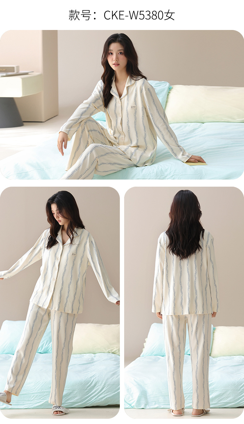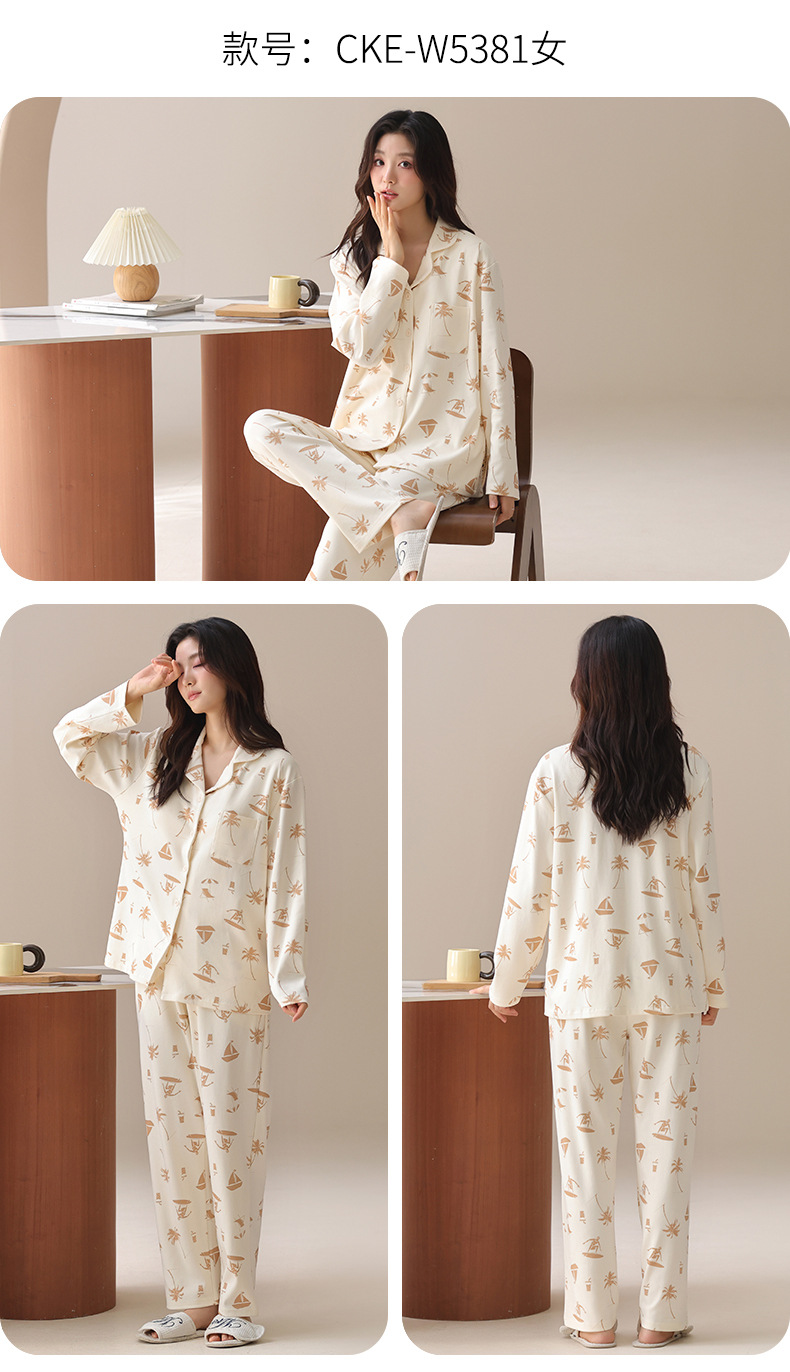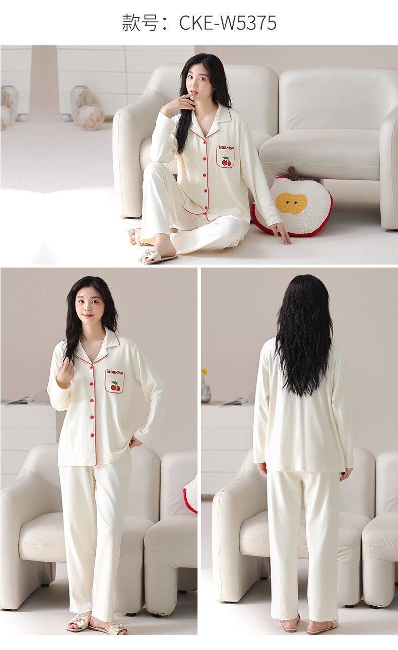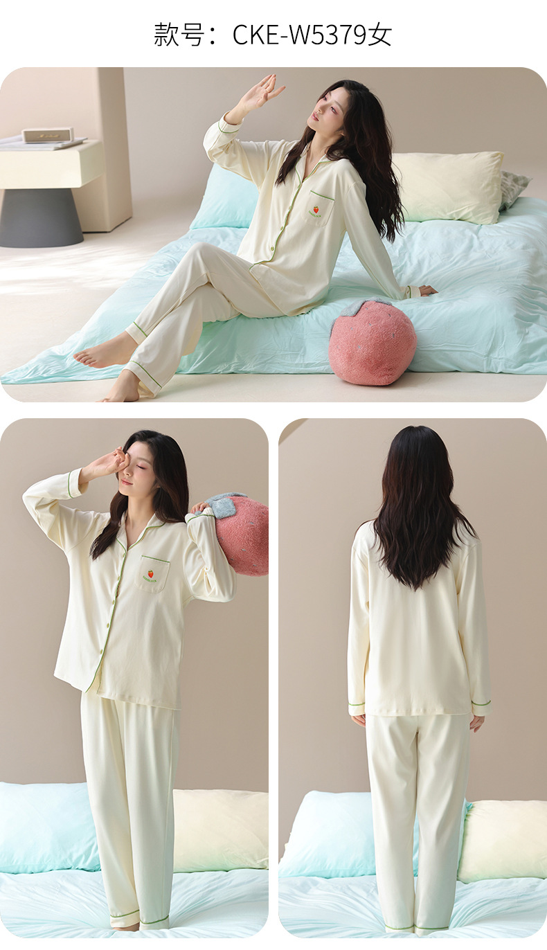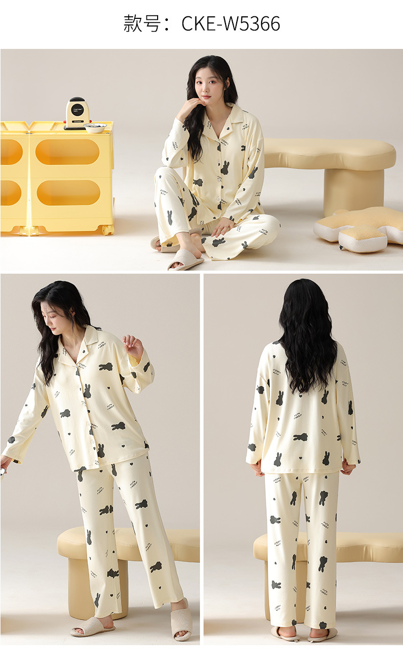 여성용 긴팔 순면 잠옷, 가을 겨울용 달콤한 카디건 스타일, 편안한 홈웨어, 외출복으로도 가능한 캐주얼 세트