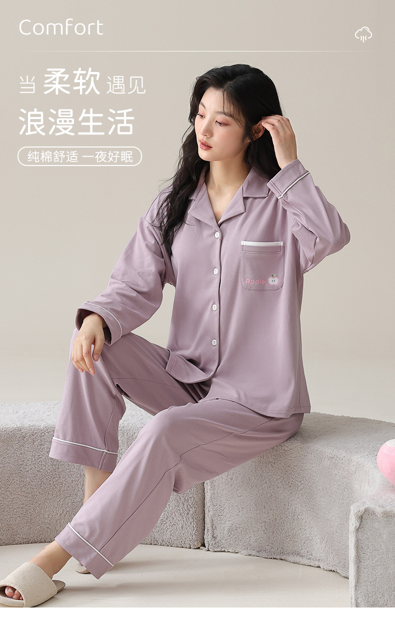 여성용 긴팔 순면 잠옷, 가을 겨울용 달콤한 카디건 스타일, 편안한 홈웨어, 외출복으로도 가능한 캐주얼 세트스토어 가기