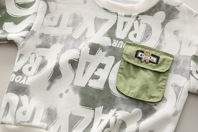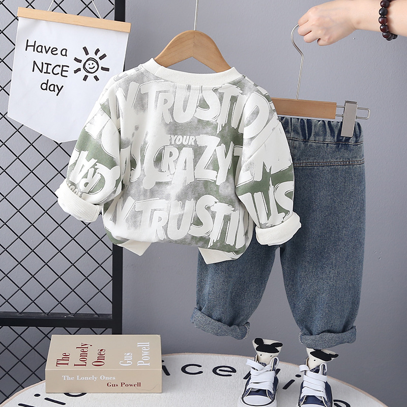 봄과 가을 세트 소녀 서양식 운동복 중소 어린이 소년 아기 긴팔 투피스 세트 염료 편지스토어 가기