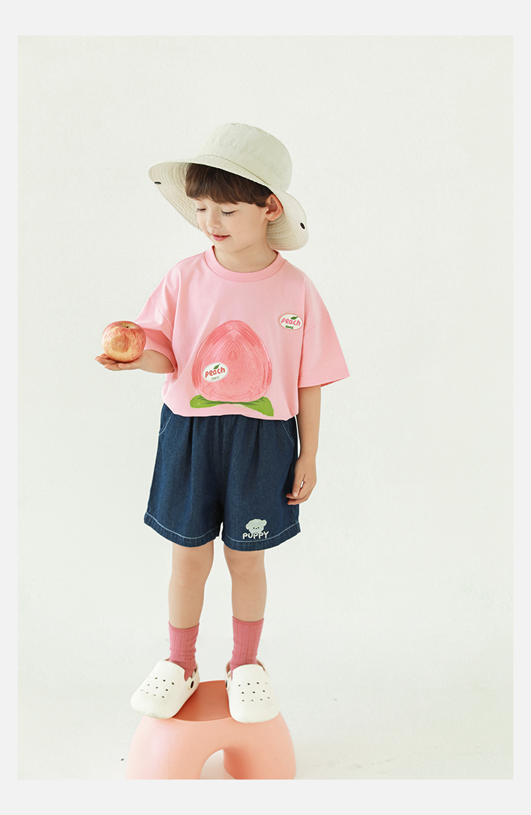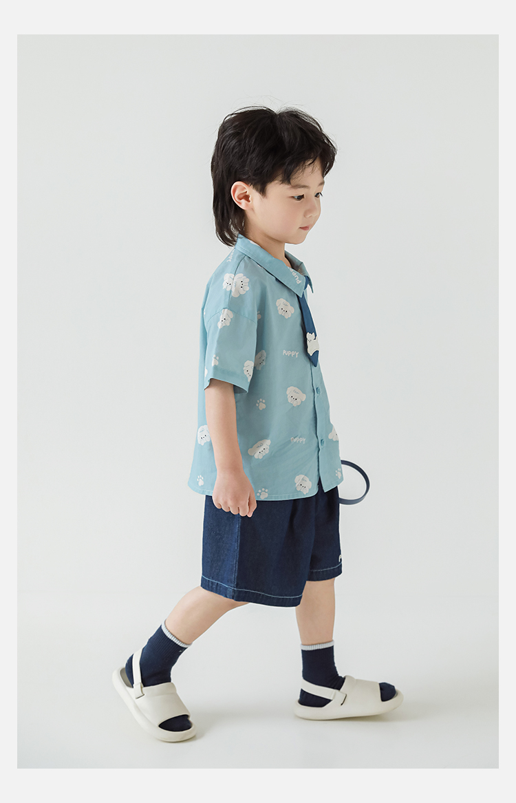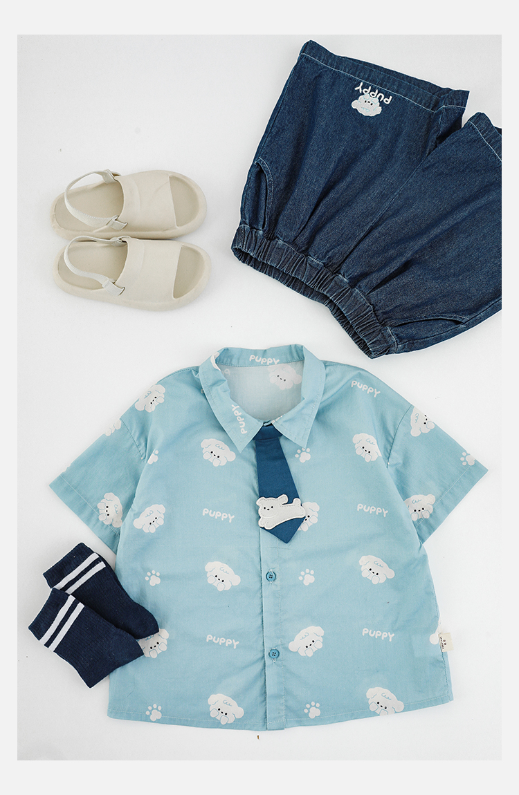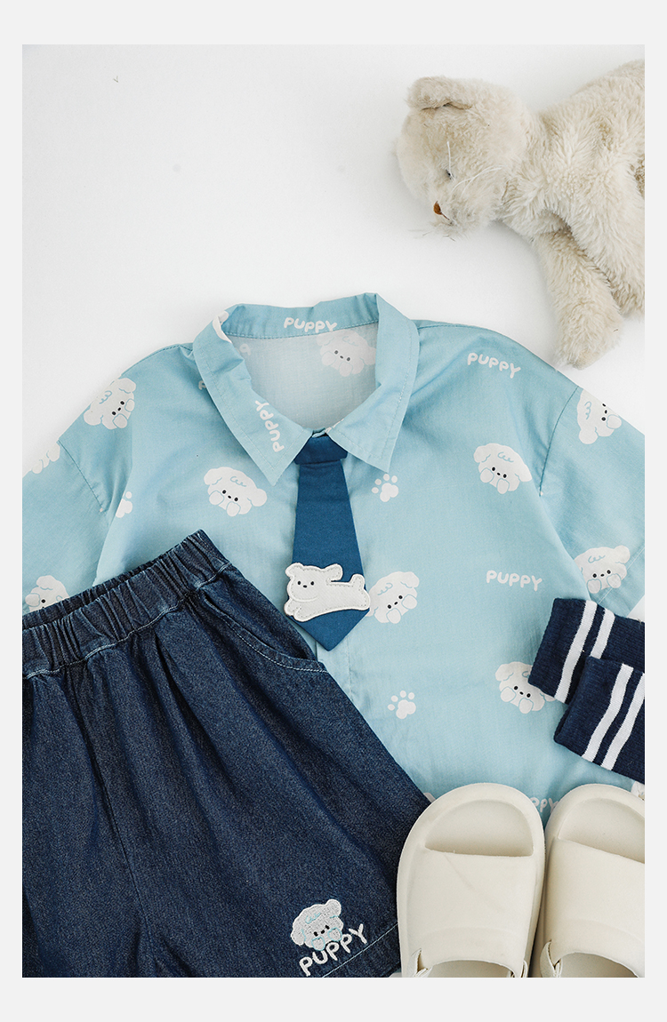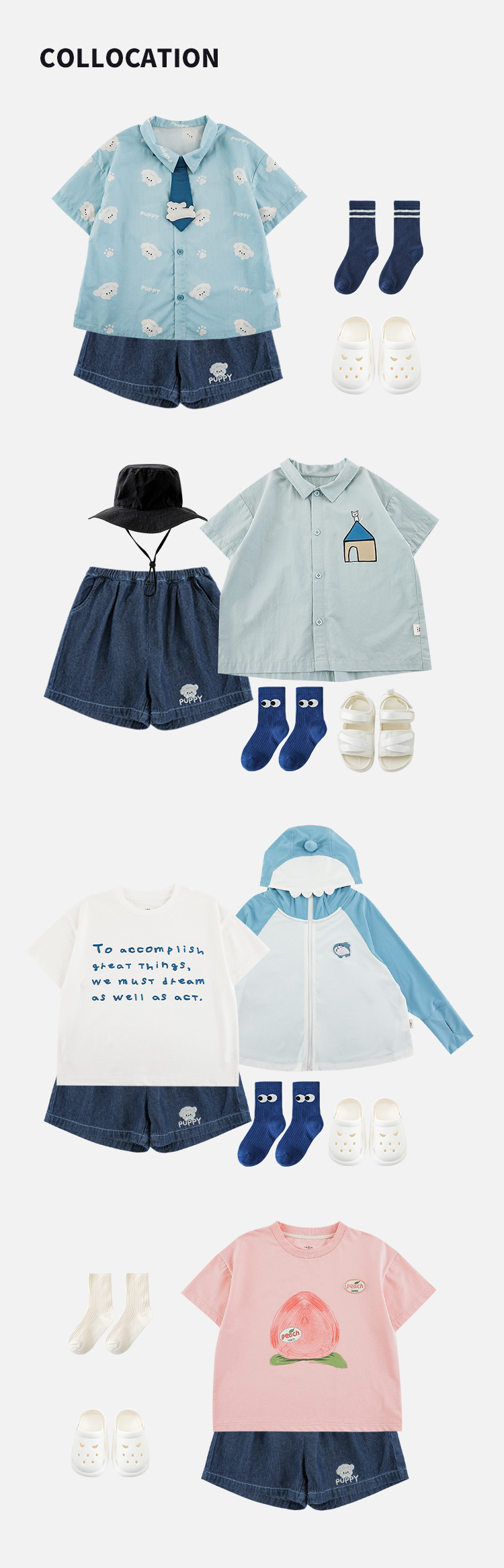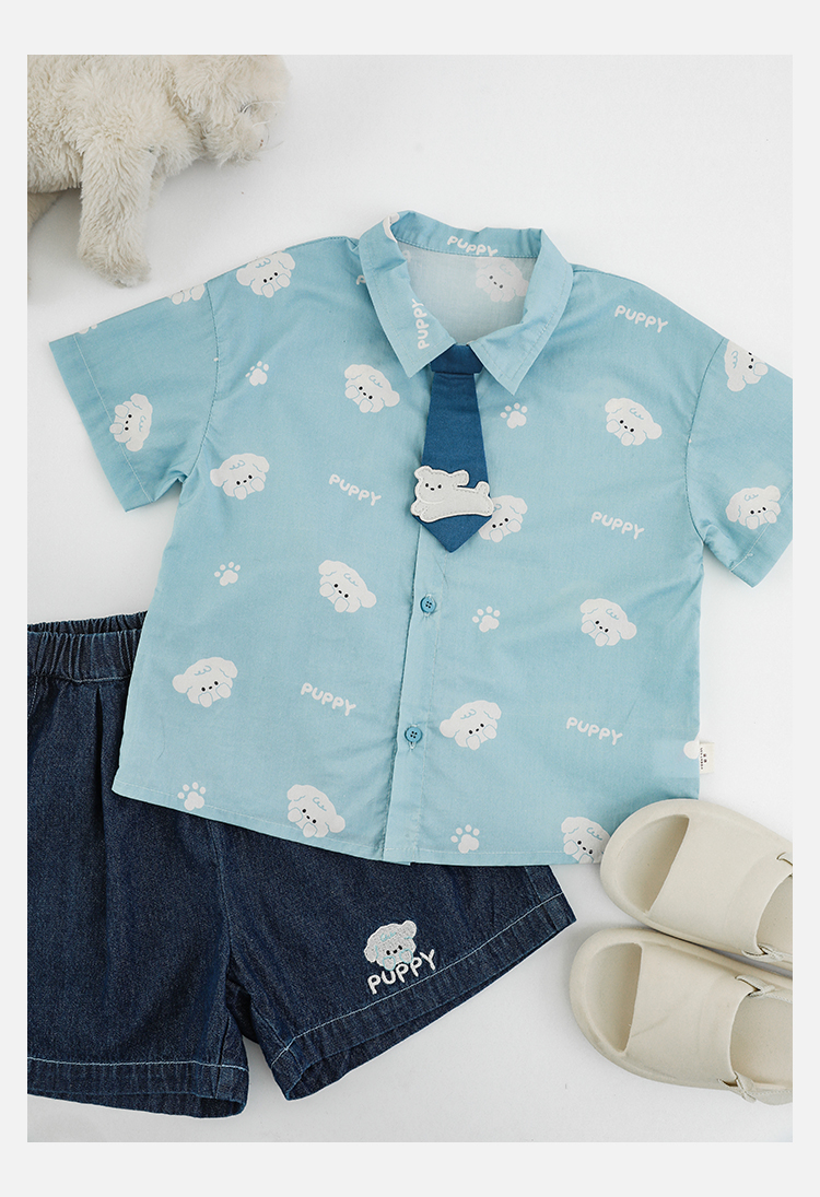 우립 소년 여름 새로운 만화 반팔 셔츠 캐주얼 느슨한 데님 반바지 어린이 트렌디 쿨 세트스토어 가기