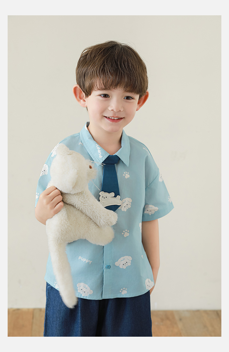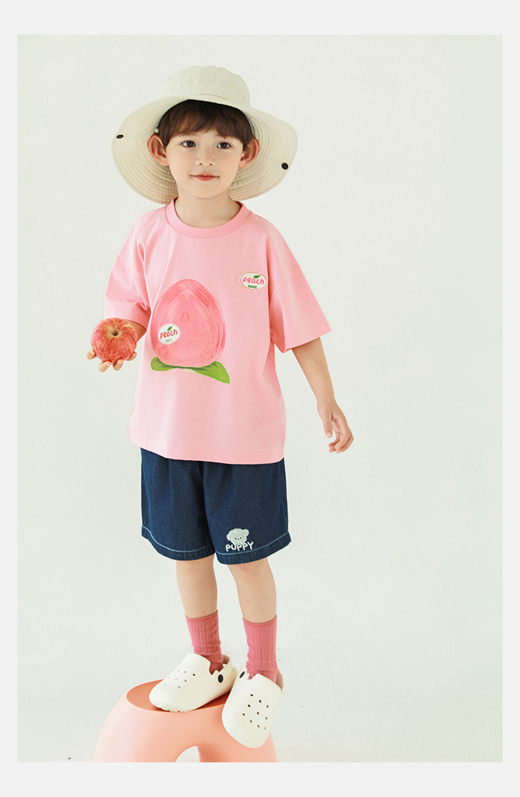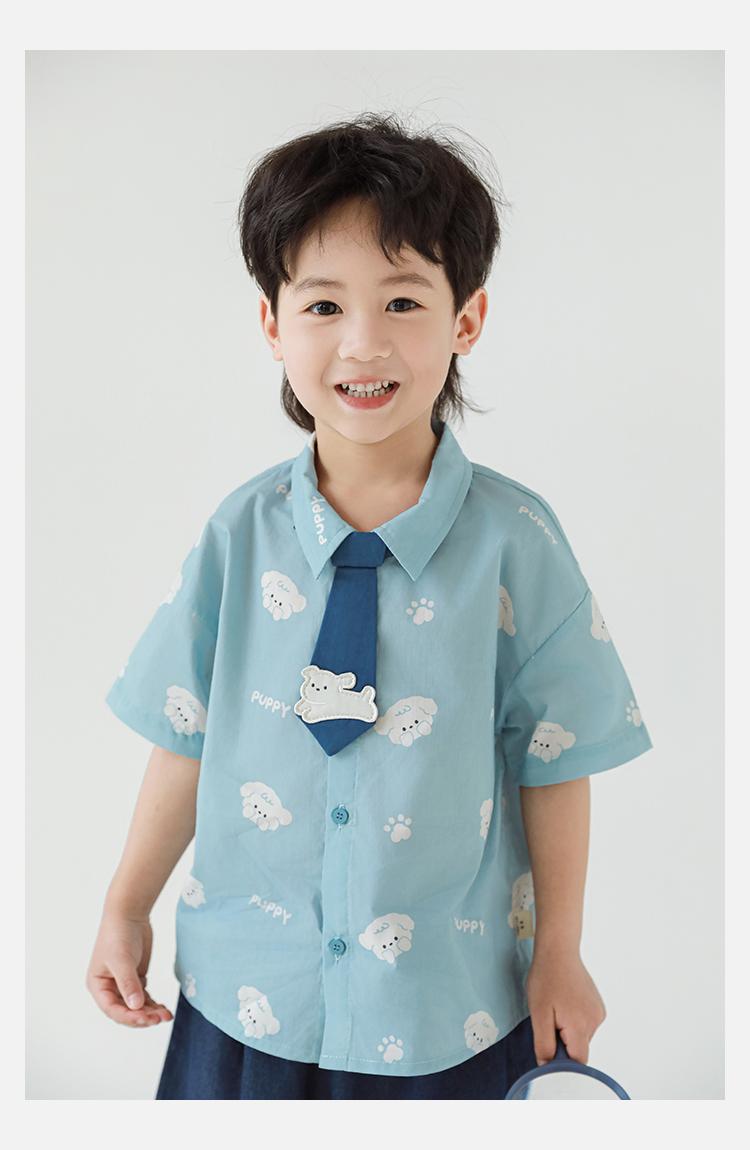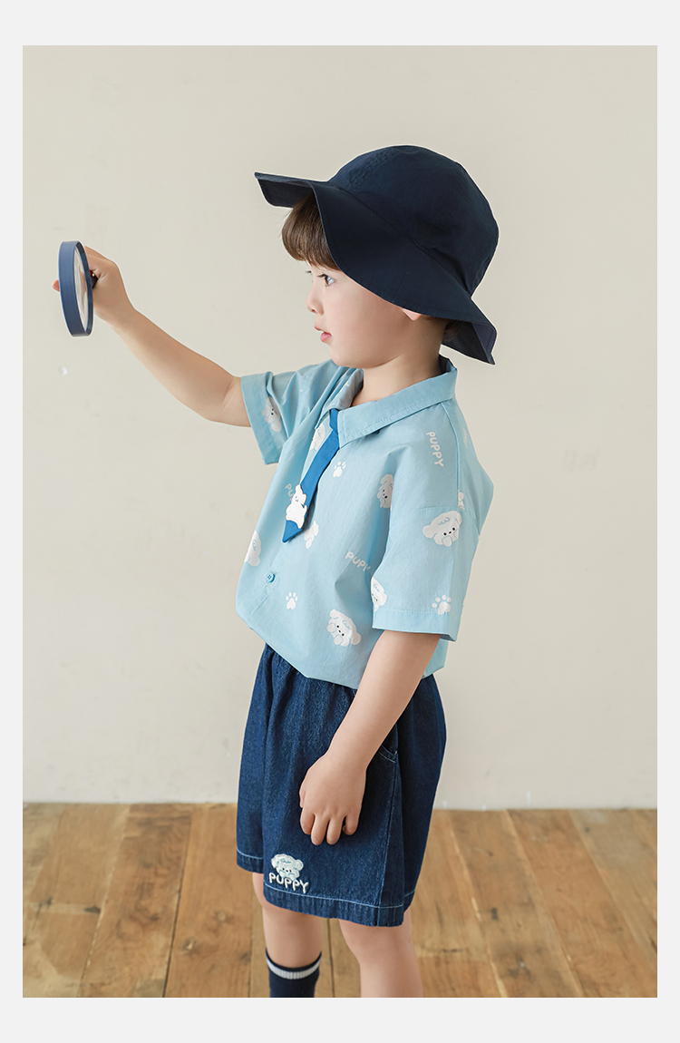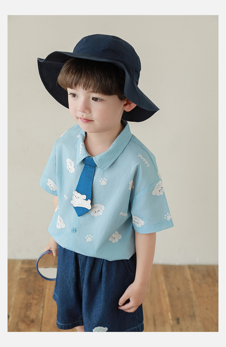 우립 소년 여름 새로운 만화 반팔 셔츠 캐주얼 느슨한 데님 반바지 어린이 트렌디 쿨 세트스토어 가기