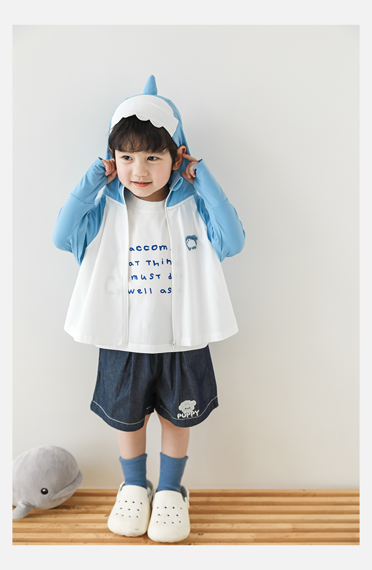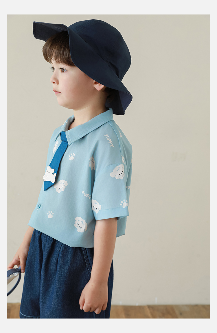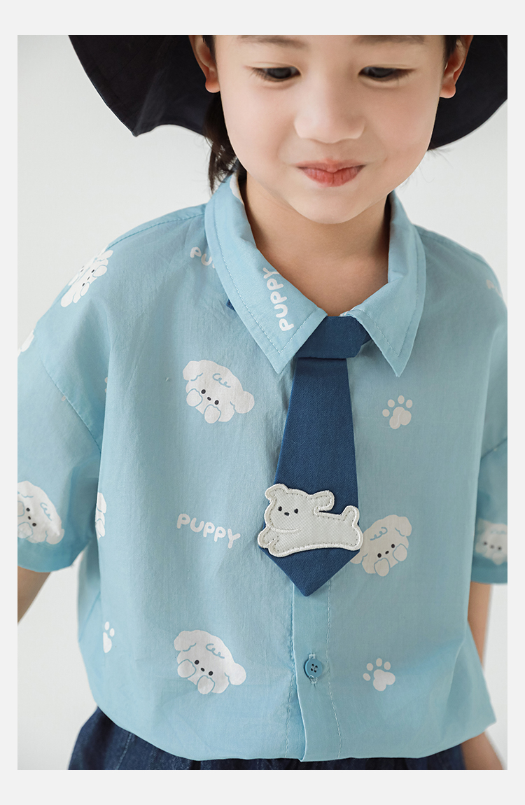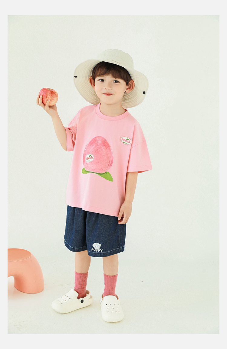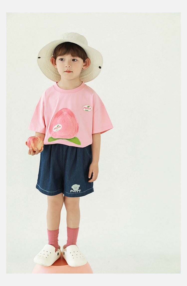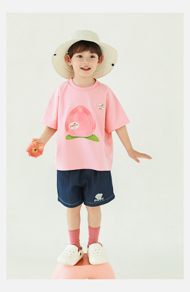 우립 소년 여름 새로운 만화 반팔 셔츠 캐주얼 느슨한 데님 반바지 어린이 트렌디 쿨 세트스토어 가기