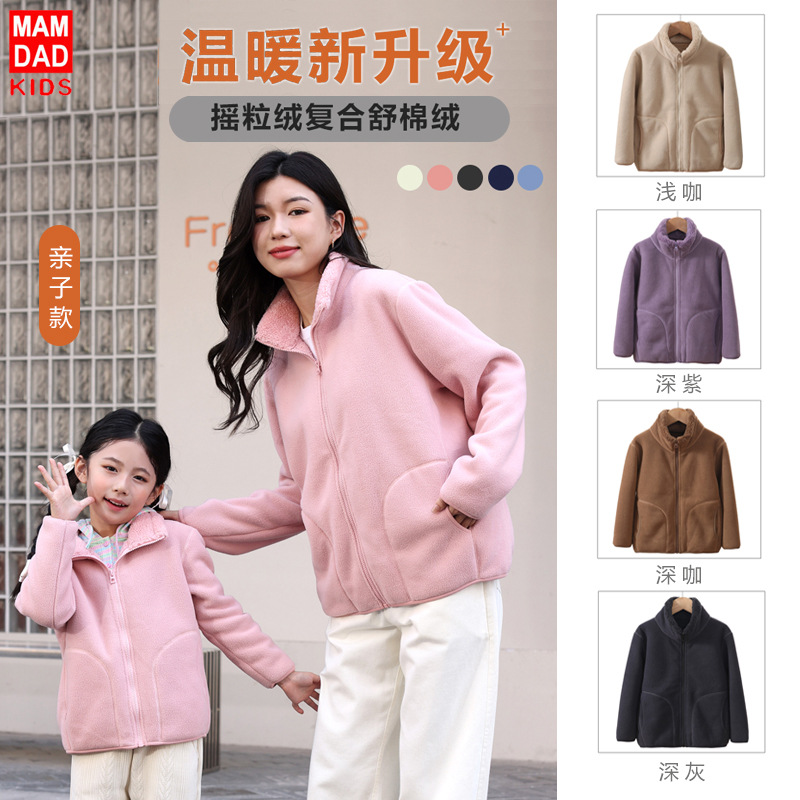 어린이 기모 두꺼운 코트 부모 스타일 중 큰 어린이 따뜻한 방풍 부모-어린이 스타일 수직 칼라 따뜻한 코트 작은 코튼 코트스토어 가기
