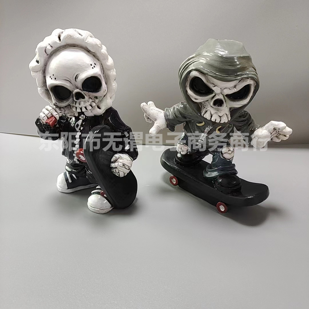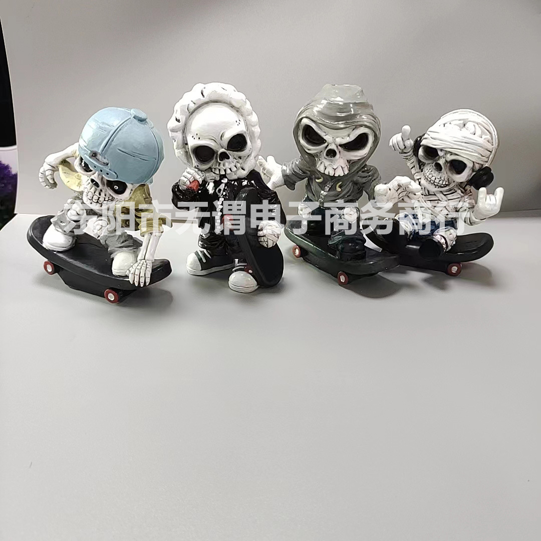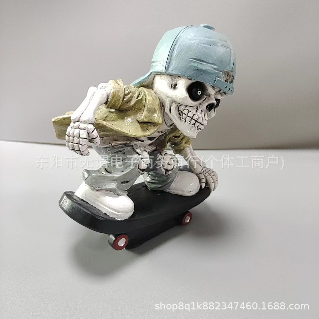 국경 간 새로운 할로윈 스케이트 보드 유행 해골 인형 장식품 창조적 인 수지 공예 장식품 데스크탑 장식