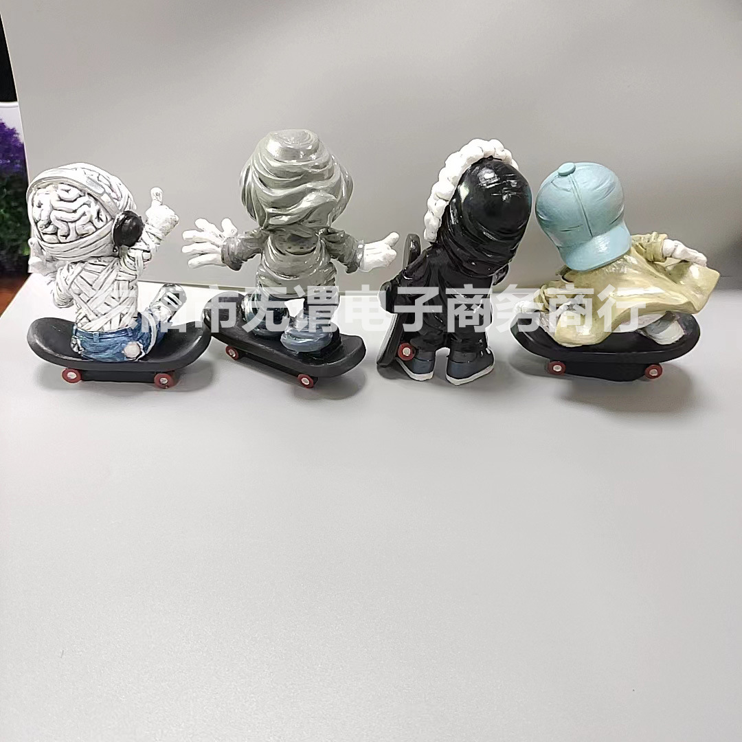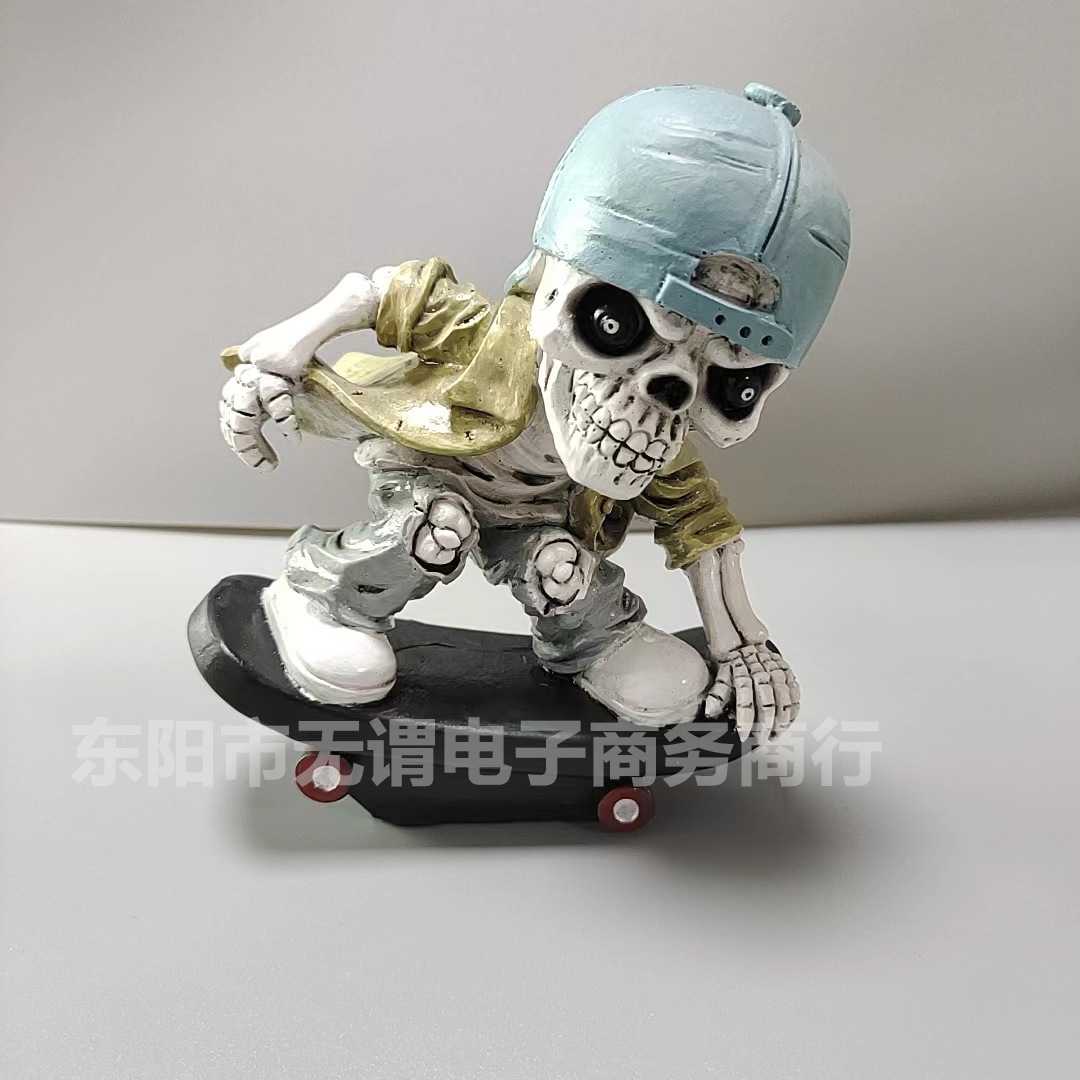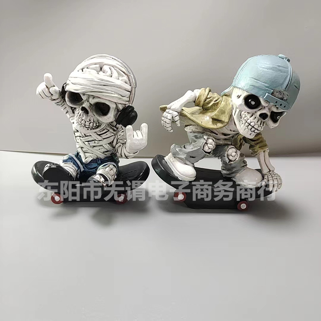 국경 간 새로운 할로윈 스케이트 보드 유행 해골 인형 장식품 창조적 인 수지 공예 장식품 데스크탑 장식