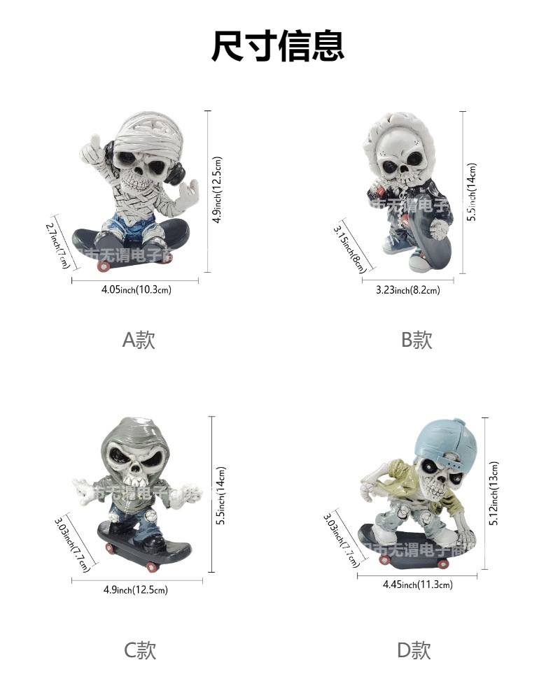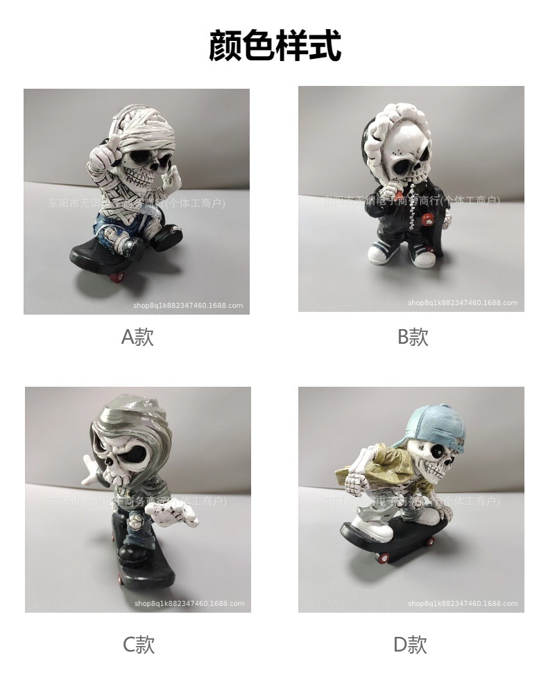 국경 간 새로운 할로윈 스케이트 보드 유행 해골 인형 장식품 창조적 인 수지 공예 장식품 데스크탑 장식스토어 가기