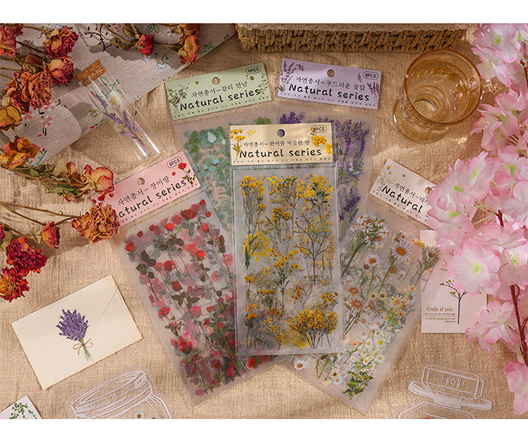 레트로 꽃 스티커 높은 색상 가치 시뮬레이션 말린 꽃 창조적 인 스티커 어린이 DIY 구오 카드 손 계정 재료 스티커스토어 가기