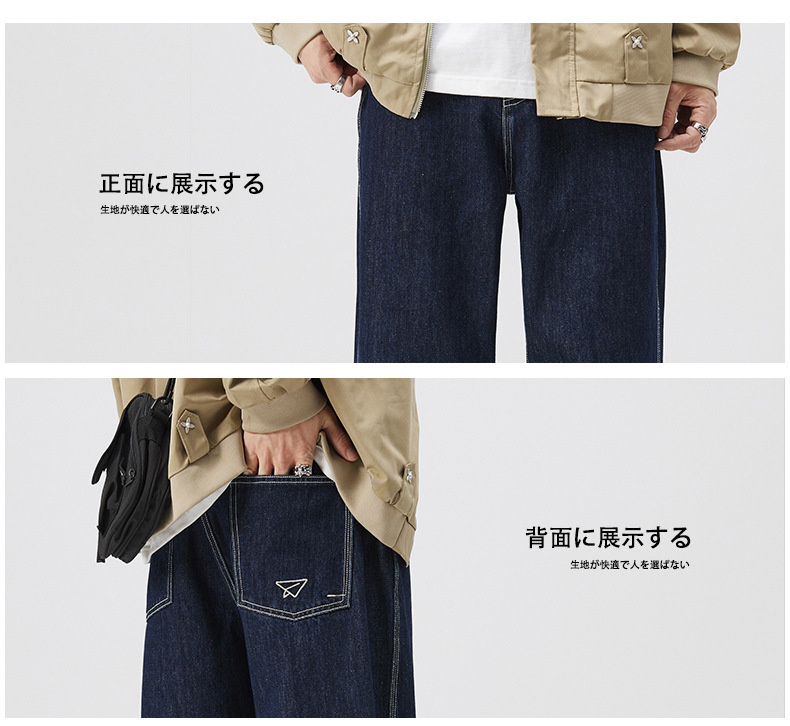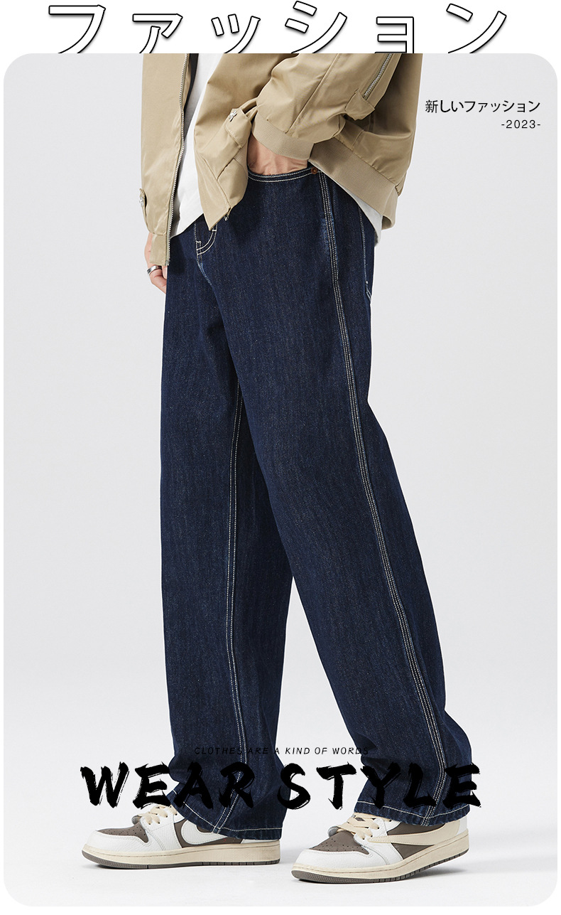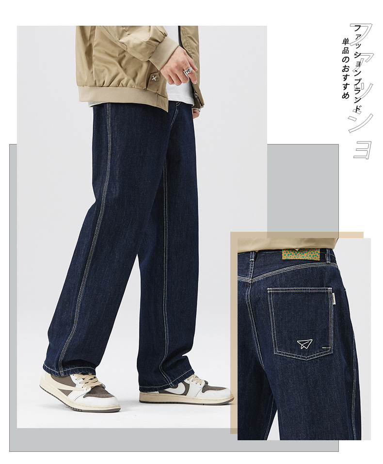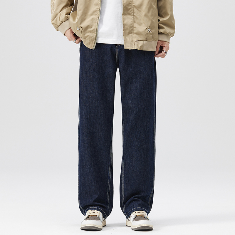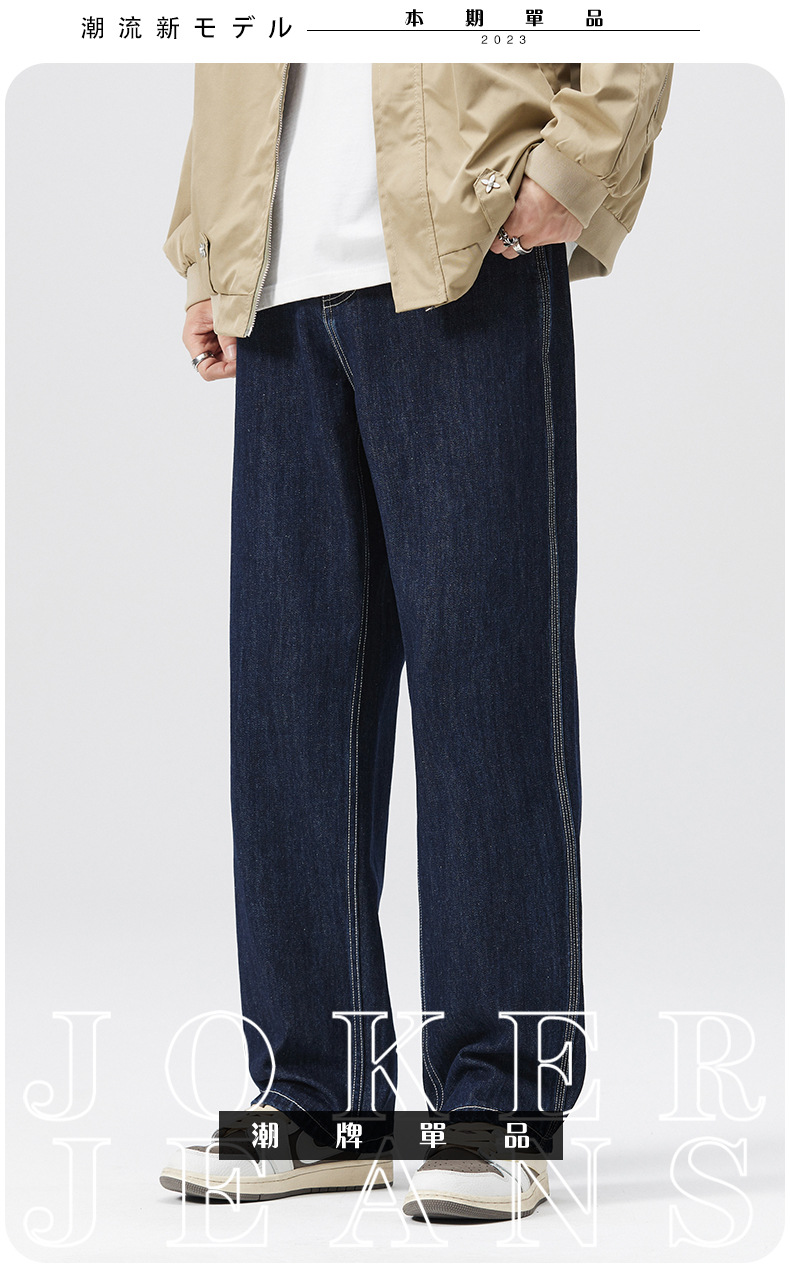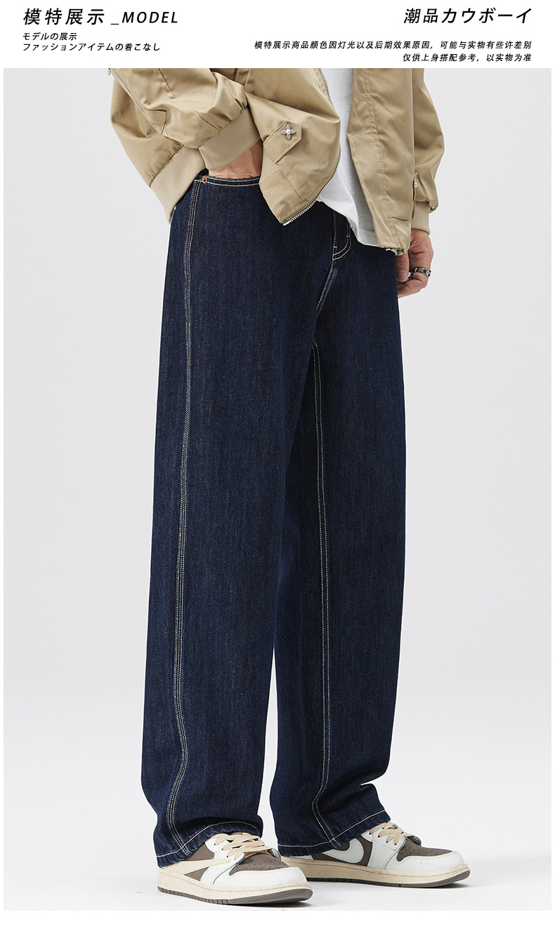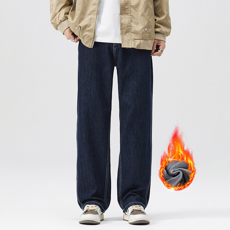남성용 청바지 트렌디 캐주얼 와이드 팬츠 가을 겨울 신상 기모 워싱 하이스트리트 스타일 바지스토어 가기