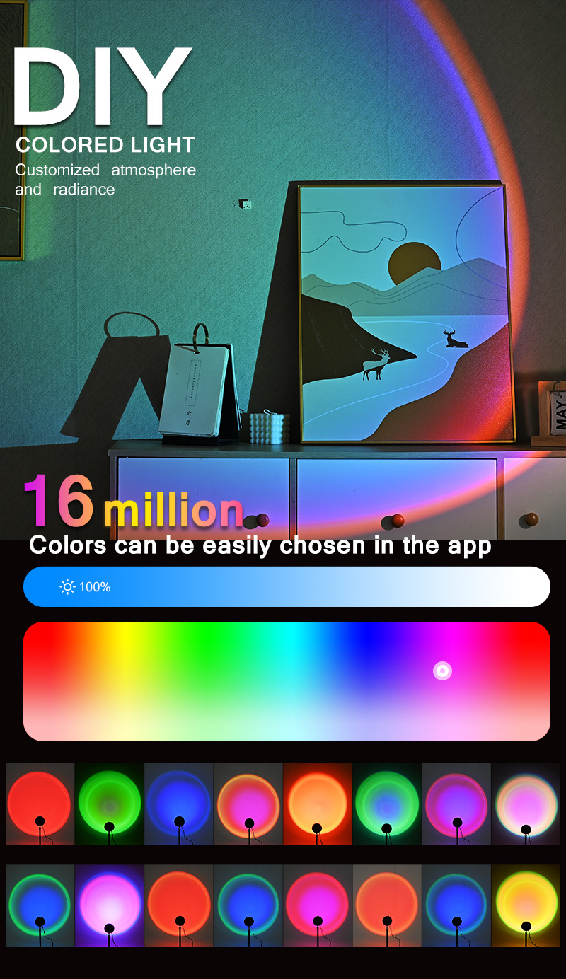 일몰 램프 일몰 램프 국경 간 도매 RGB 16 색 침실 분위기 램프 다채로운 프로젝션 램프 야간 조명 인터넷 연예인 모델