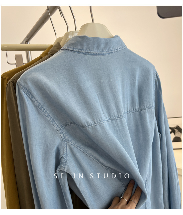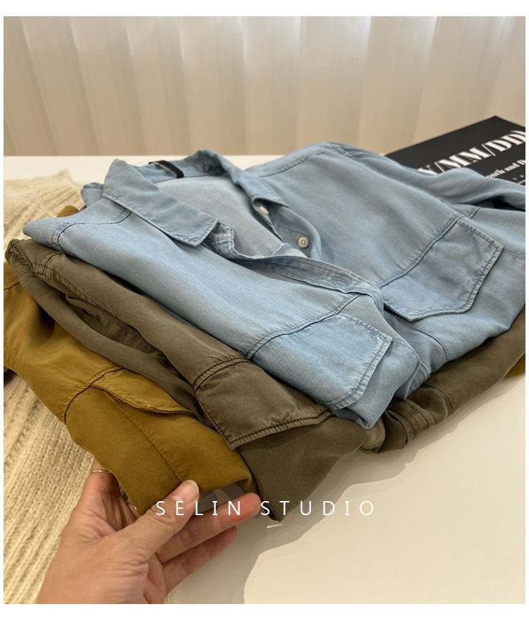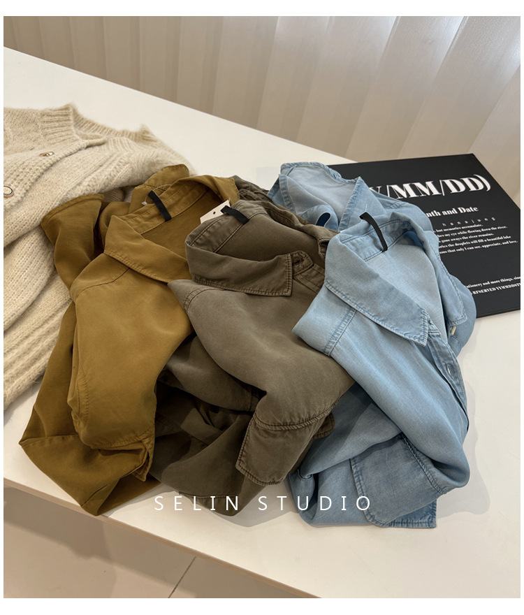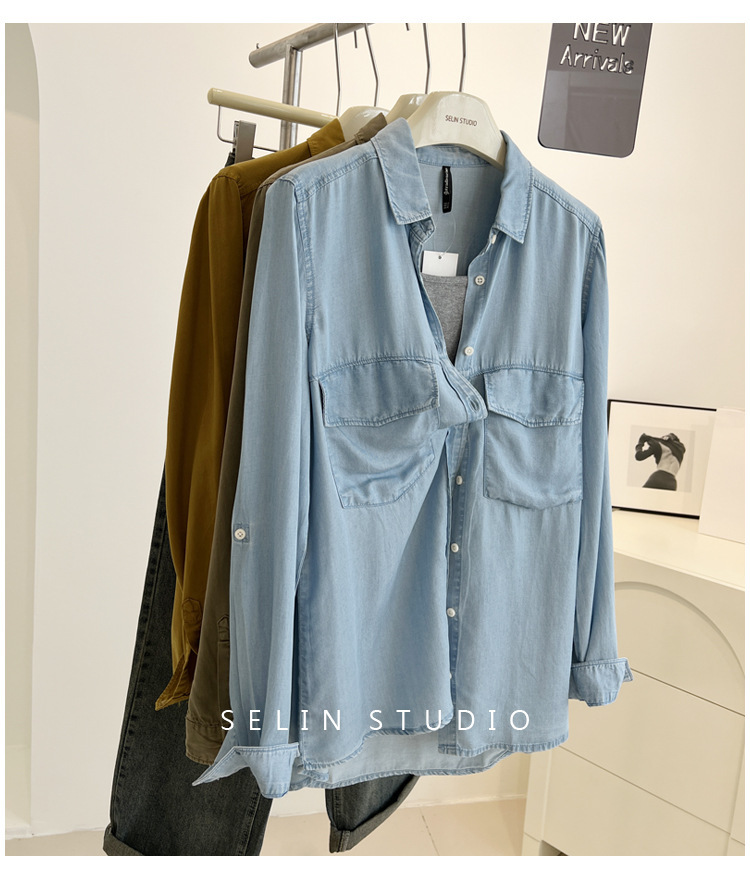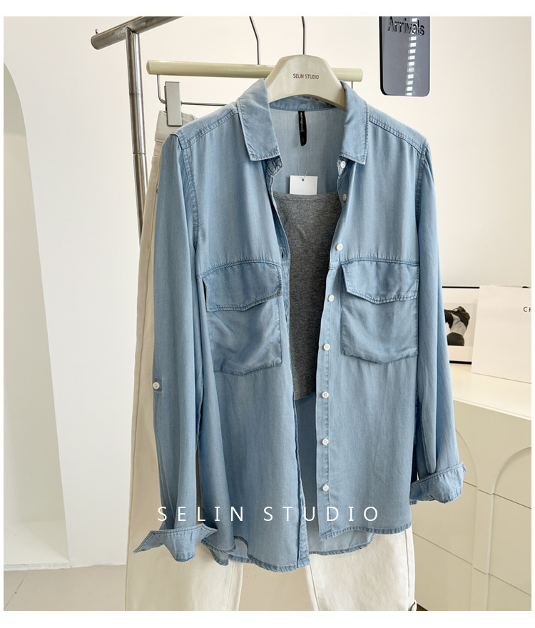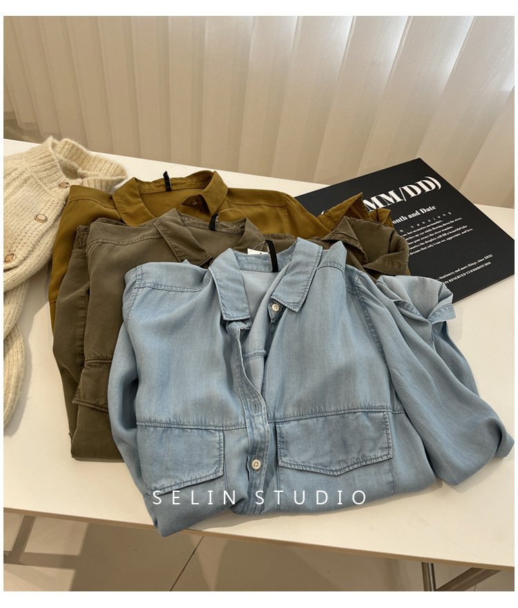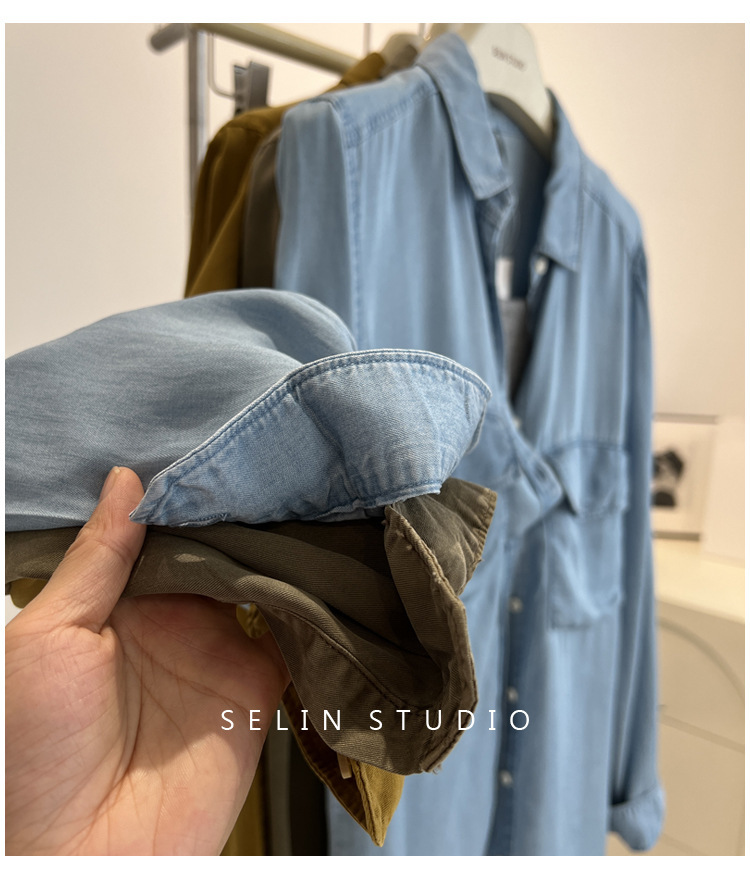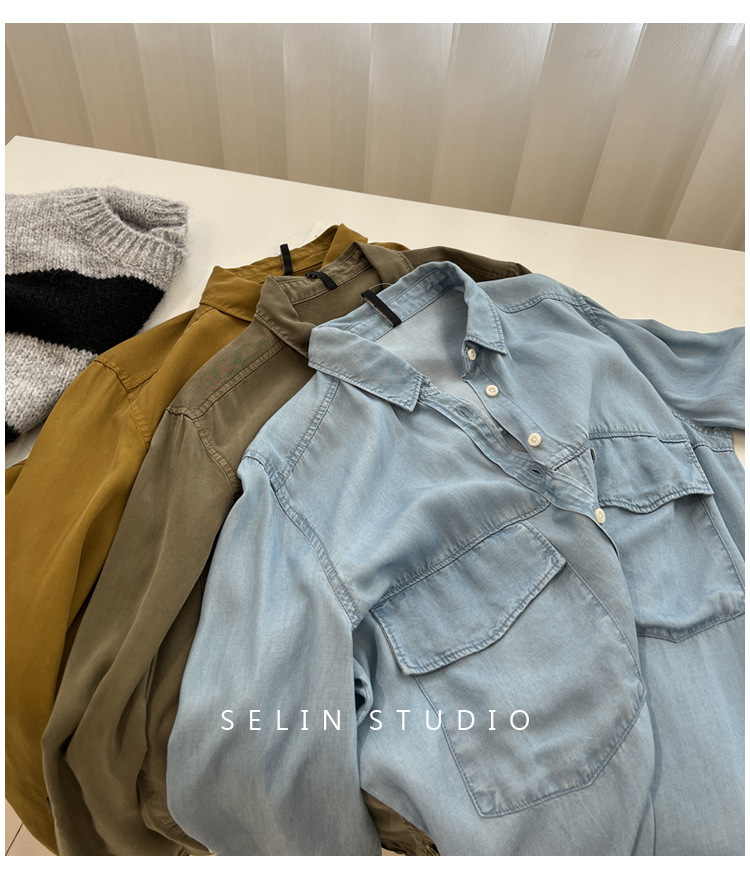빈티지 조커 텐셀 데님 셔츠 여성용 느슨한 게으른 슬리밍 긴 소매 셔츠 2023 가을 새로운스토어 가기