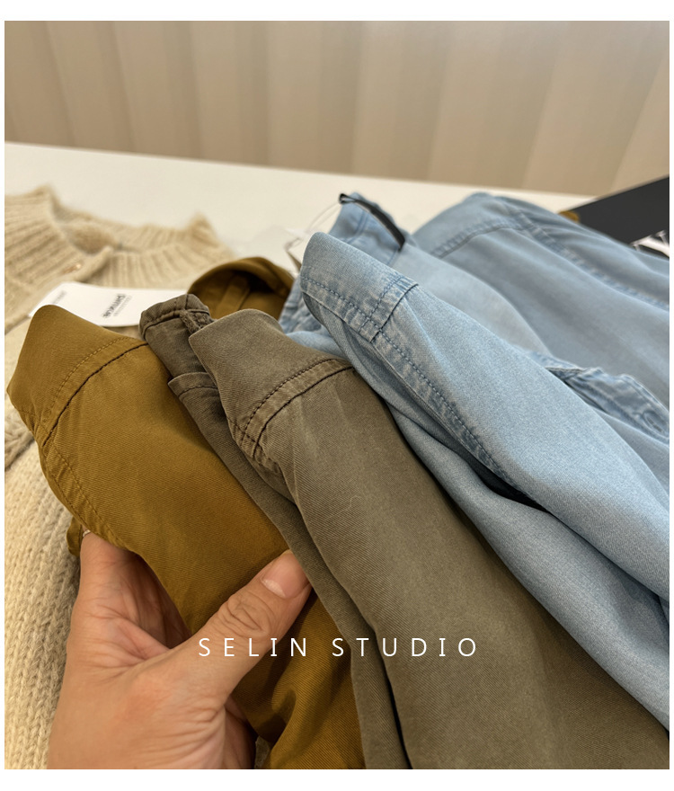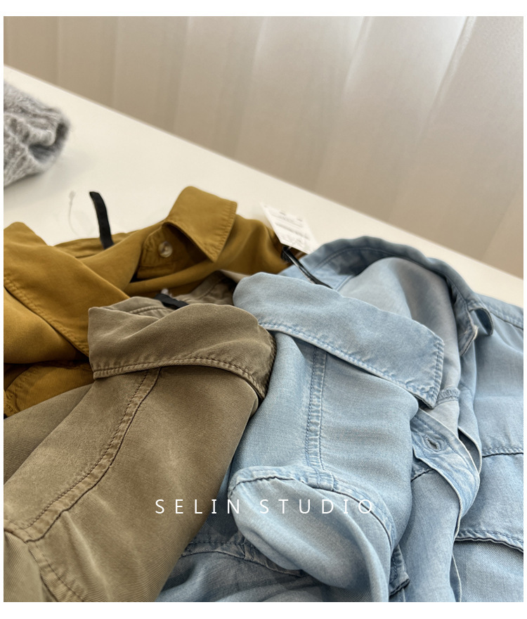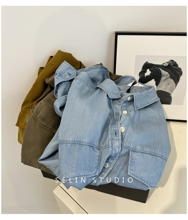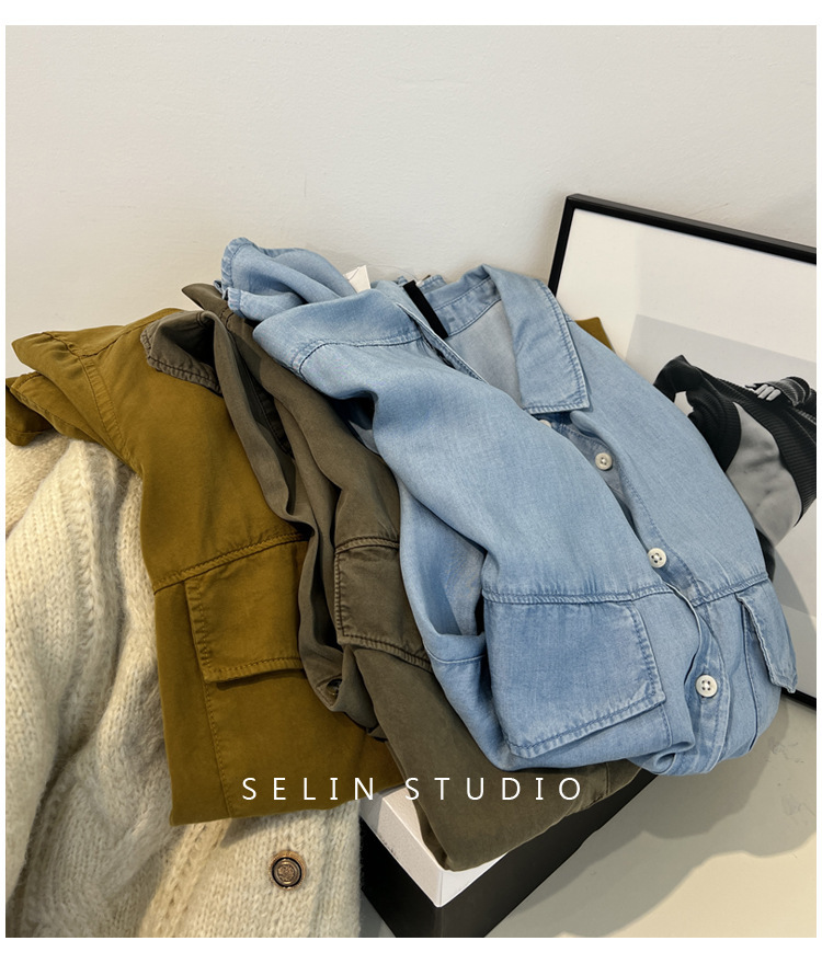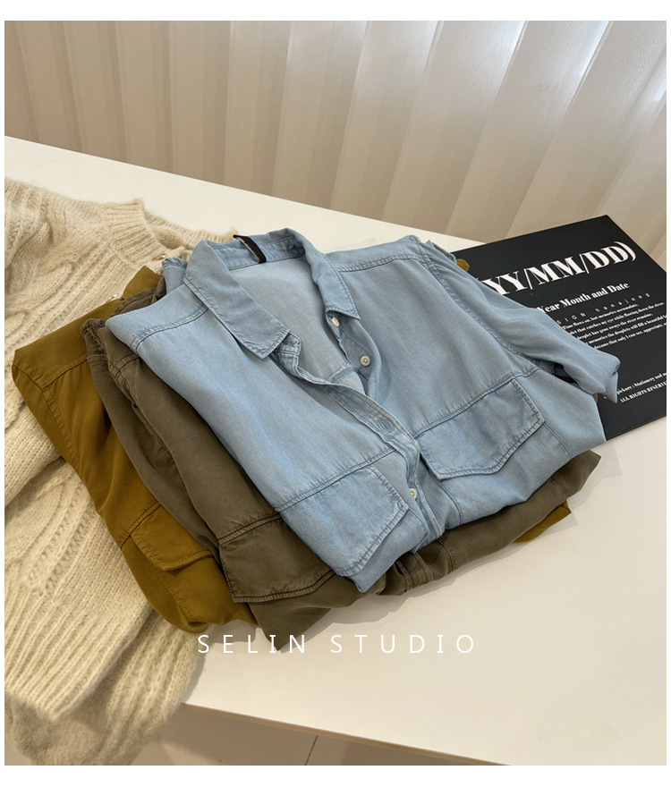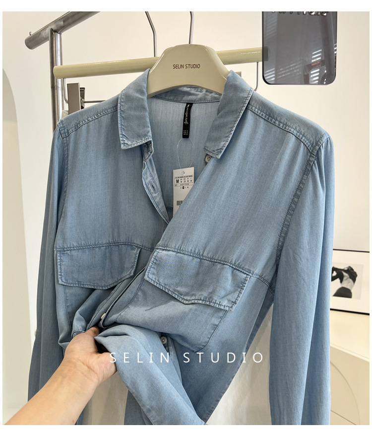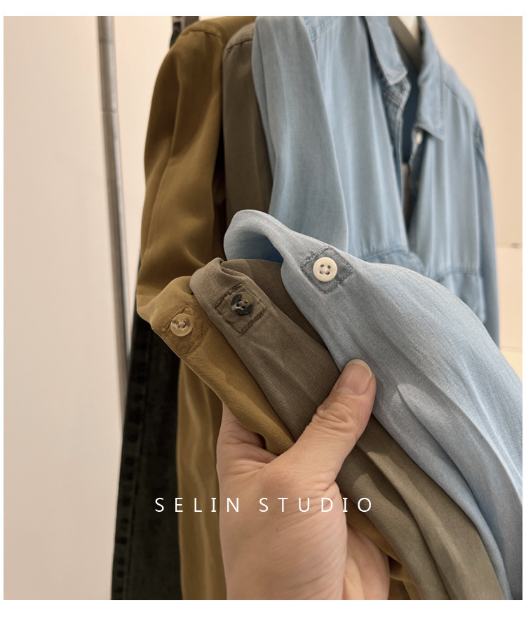 빈티지 조커 텐셀 데님 셔츠 여성용 느슨한 게으른 슬리밍 긴 소매 셔츠 2023 가을 새로운스토어 가기