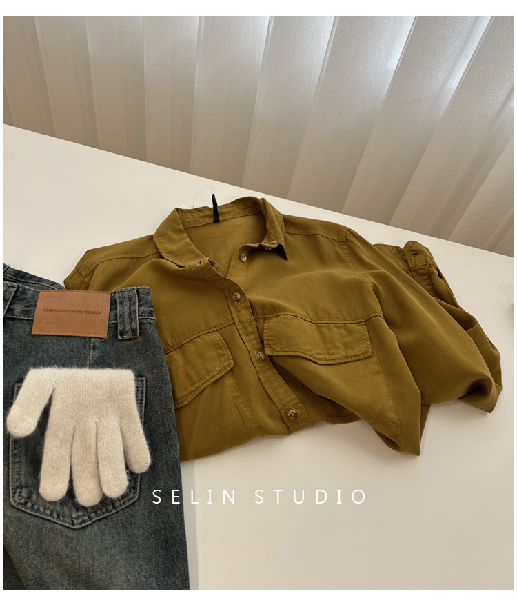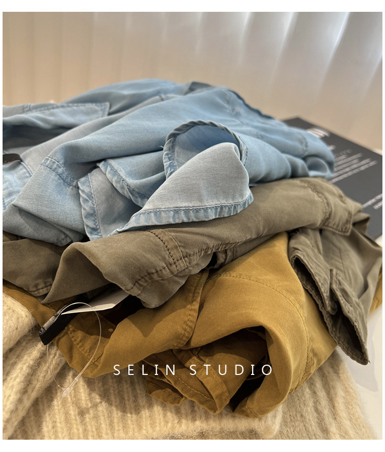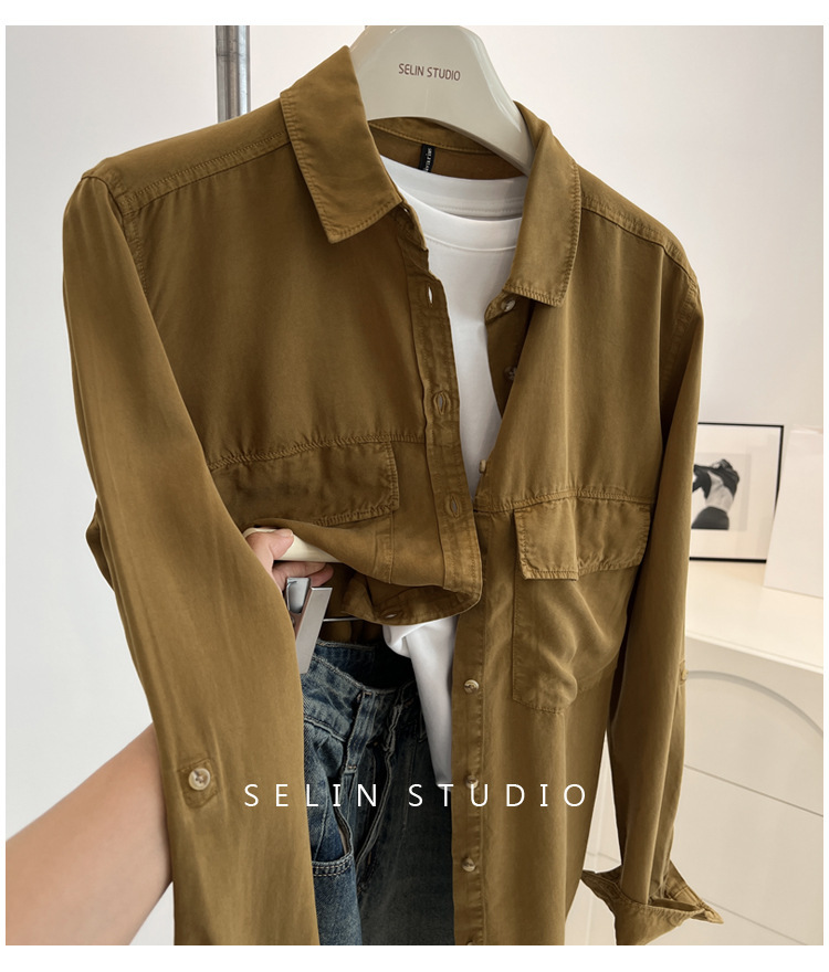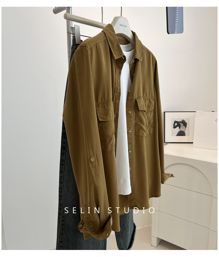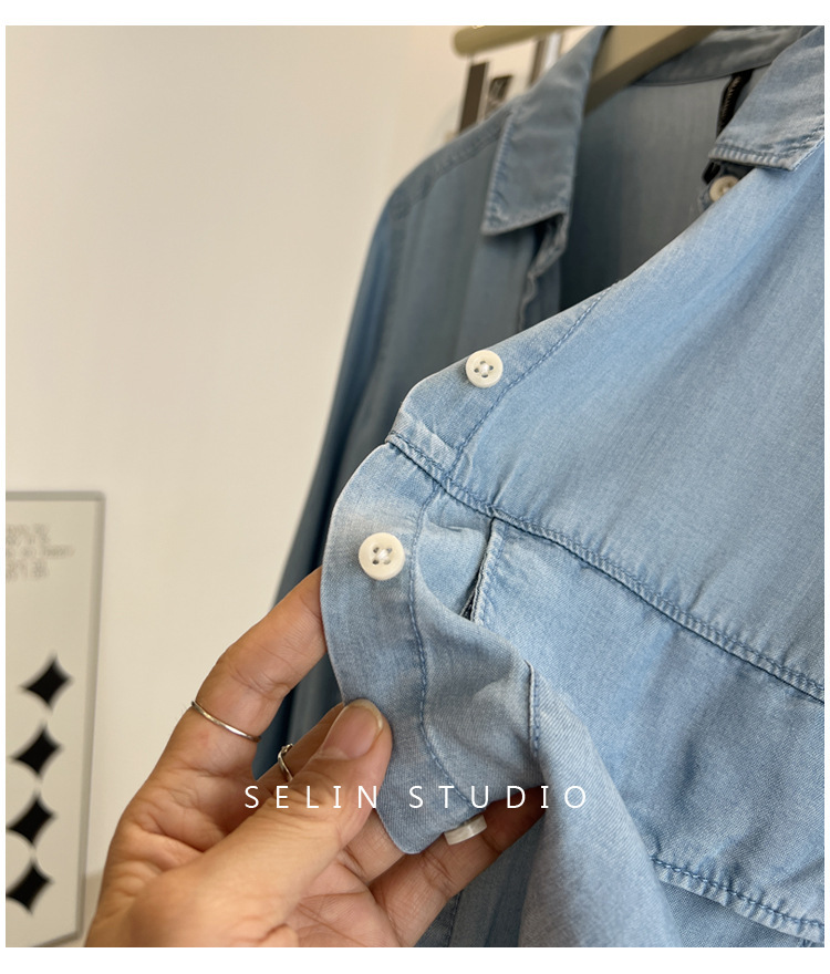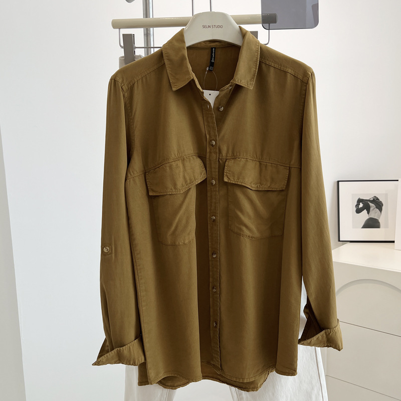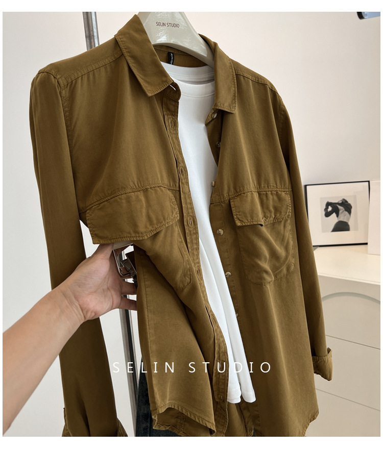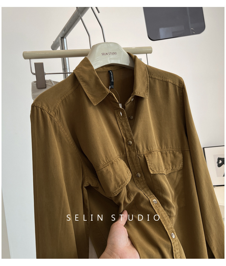빈티지 조커 텐셀 데님 셔츠 여성용 느슨한 게으른 슬리밍 긴 소매 셔츠 2023 가을 새로운스토어 가기