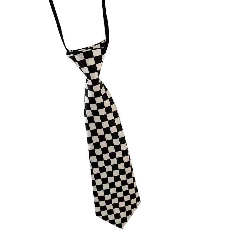 INS 스타일 성격 JK Girls 'College Chessboard 흑백 격자 무늬 쿨 패셔너블 셔츠 매듭-프리 타이 올 매치 타이