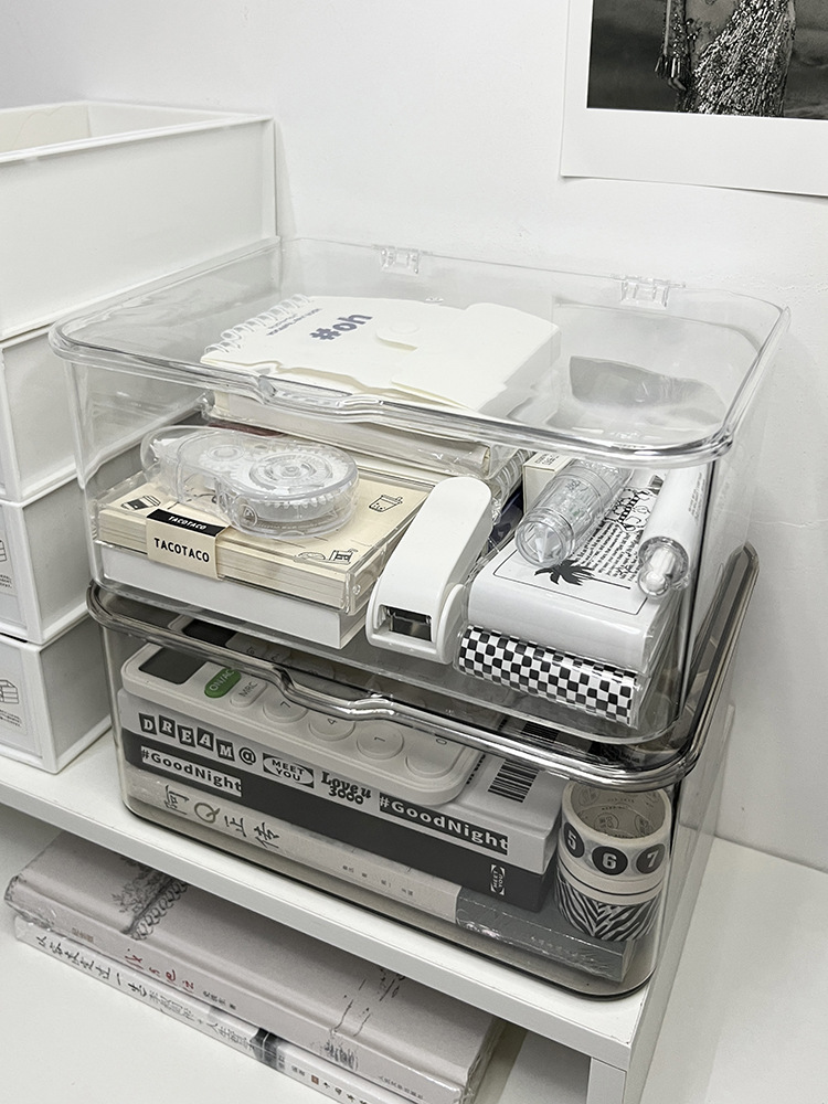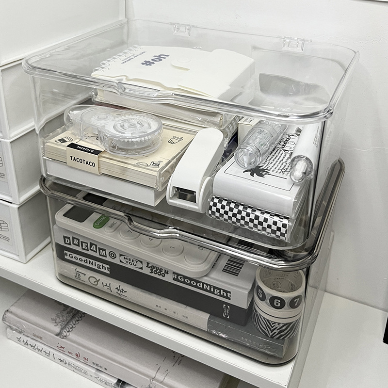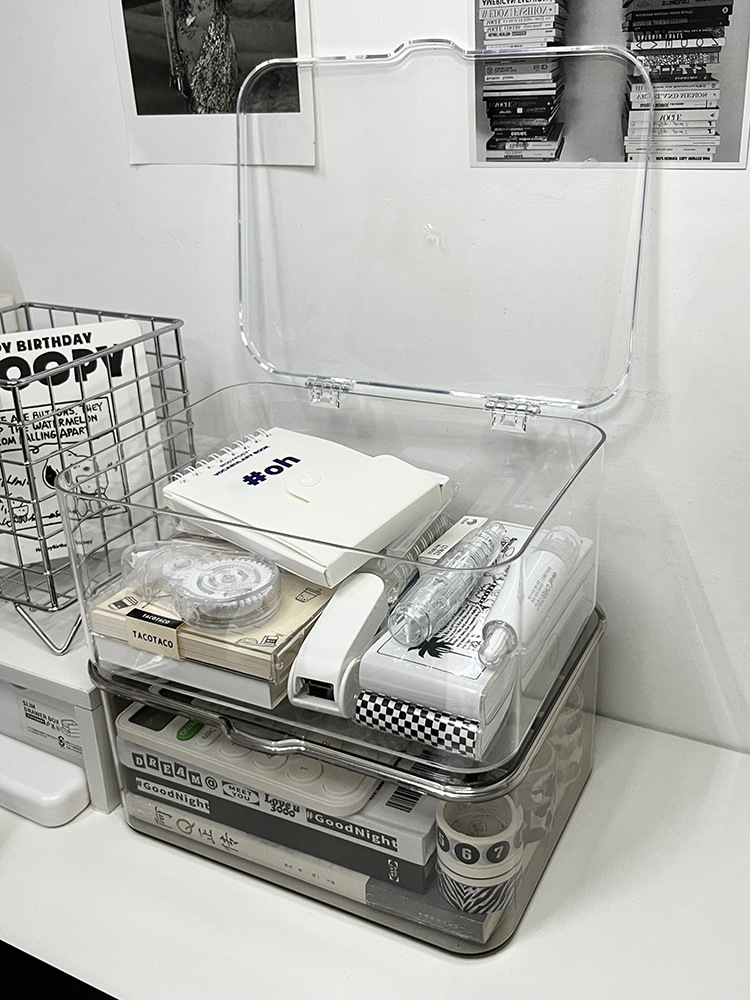 데스크탑 대용량 저장 상자 문구 사무실 학생 기숙사 적합 상자 투명 책상 보관 선반스토어 가기