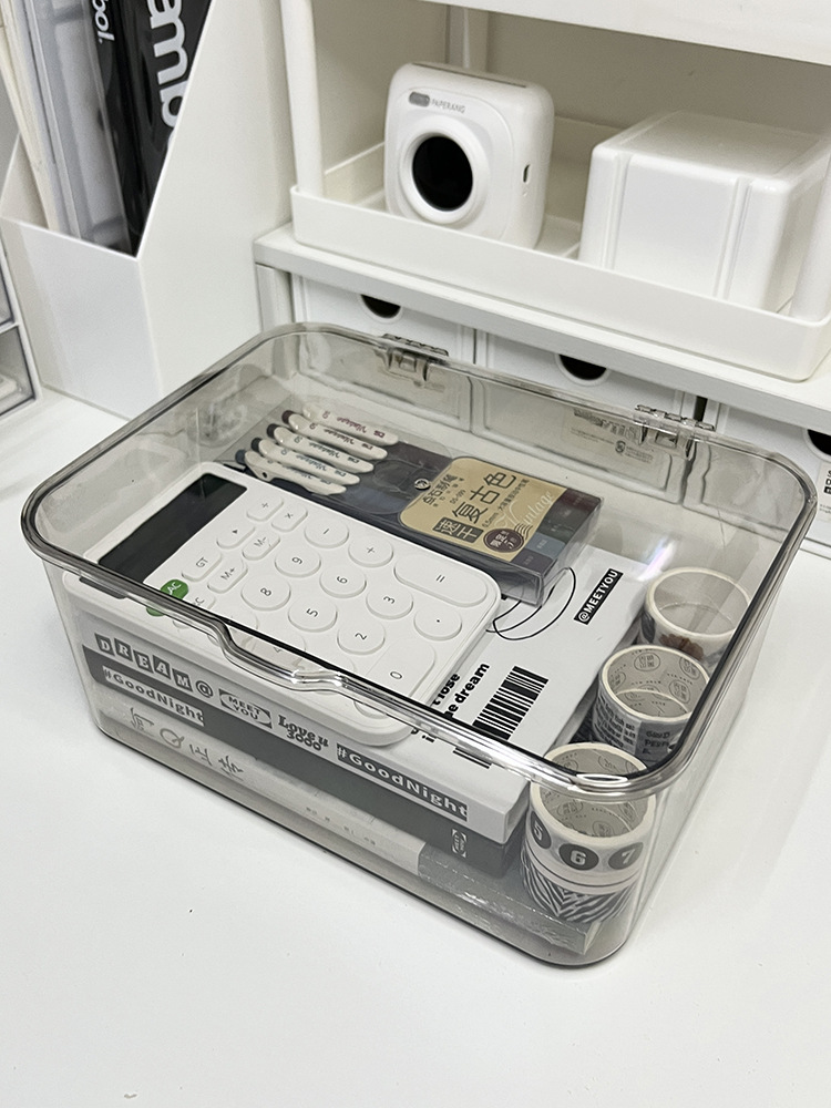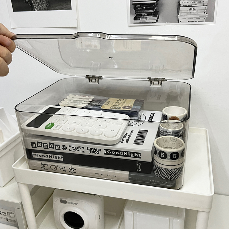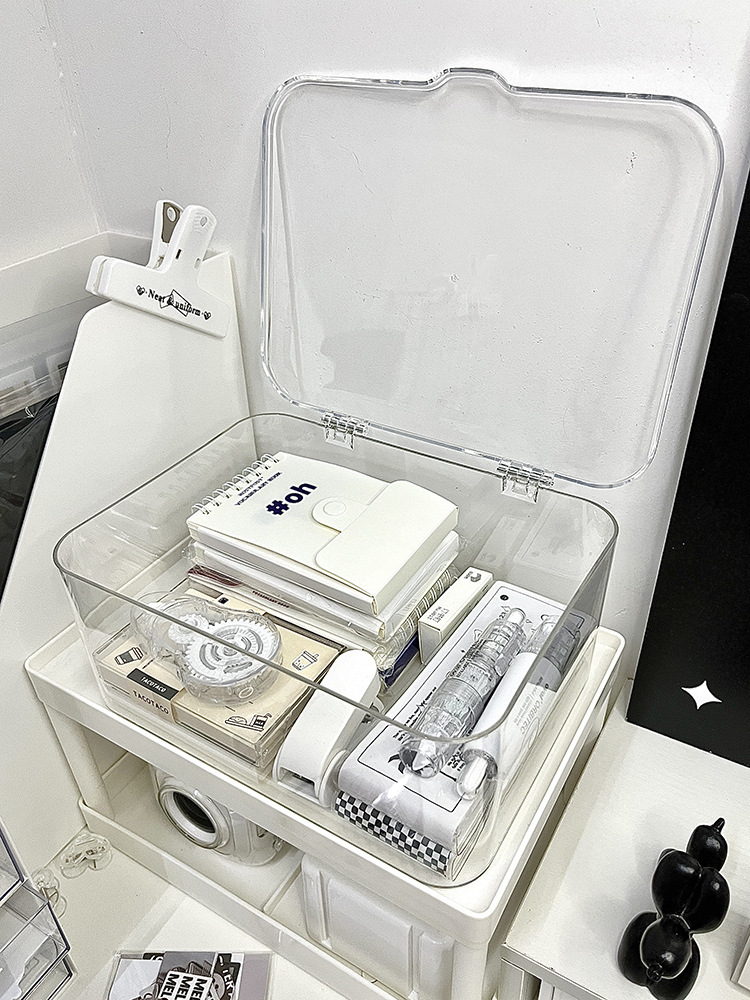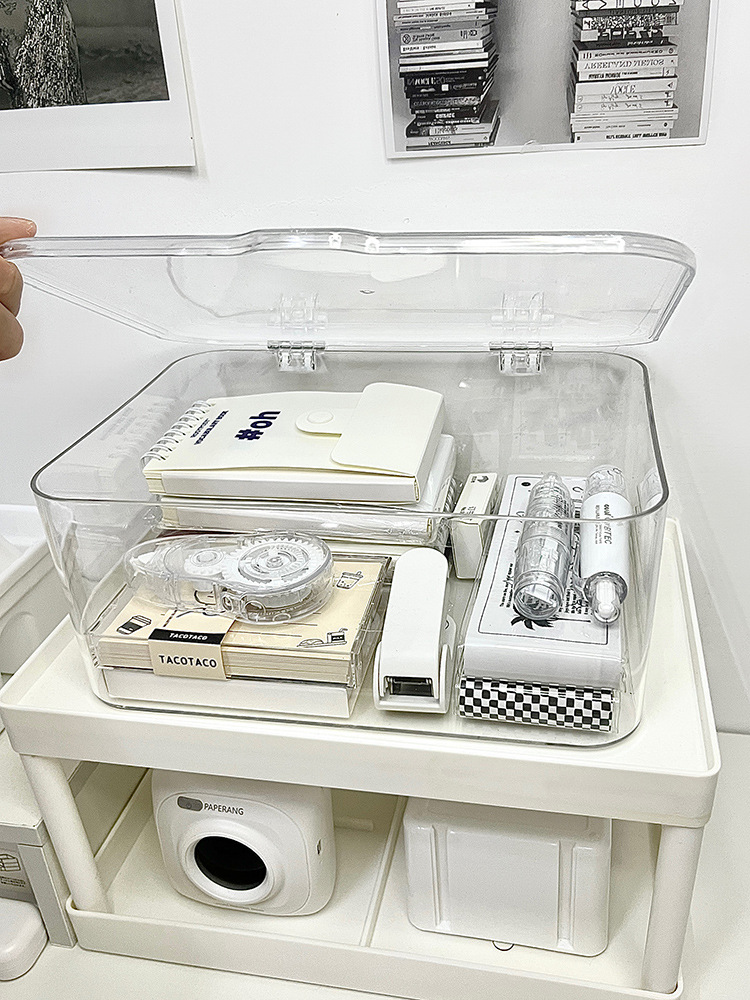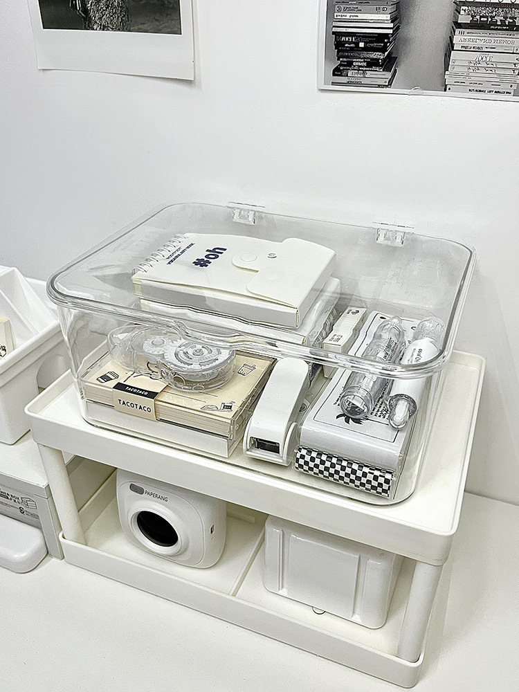 데스크탑 대용량 저장 상자 문구 사무실 학생 기숙사 적합 상자 투명 책상 보관 선반