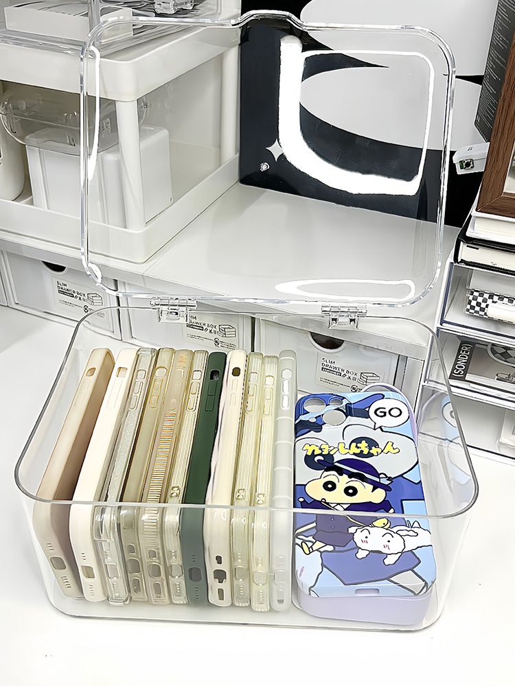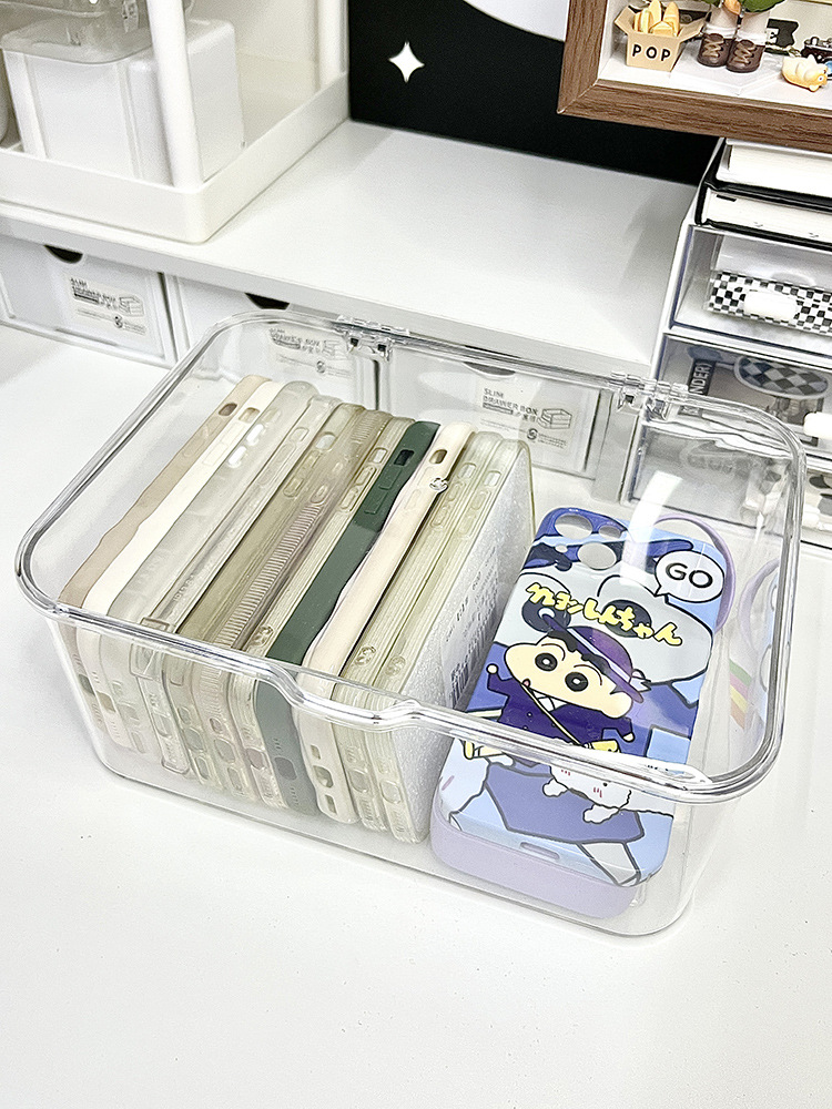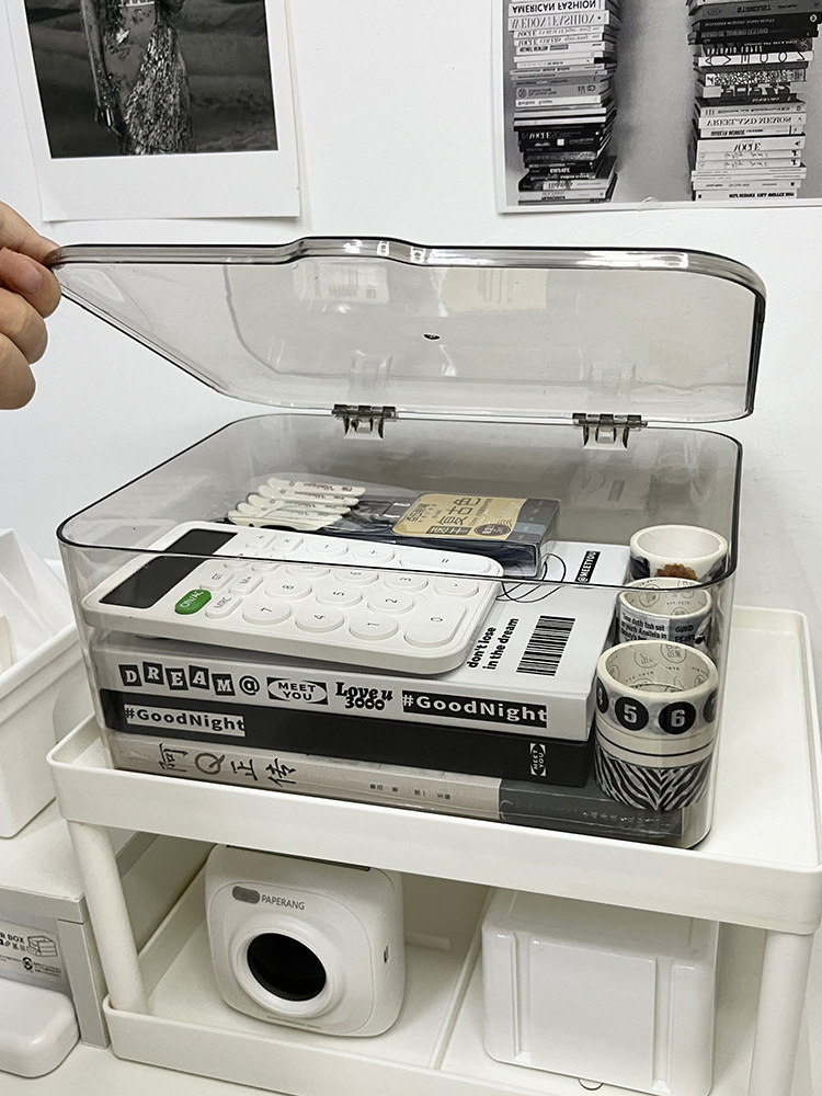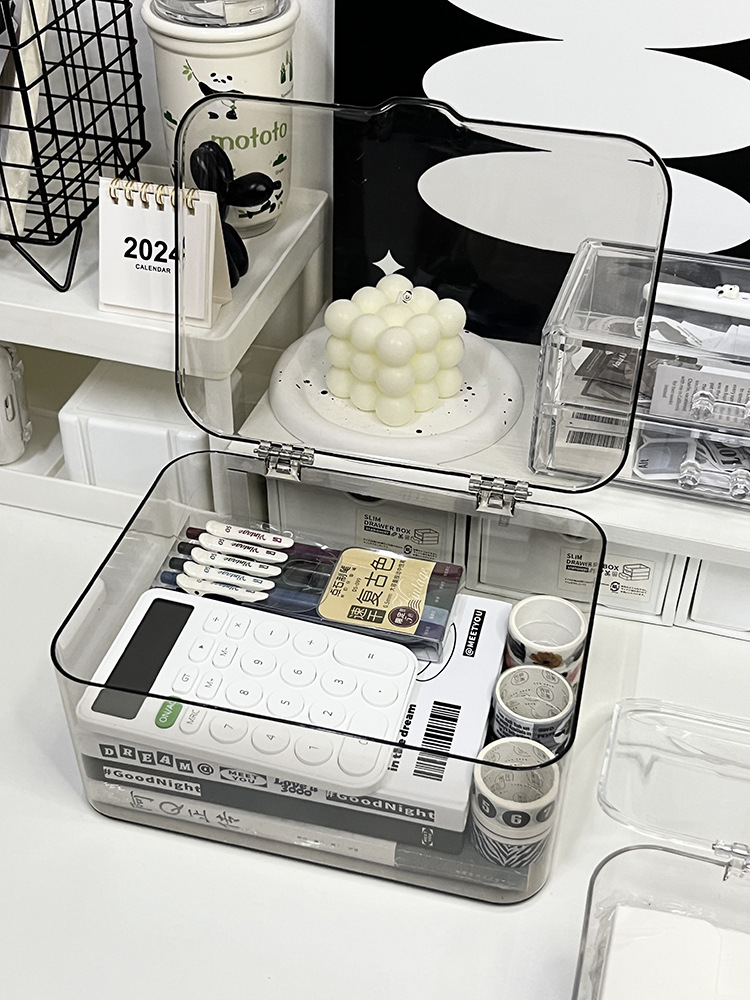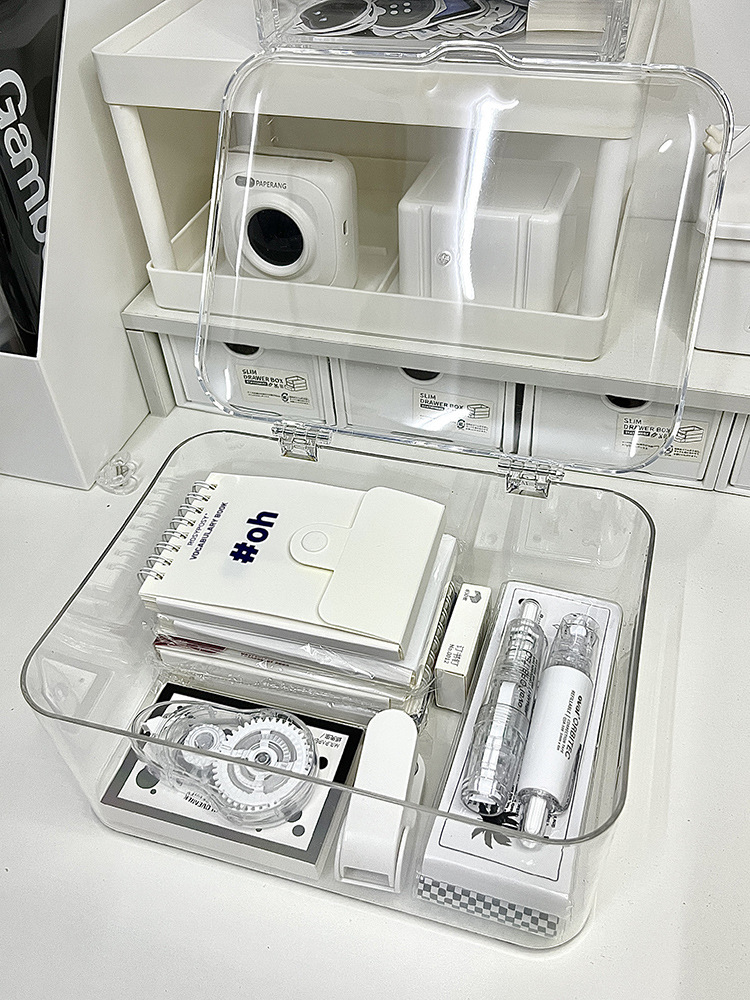 데스크탑 대용량 저장 상자 문구 사무실 학생 기숙사 적합 상자 투명 책상 보관 선반