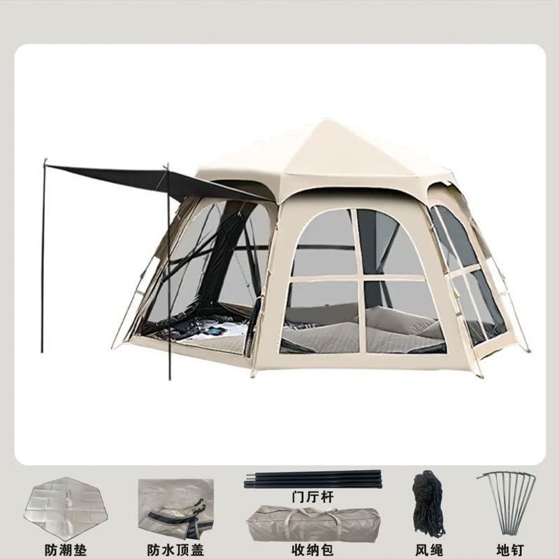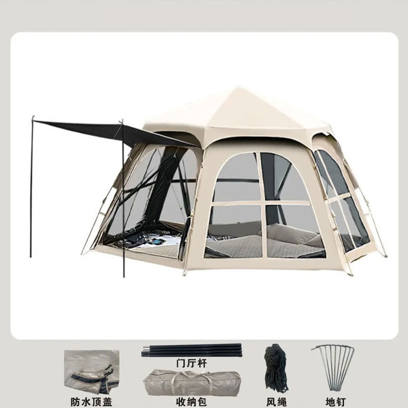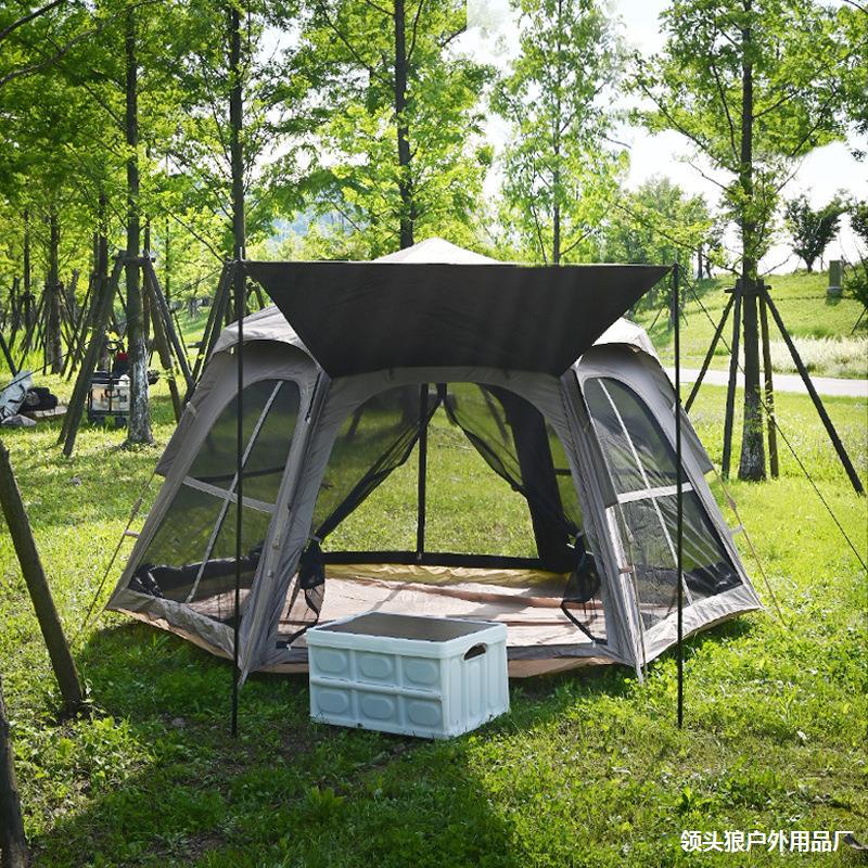 캠핑 텐트 블랙 접착제 캐노피 외부 필드 캐노피 캠핑 UV 방지 휴대용 2 인 1 집 육각형스토어 가기